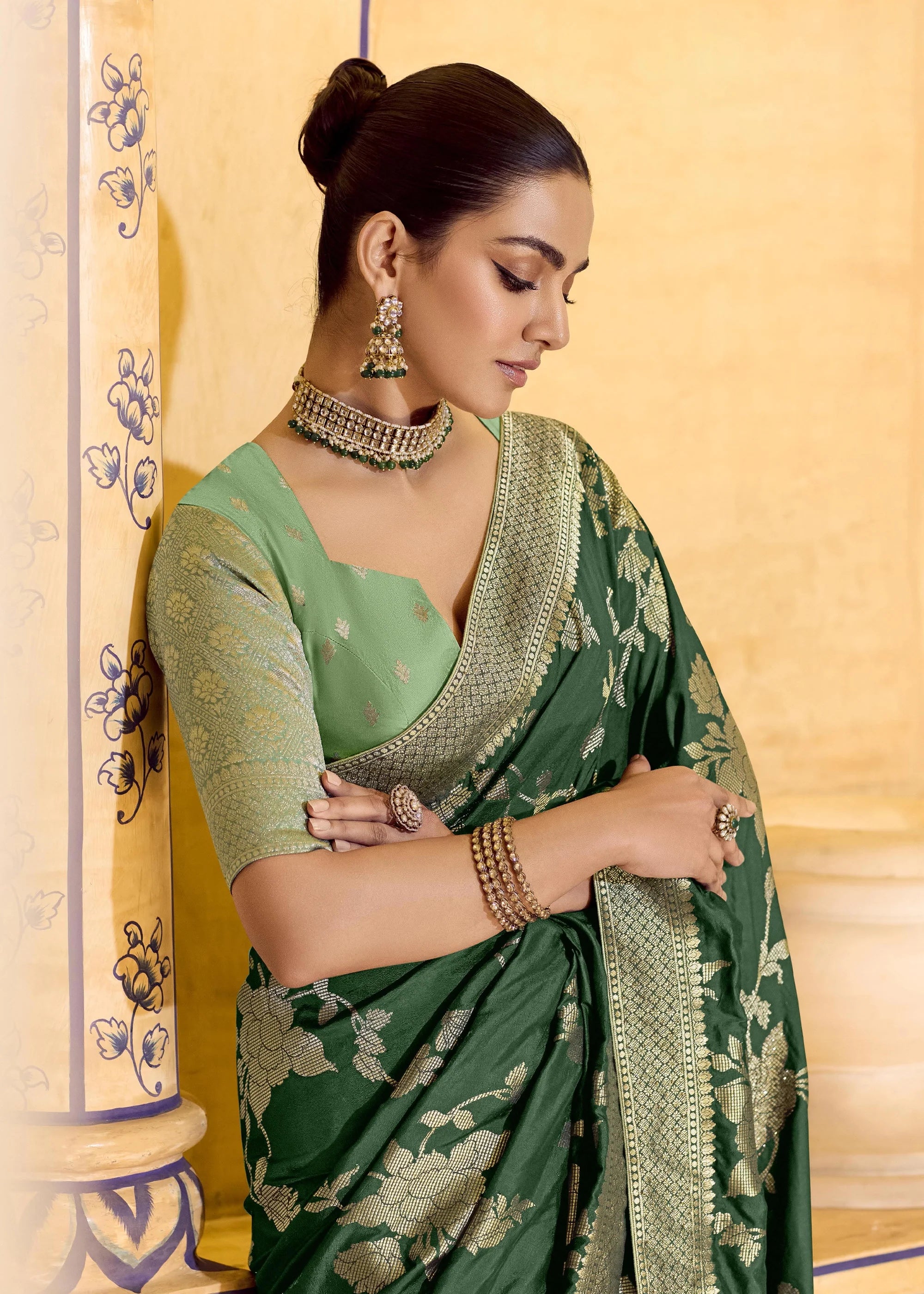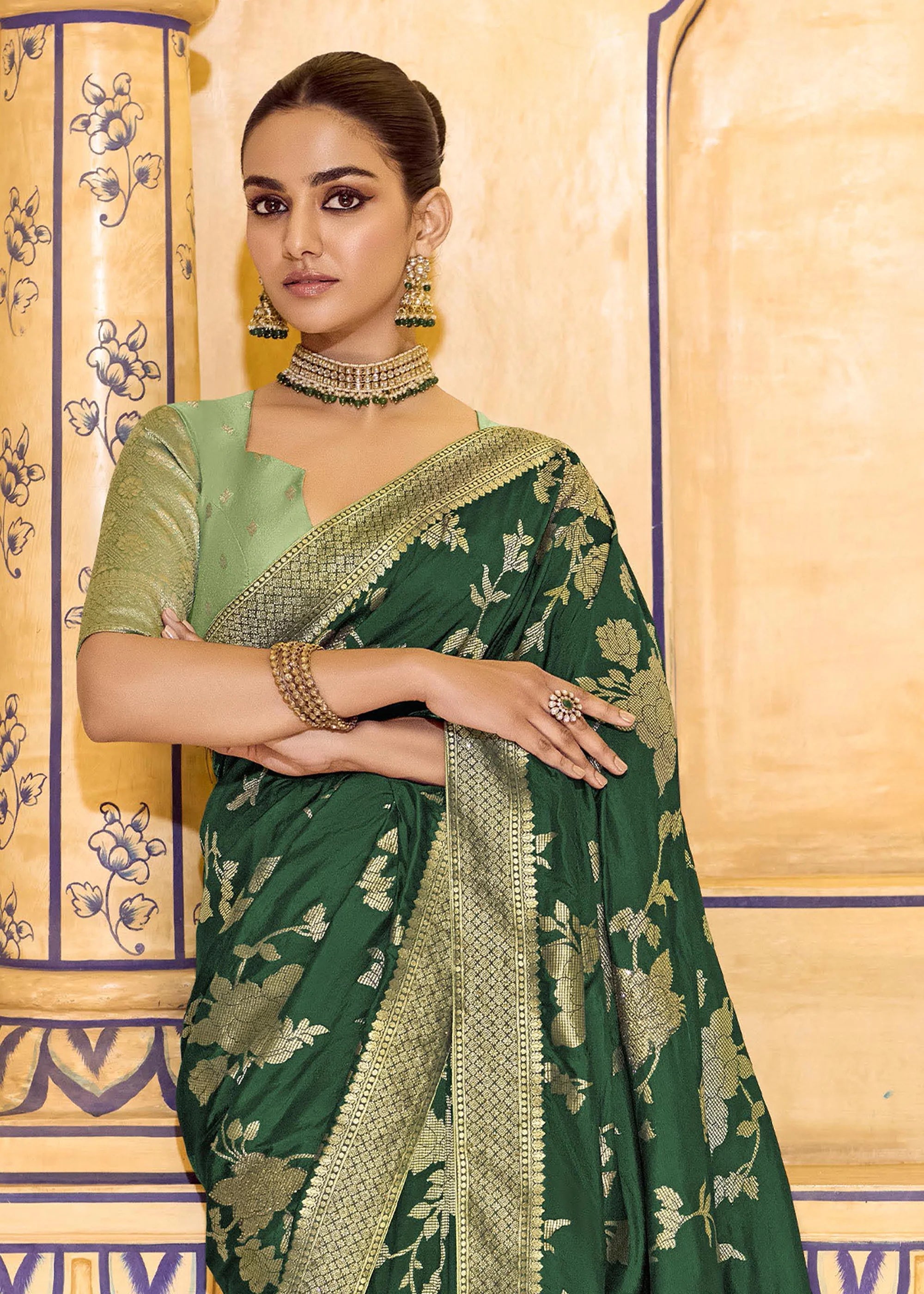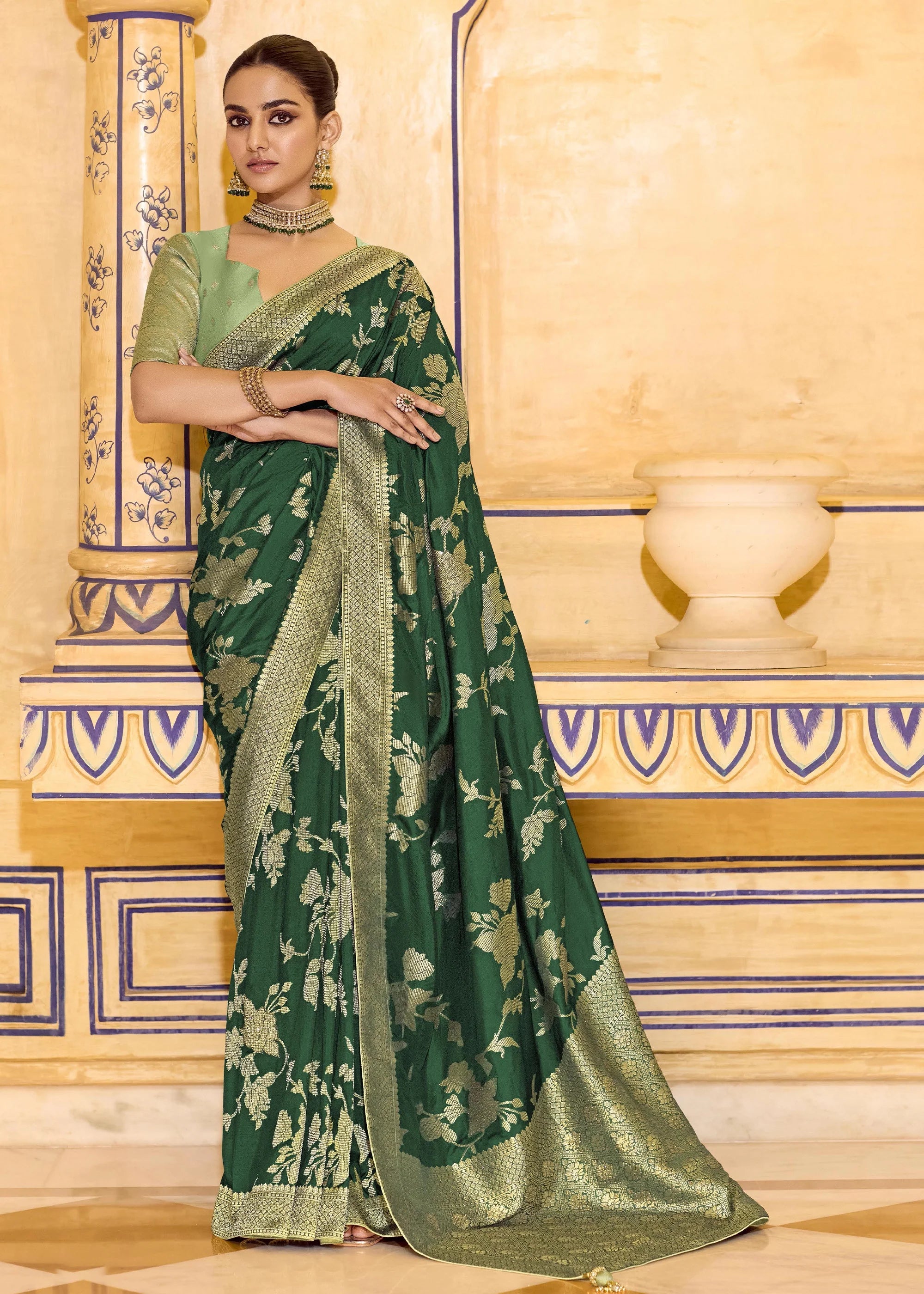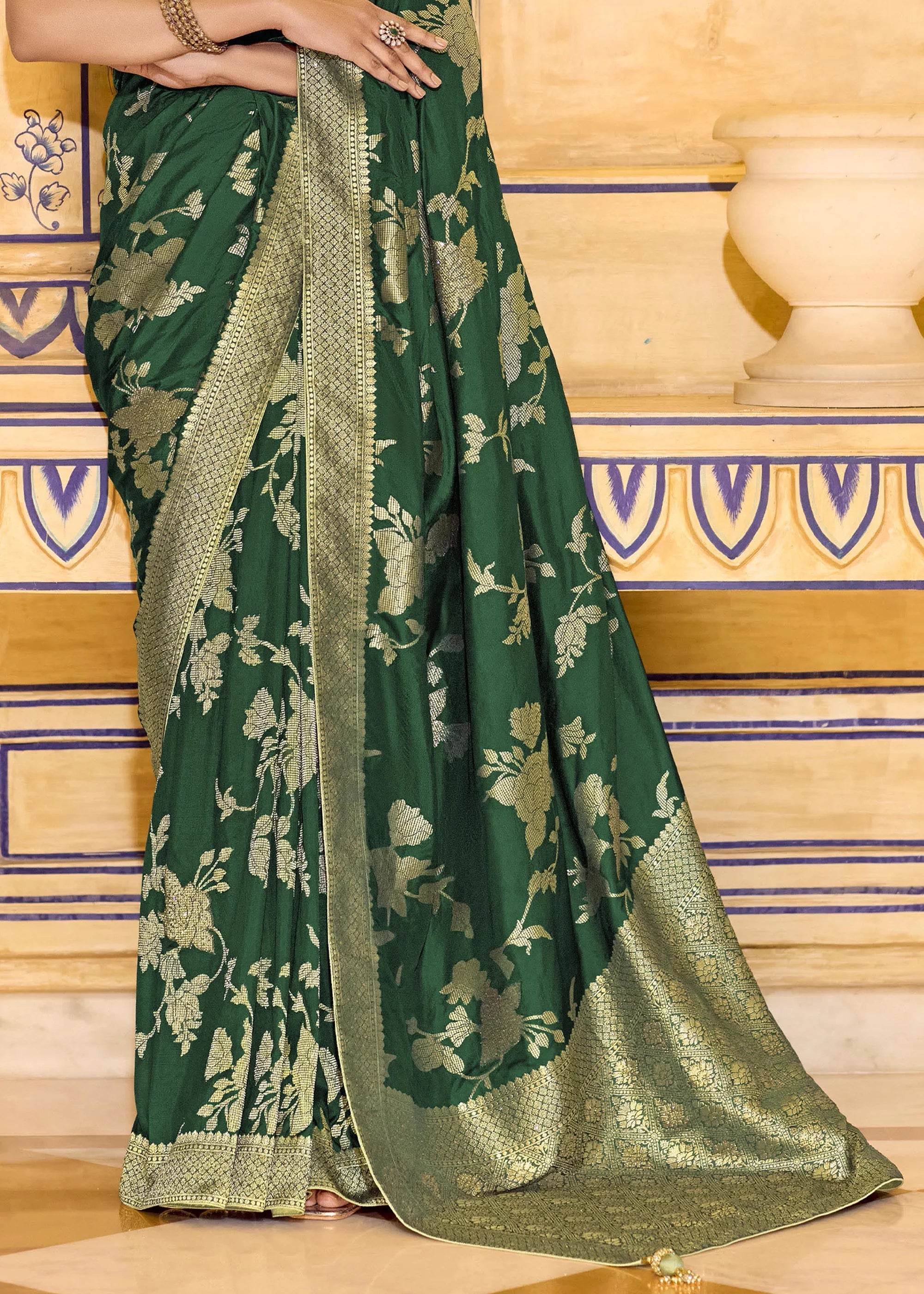 Forest Green Woven Banarasi Silk Saree