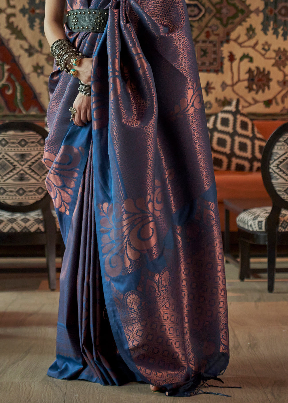 Royal Blue Woven Banarasi Brocade Silk Saree
