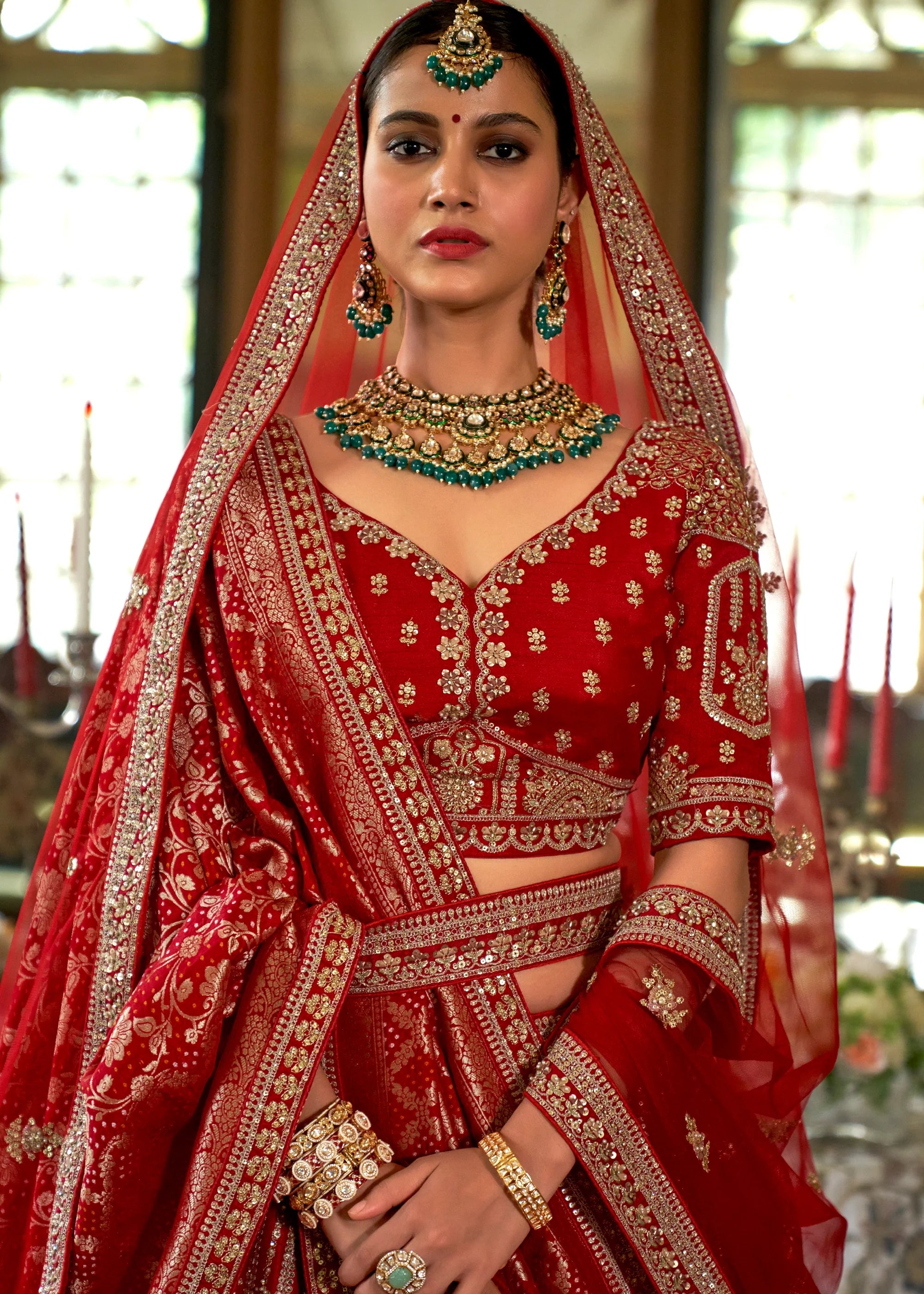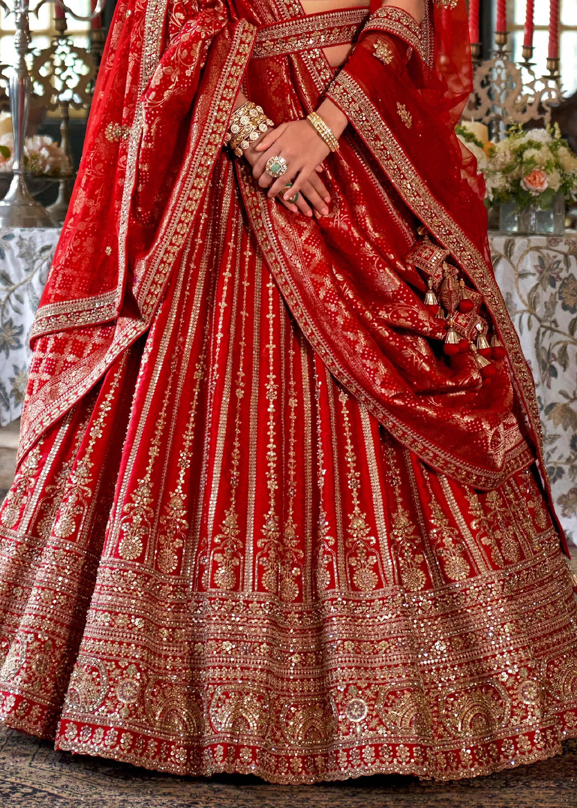 Bride Red Heavy Embroidered Designer Lehenga