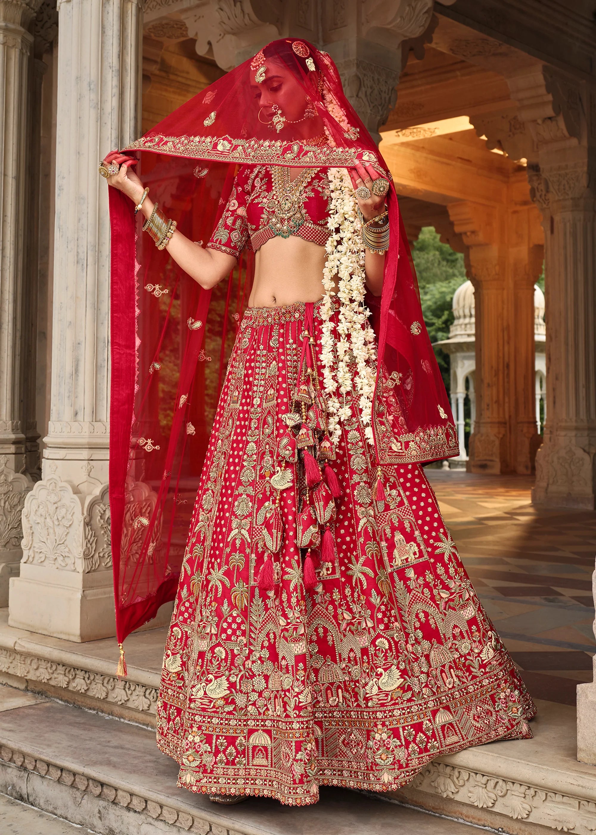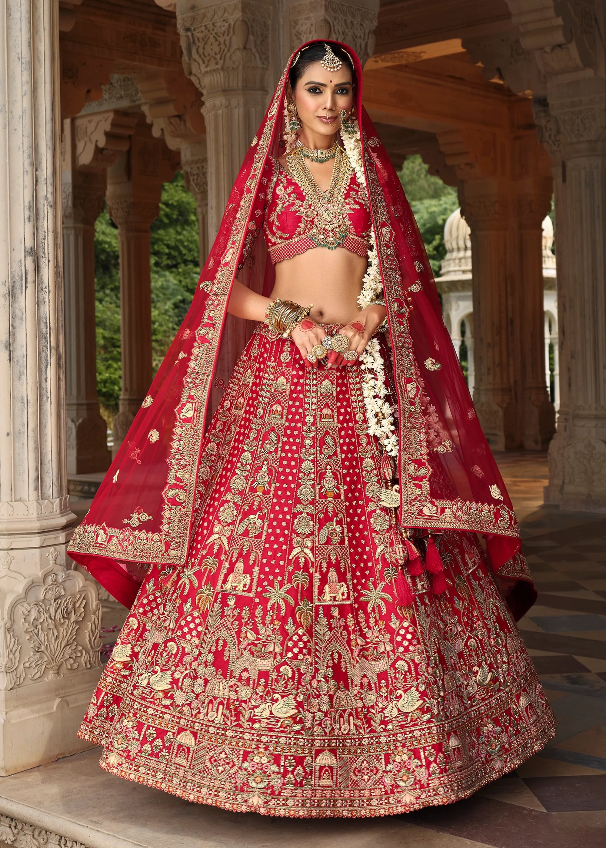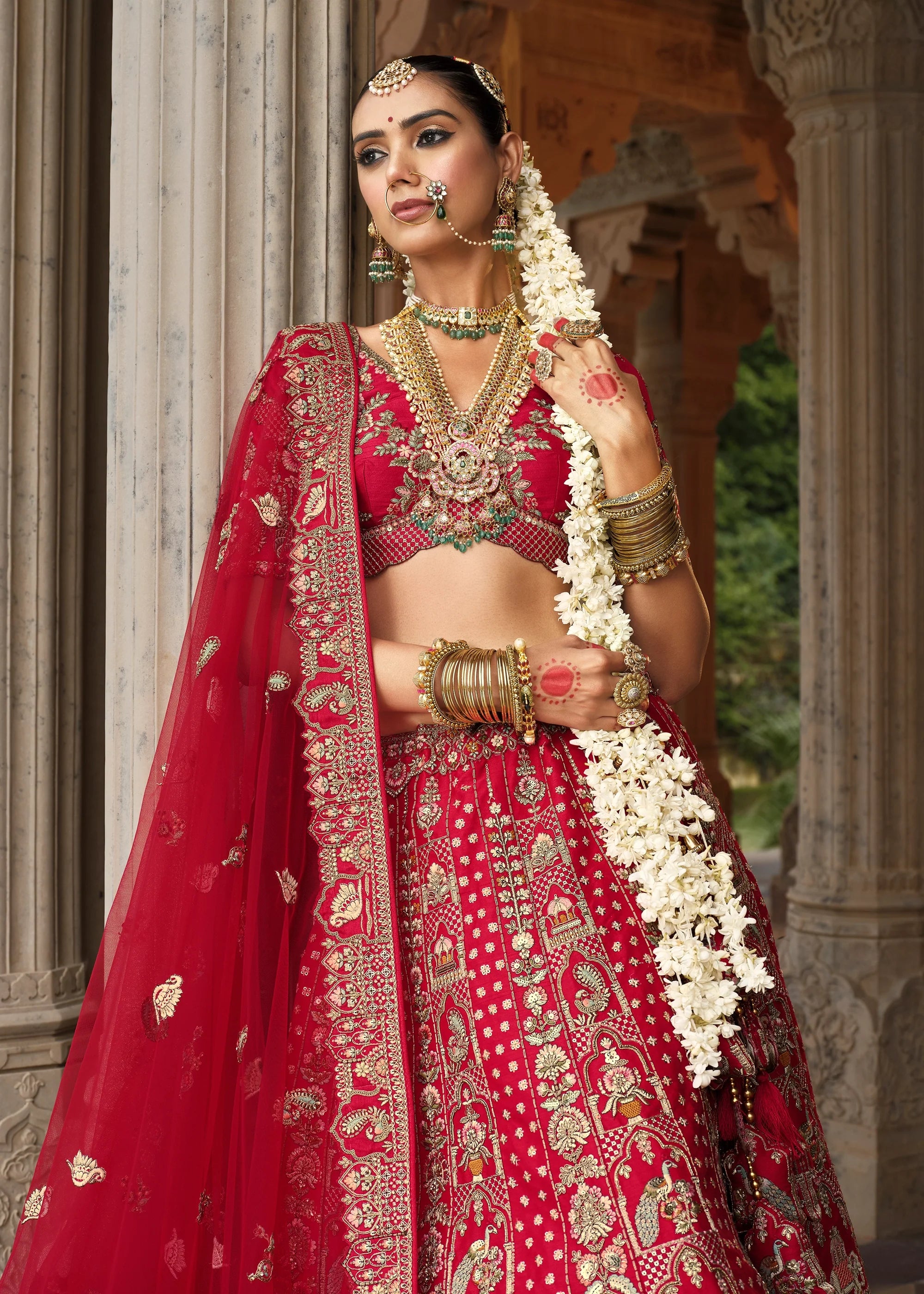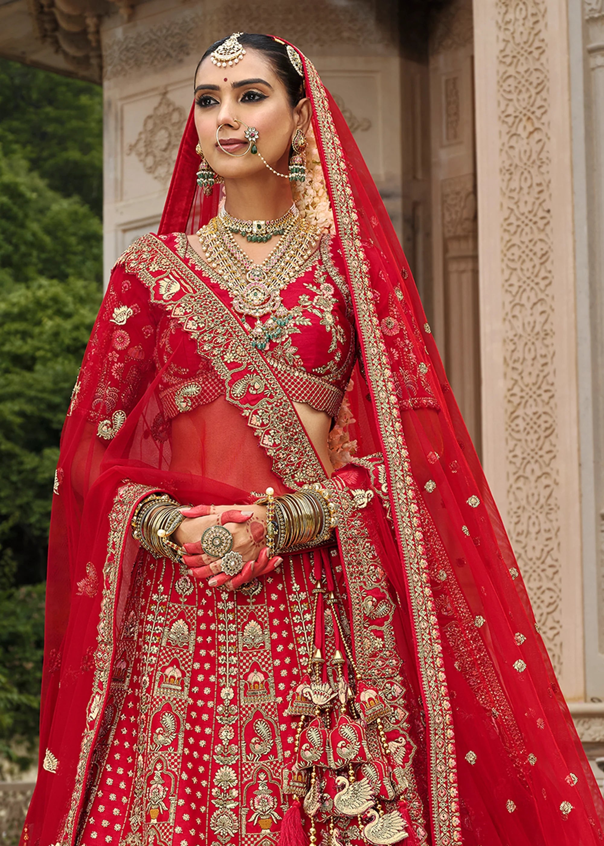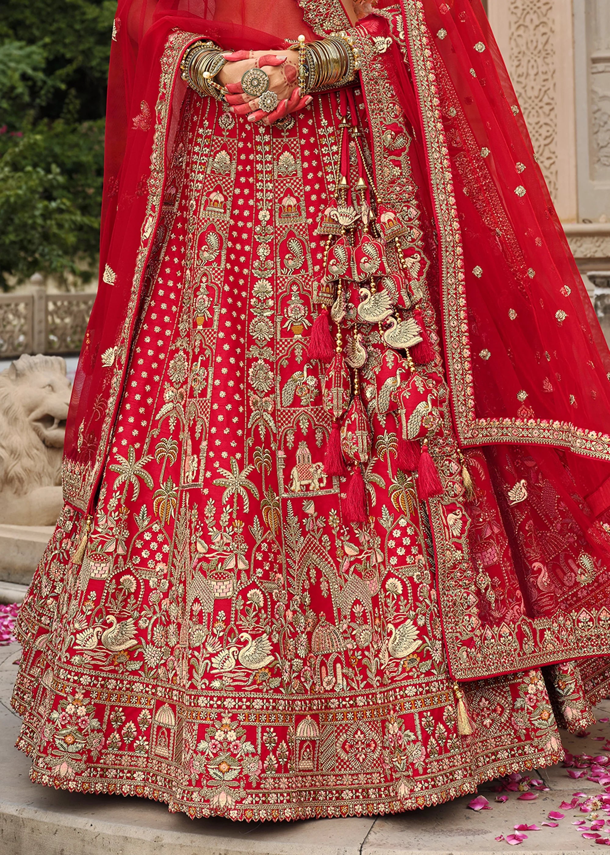Scarlet Red Heavy Embroidered Designer Lehenga
