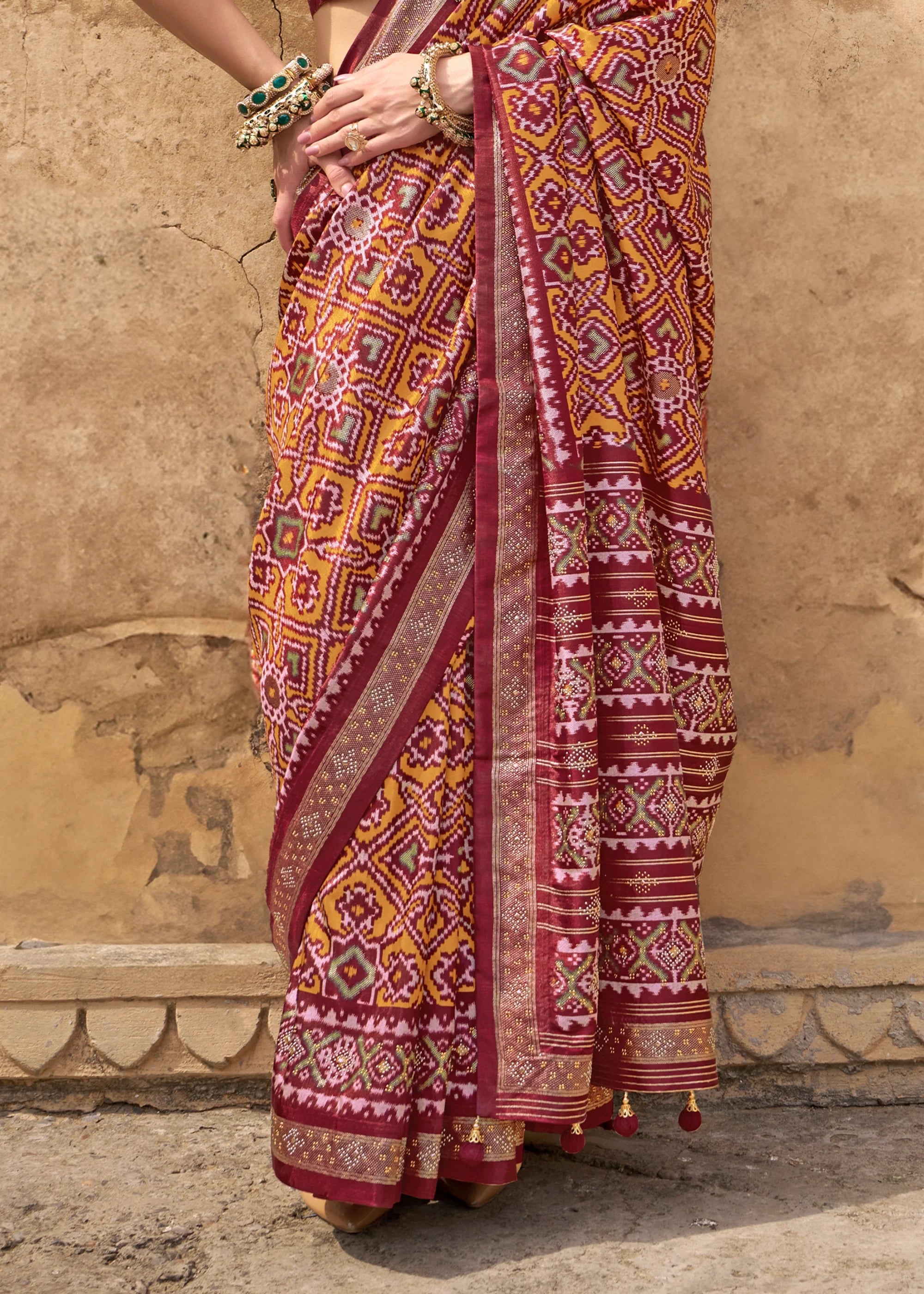 This luxurious Patola Saree is every women's dream. With carefully selected designs in vibrant colors, you can't go wrong with this choice.