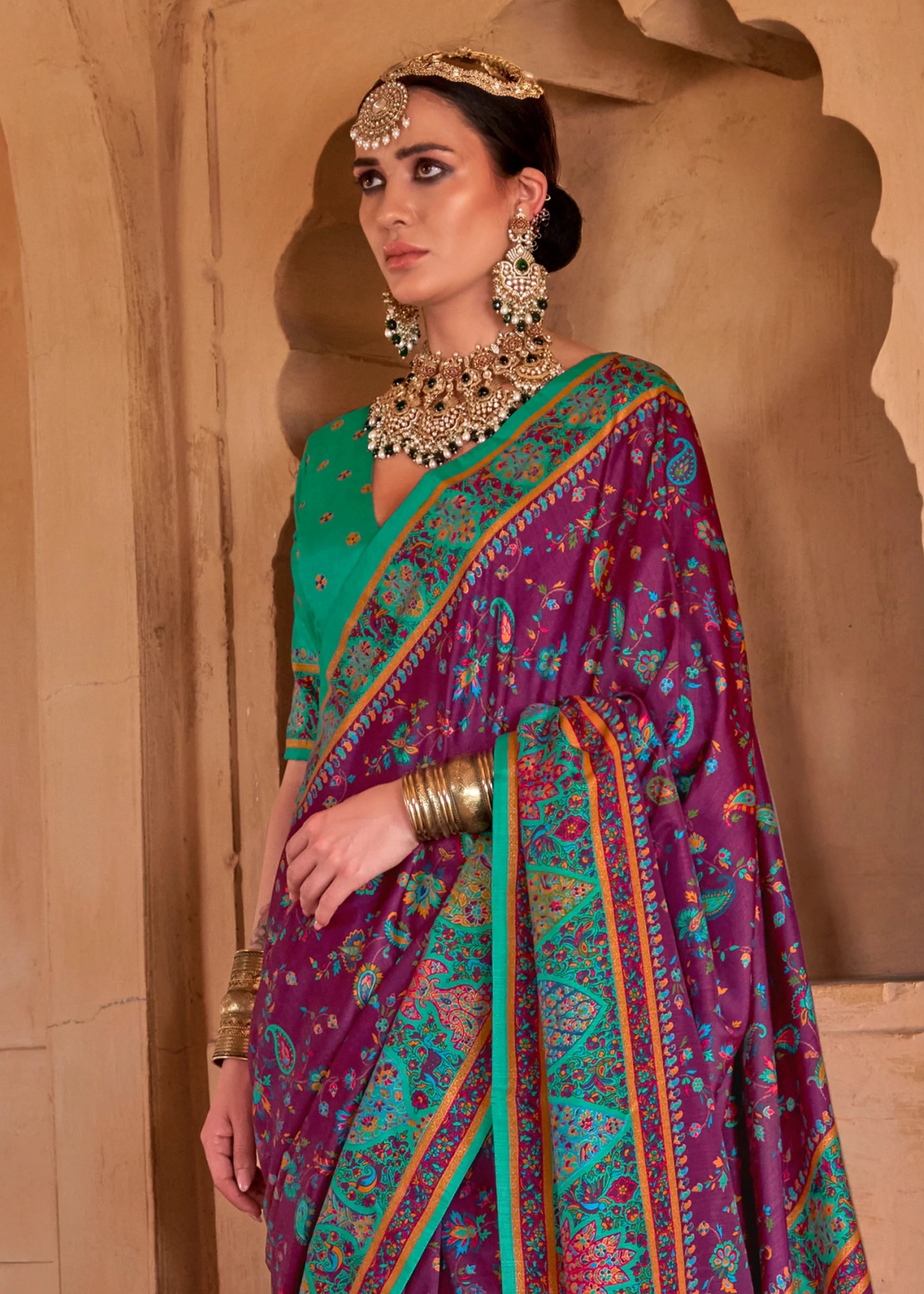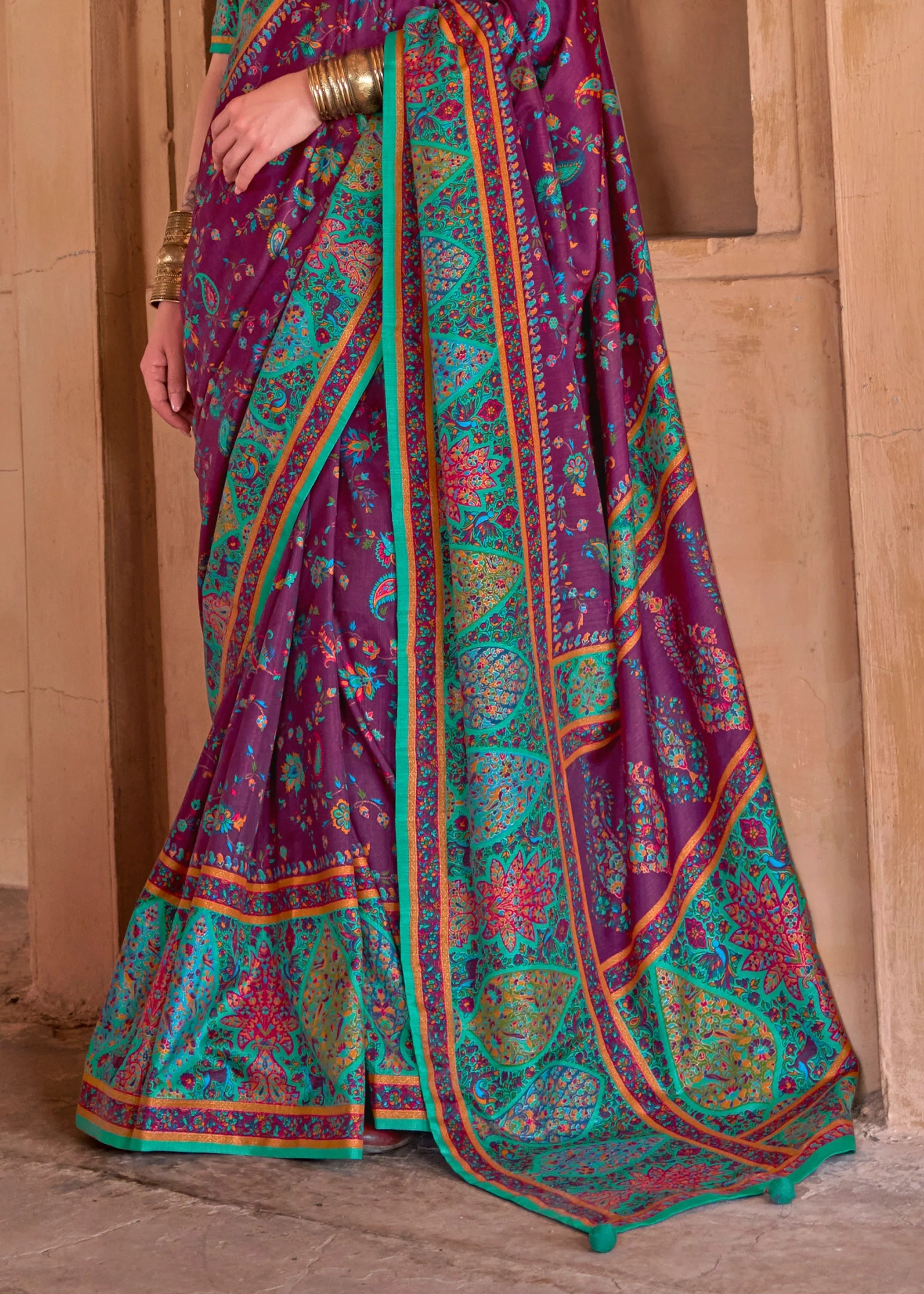 Sparkling Purple Printed Kashmiri Jamewar Saree