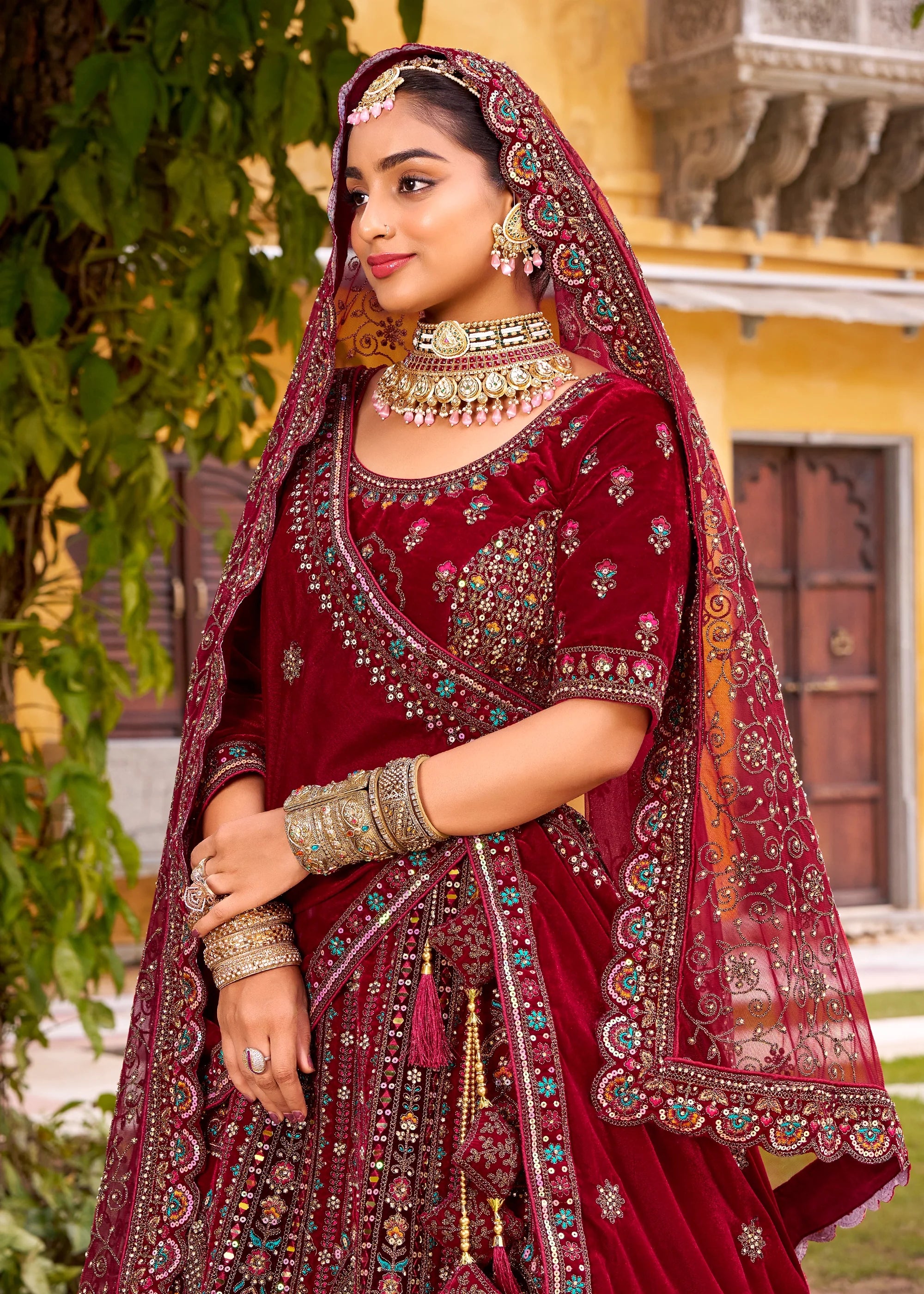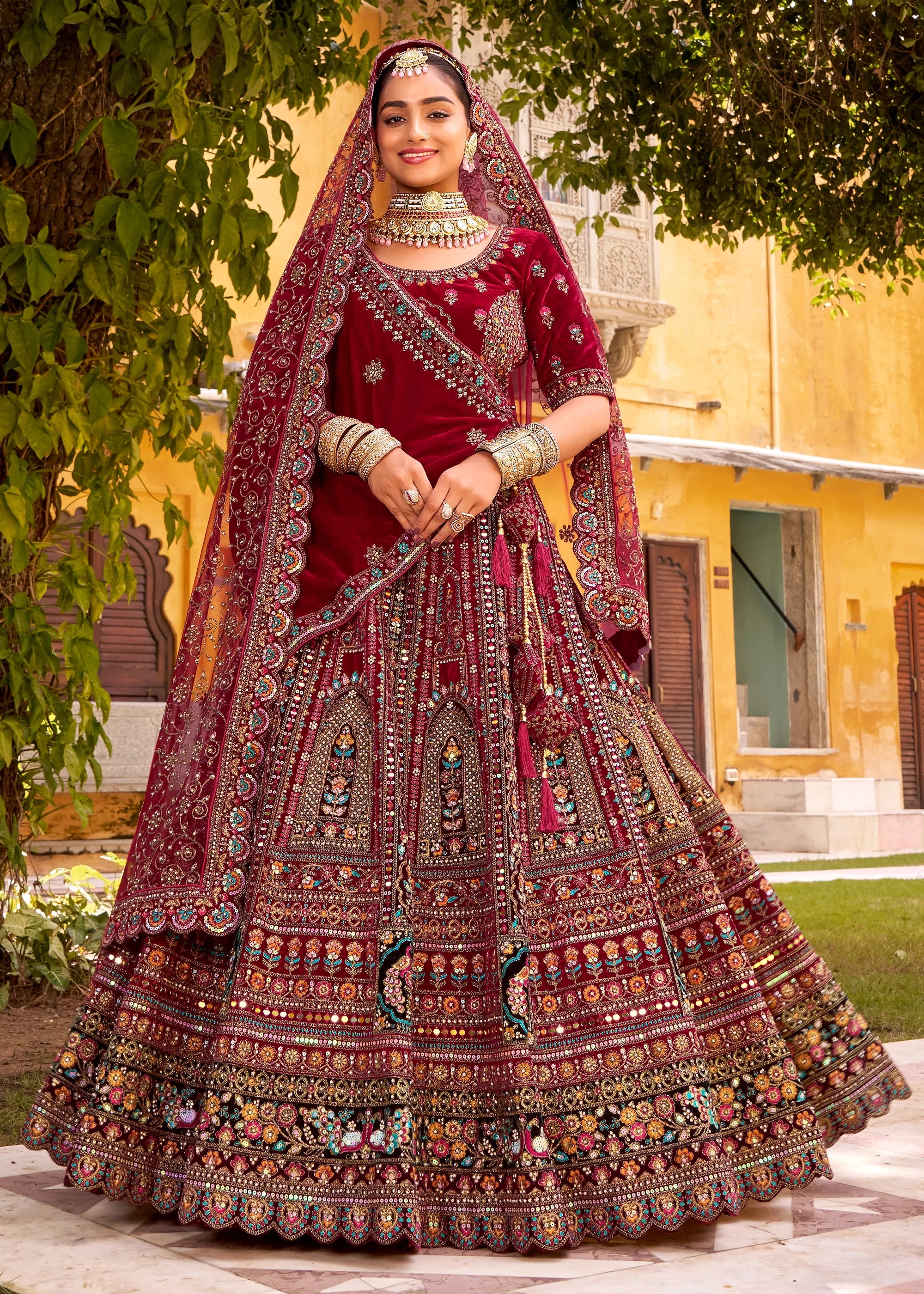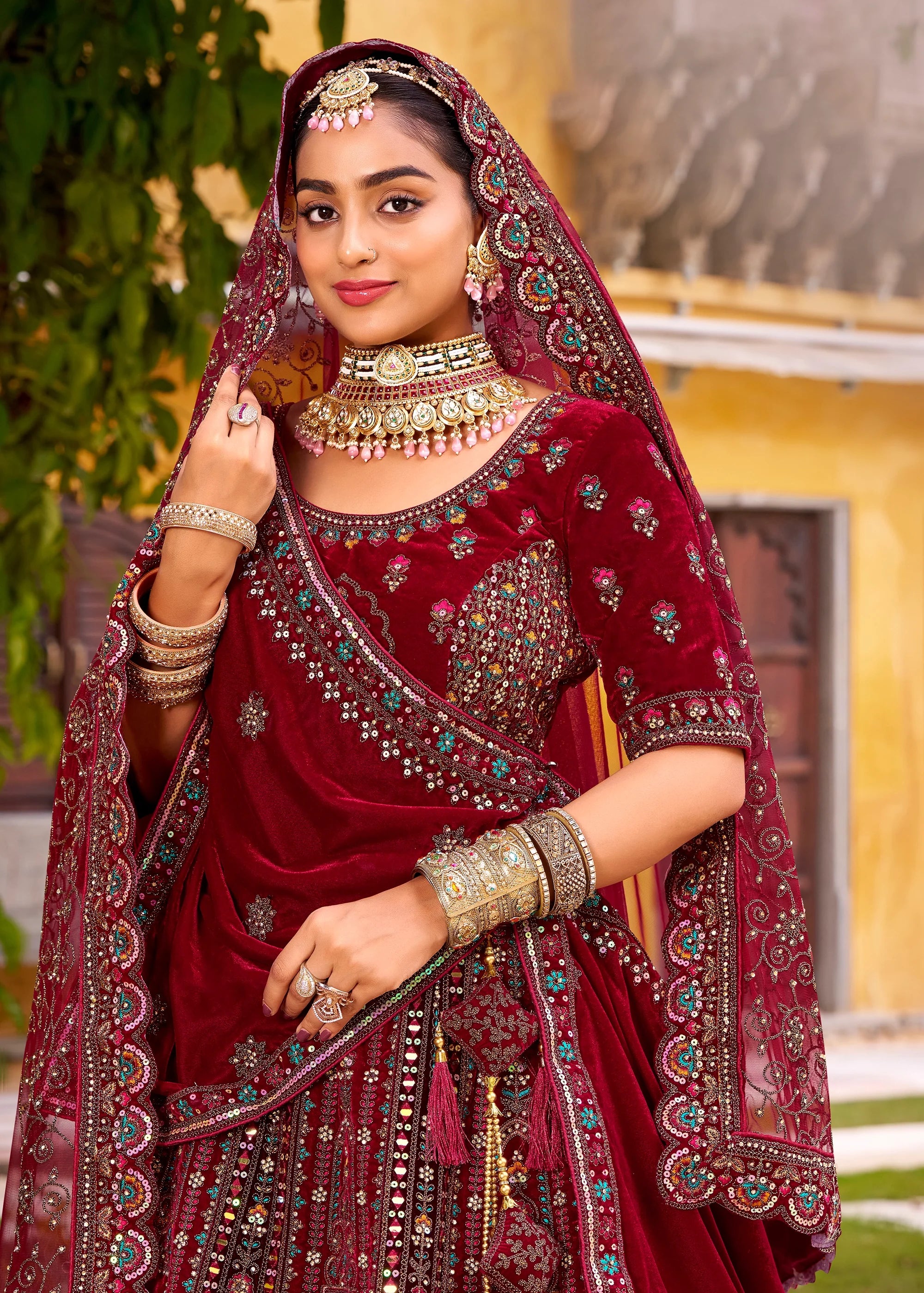 Dupatta : 1st Dupatta - Net, 2nd Dupatta : Velvet