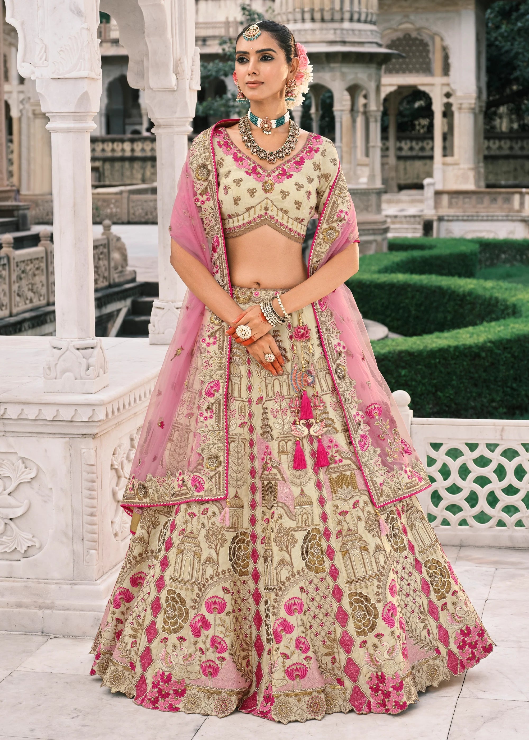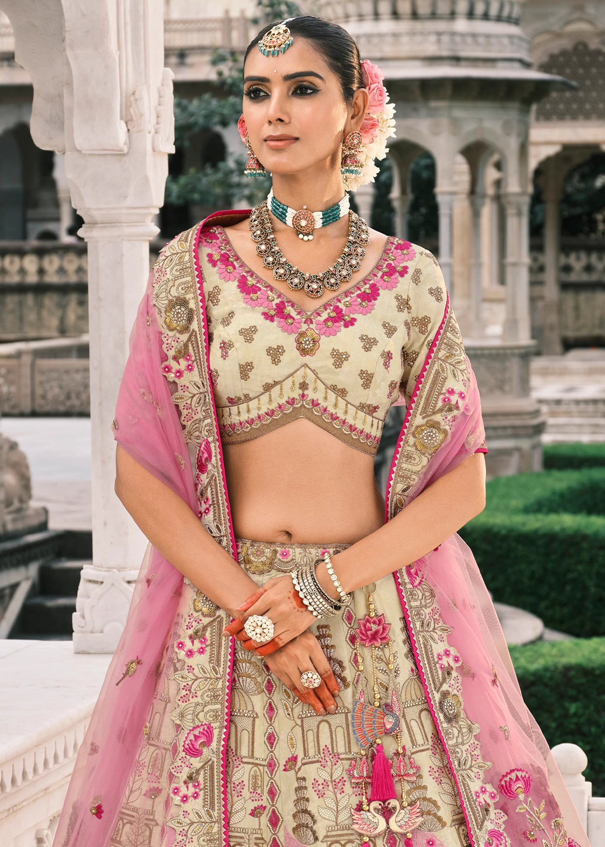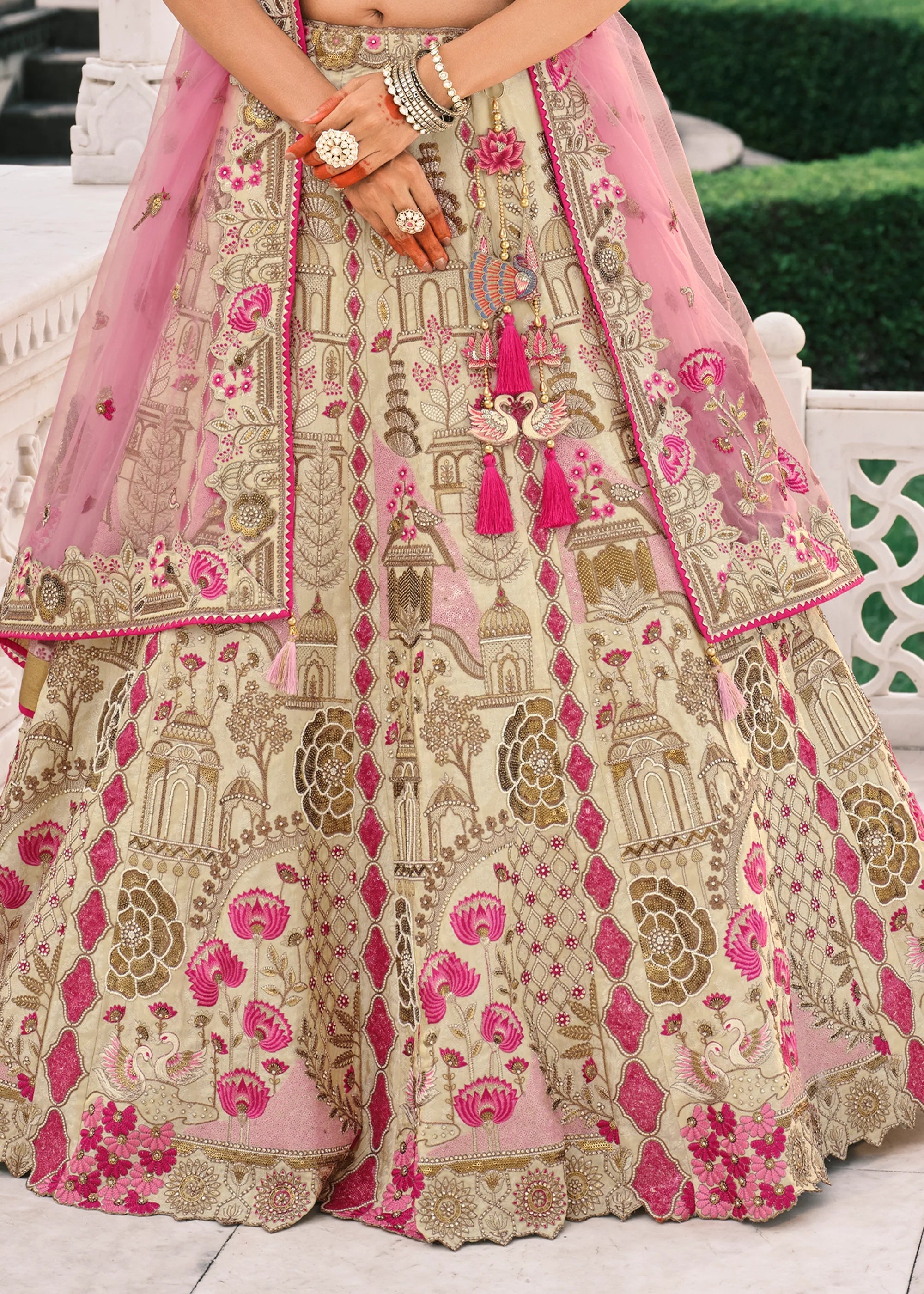 Off White & Pink Heavy Embroidered Designer Lehenga