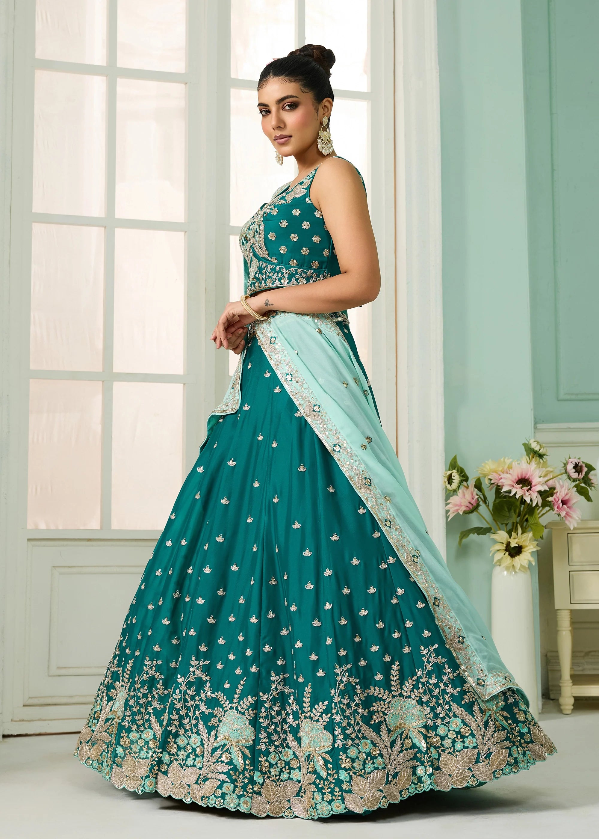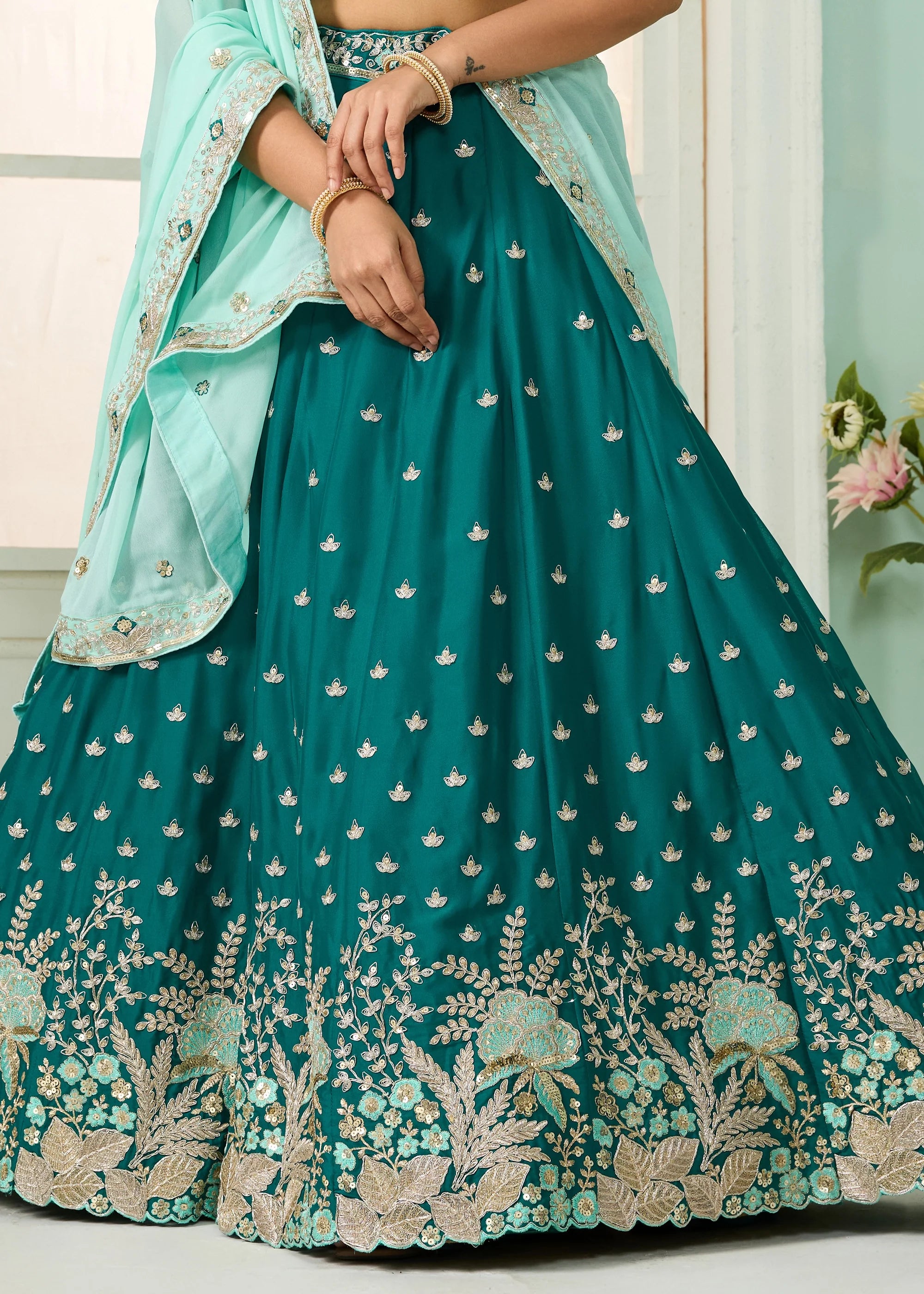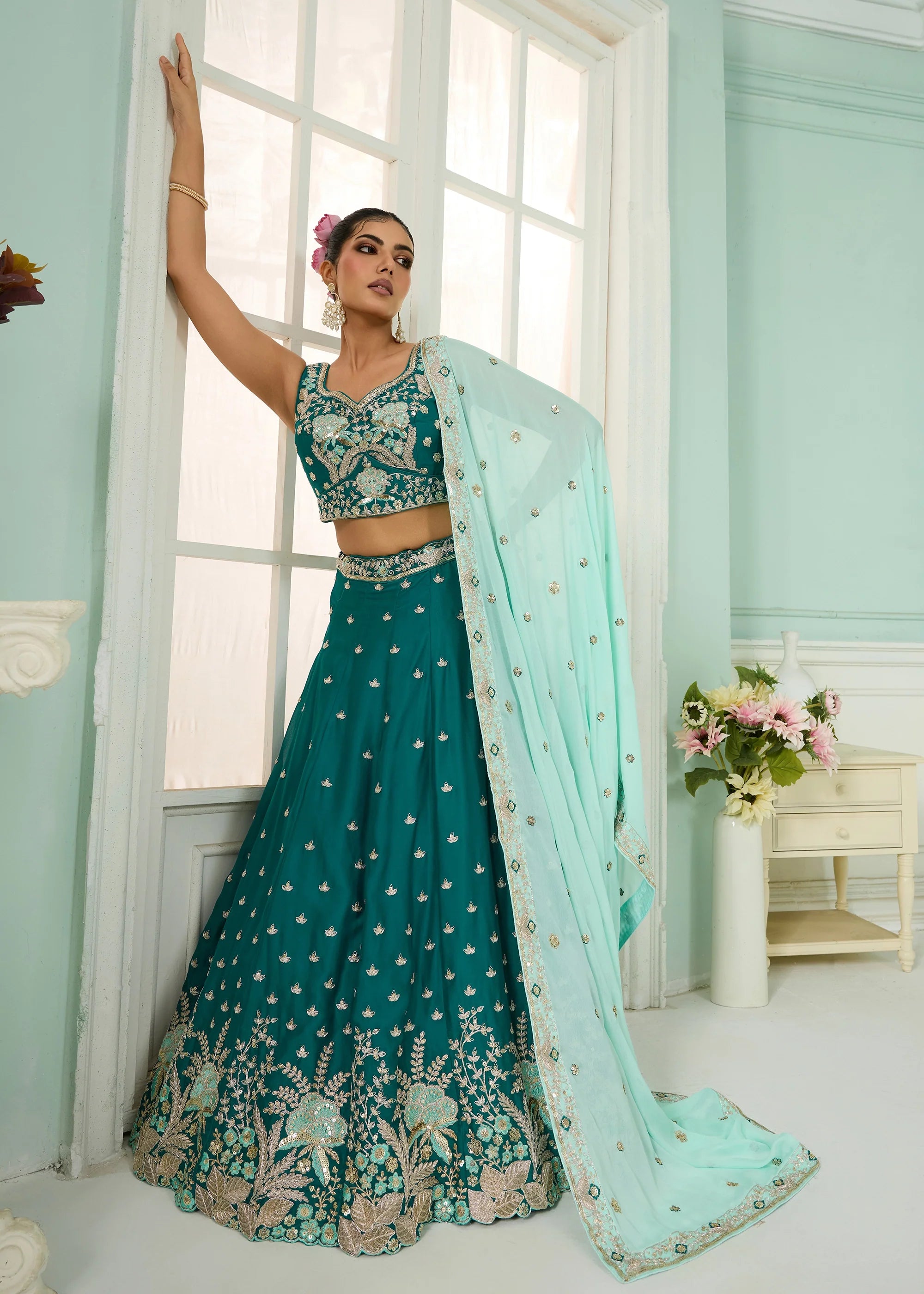Rama Green Georgette Embroidered Sequins Lehenga Set