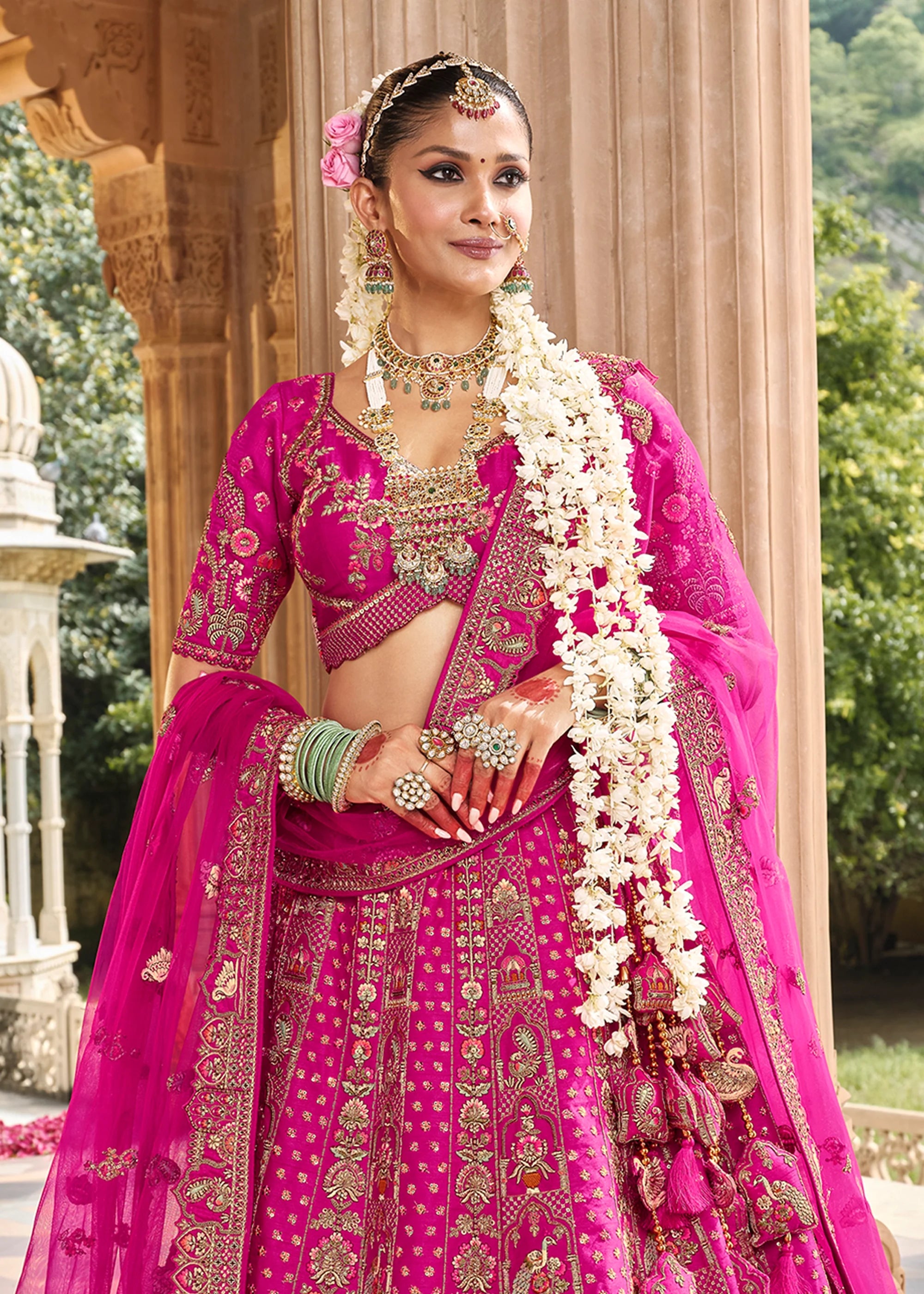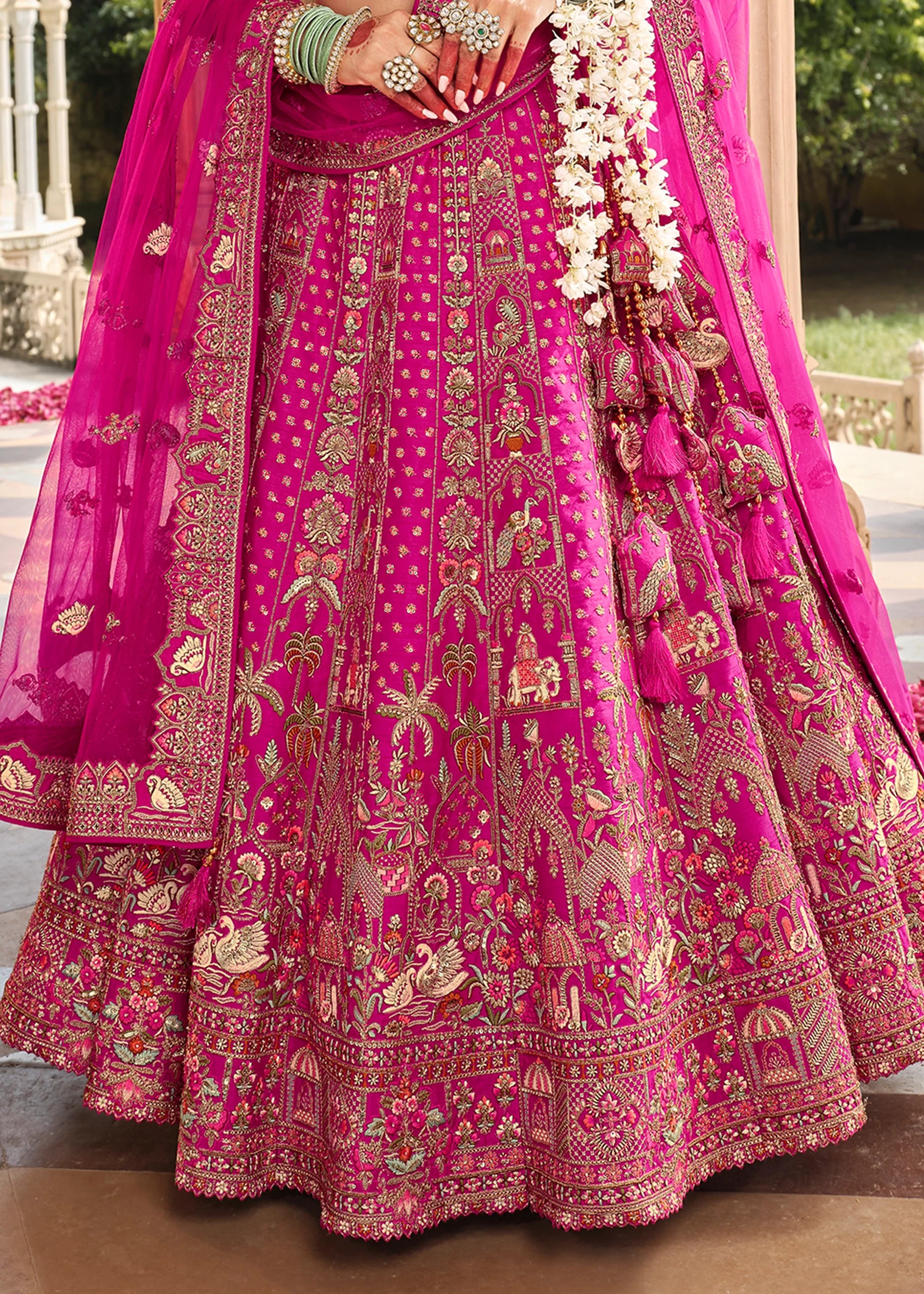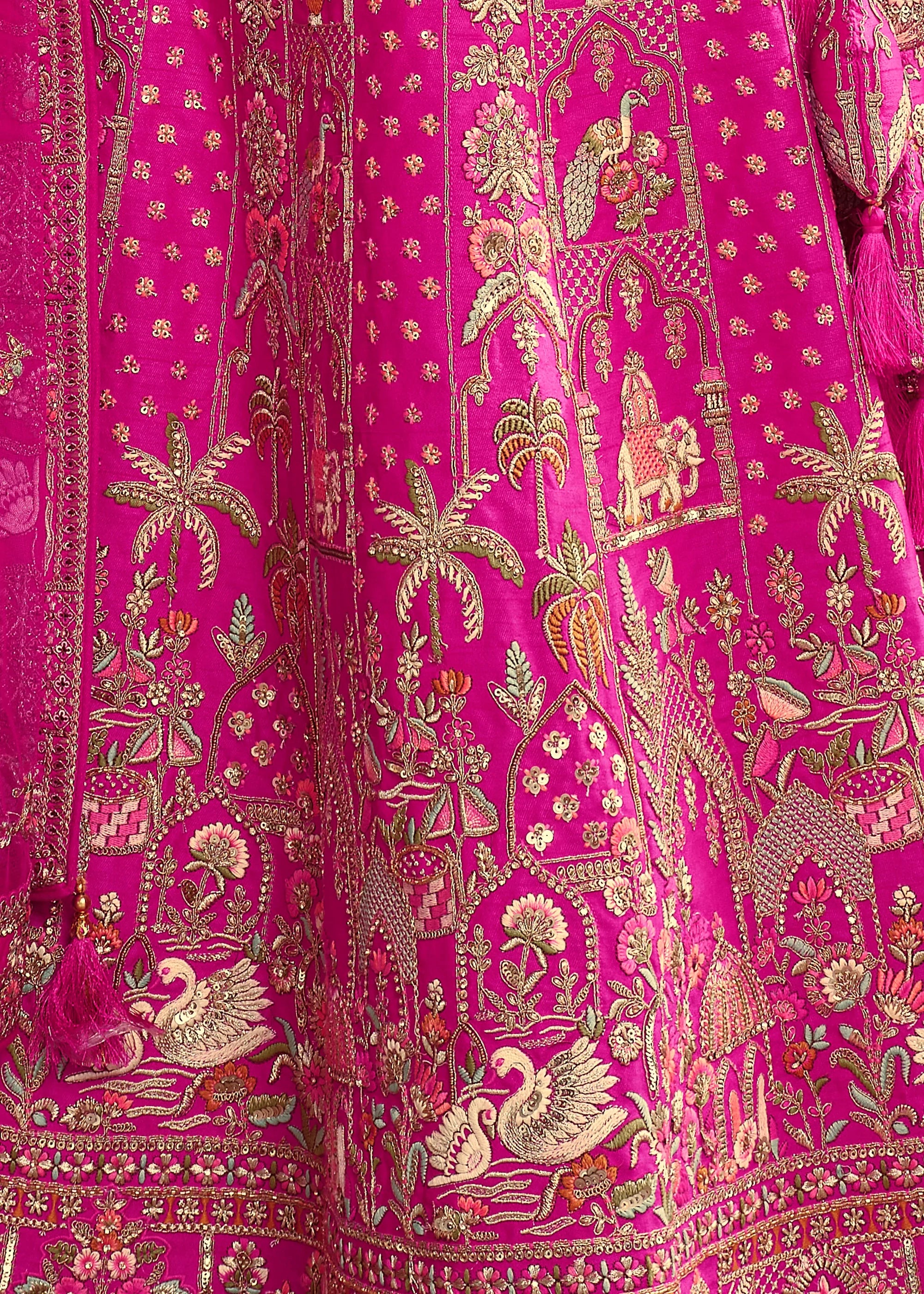 Vibrant Pink Heavy Embroidered Designer Lehenga