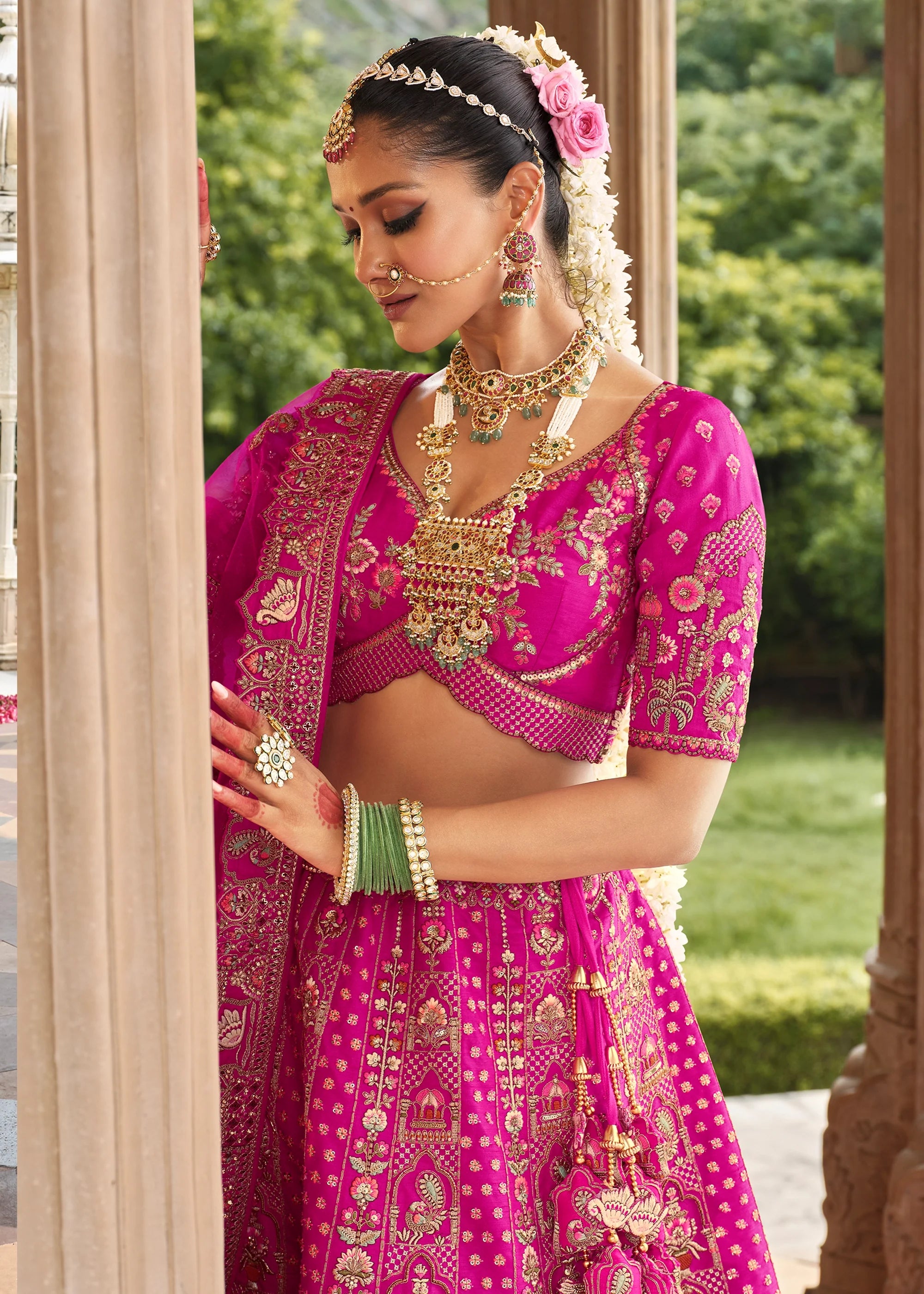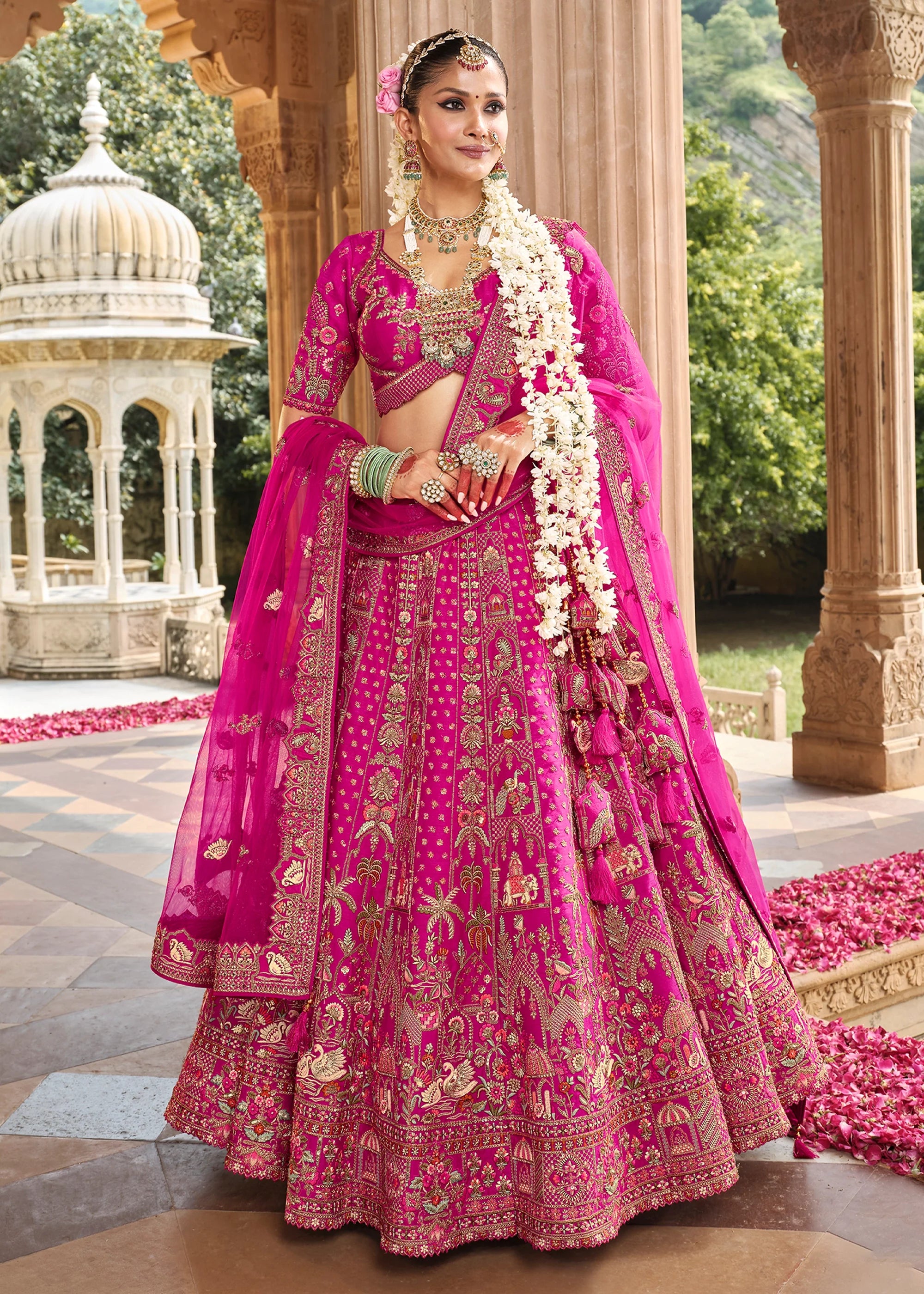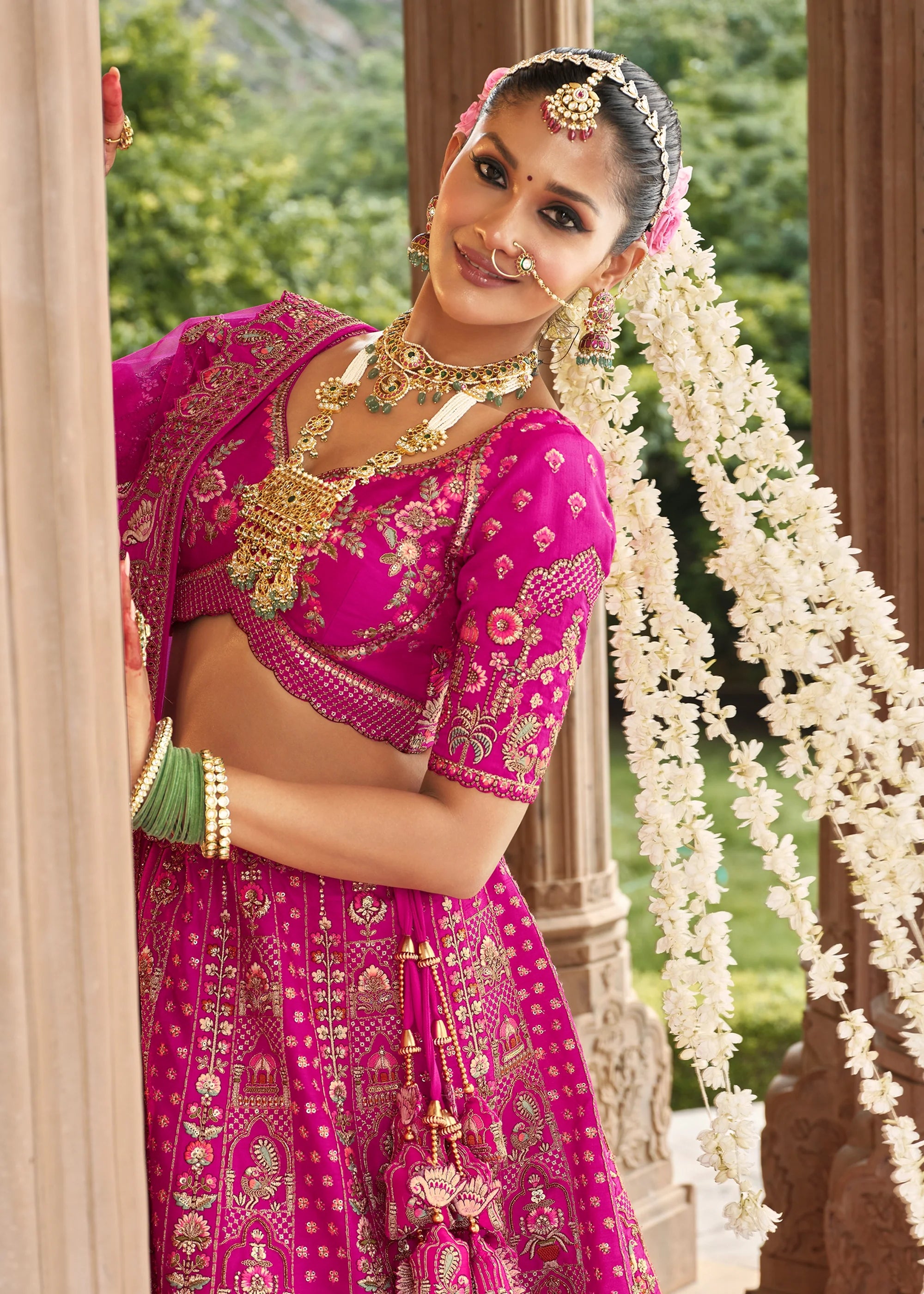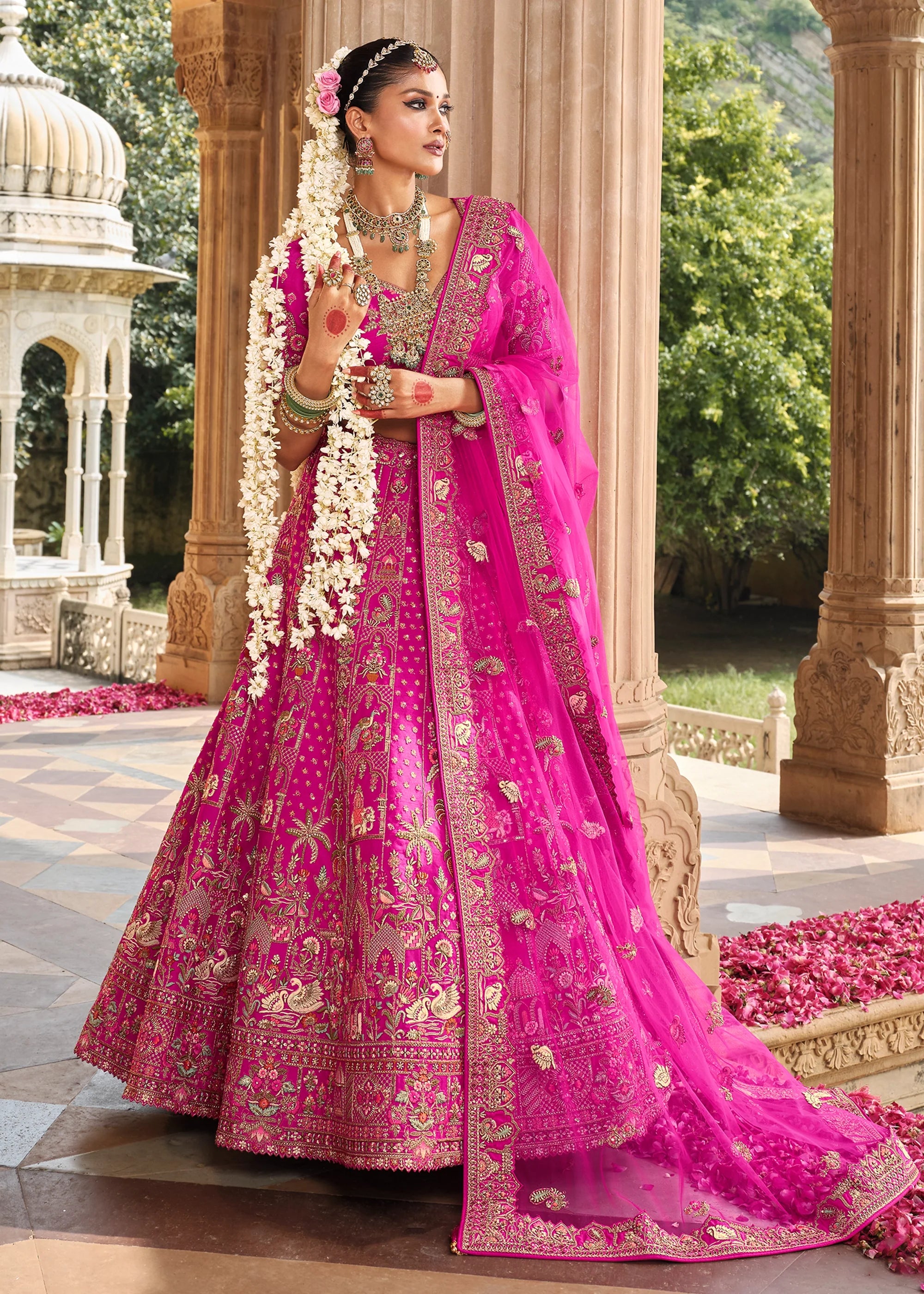 Vibrant Pink Heavy Embroidered Designer Lehenga