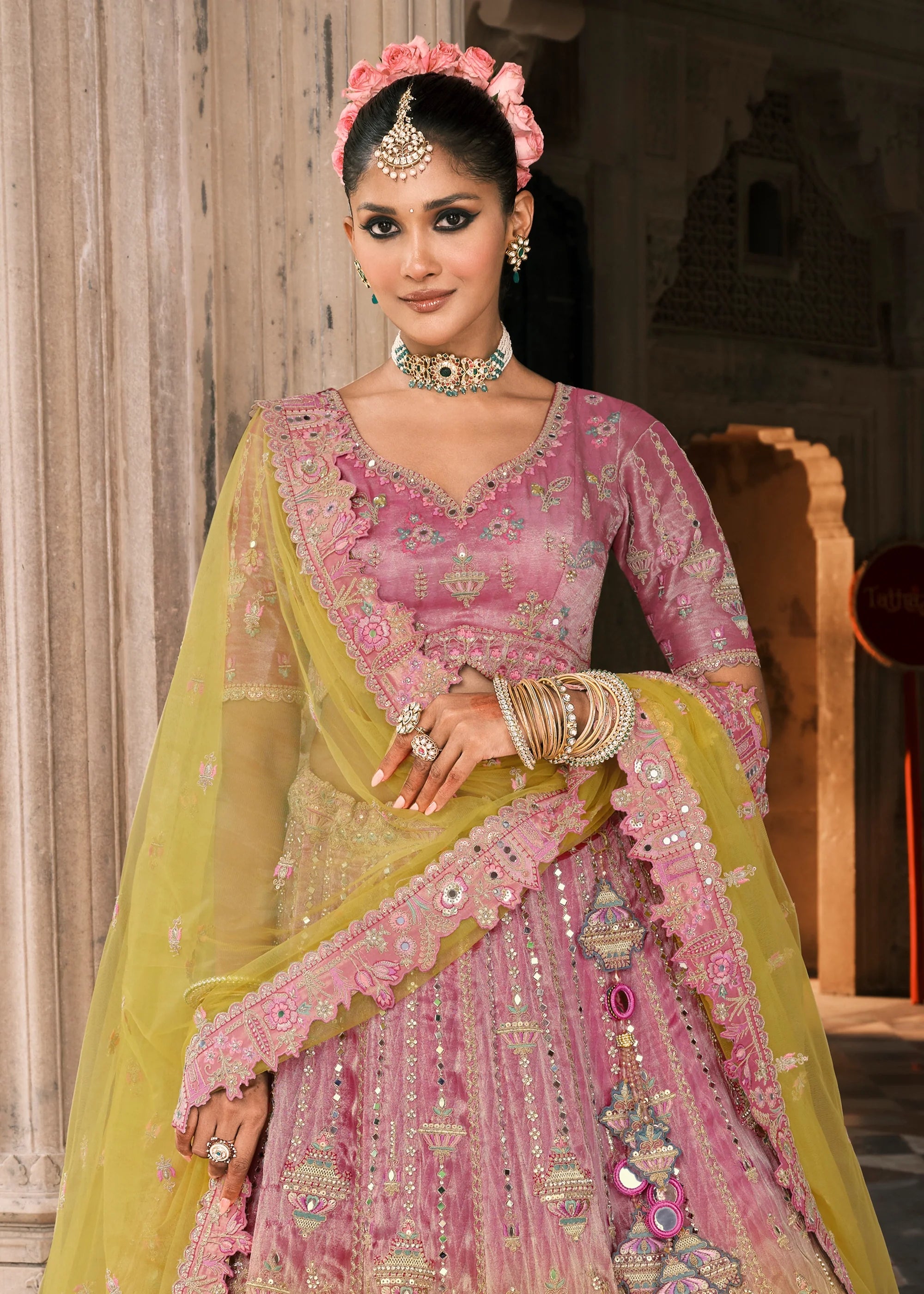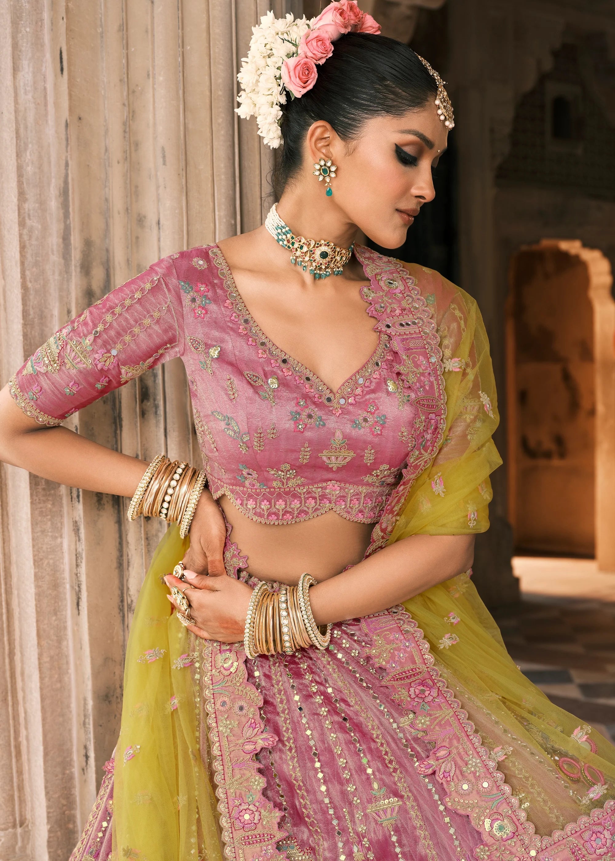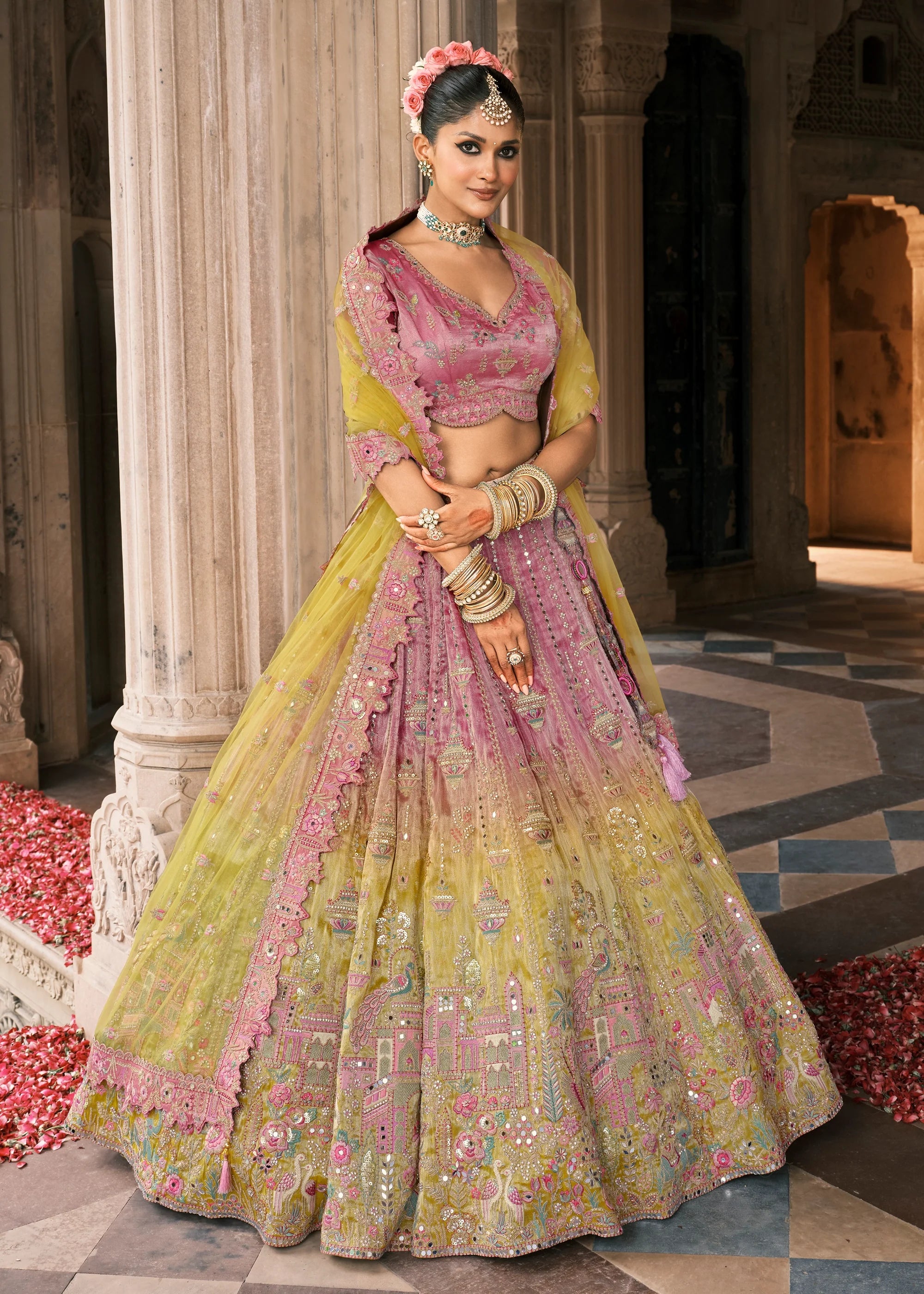 Yellow & Pink Heavy Embroidered Designer Lehenga