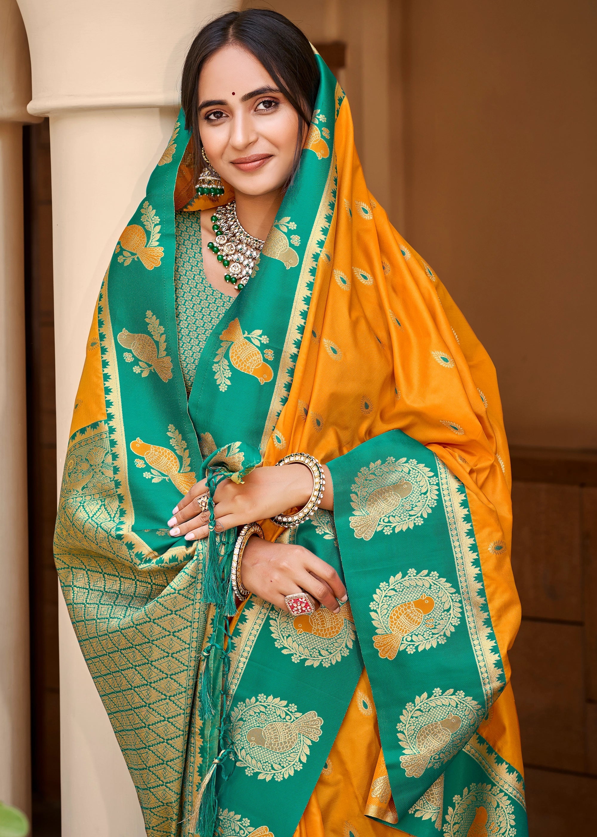 Drape yourself in this stunning saree, featuring vibrant borders and intricate weaving. Perfect for traditional events or weddings, this attire showcases...