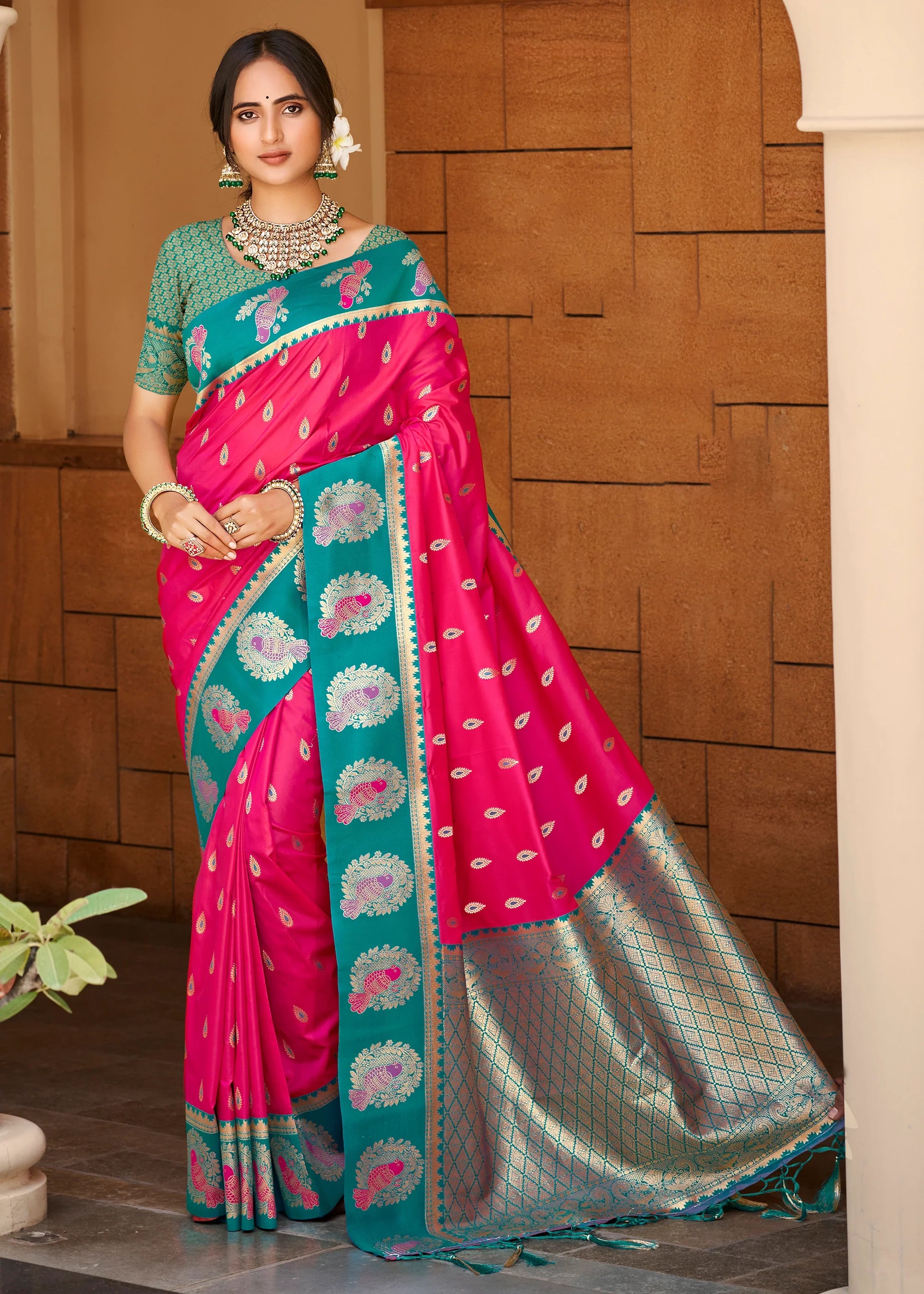 Drape yourself in this stunning saree, featuring vibrant borders and intricate weaving. Perfect for traditional events or weddings, this attire showcases elegant zari work for a touch of timeless charm.