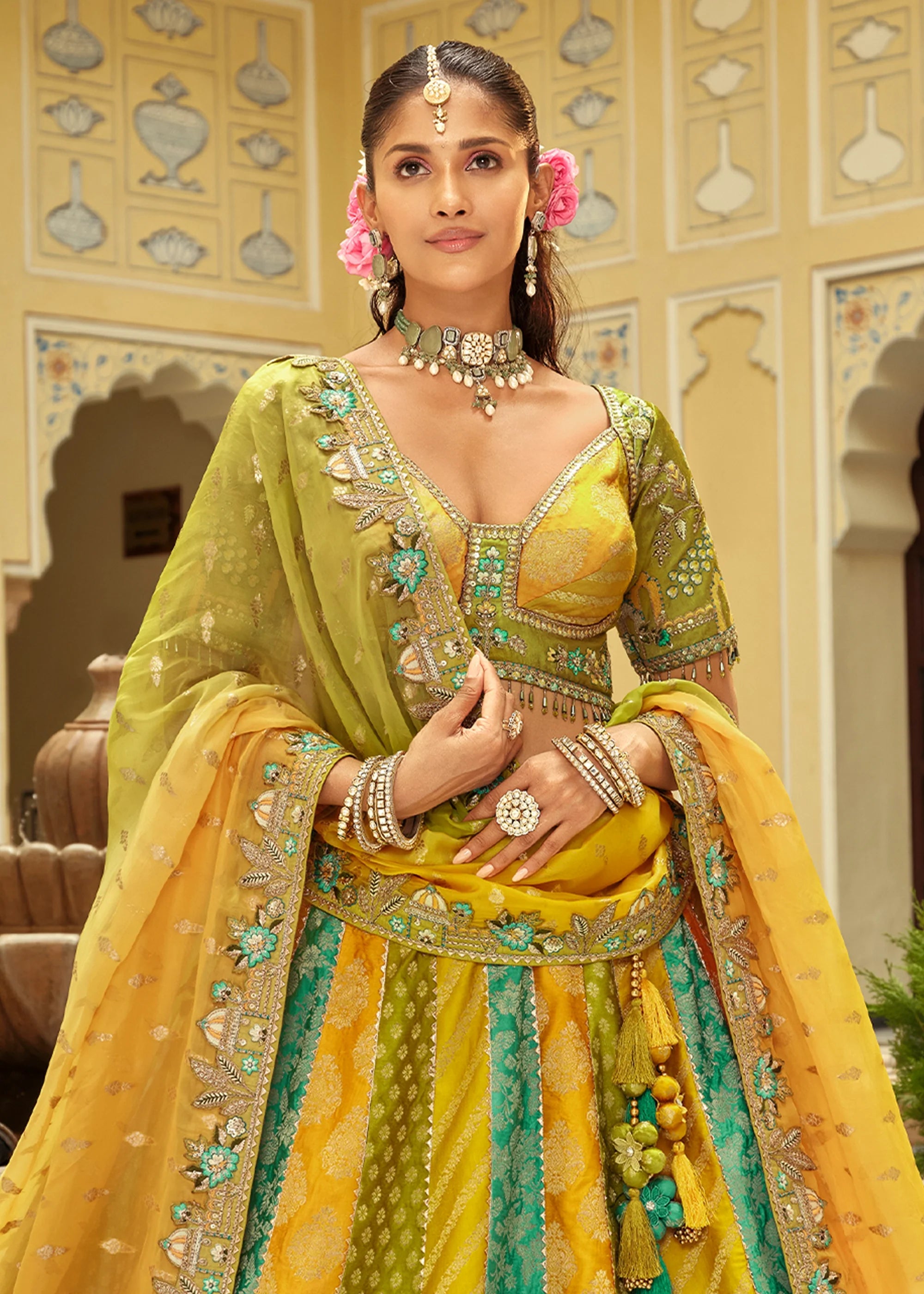 Yellow & Green Embroidered Stitched Designer Lehenga