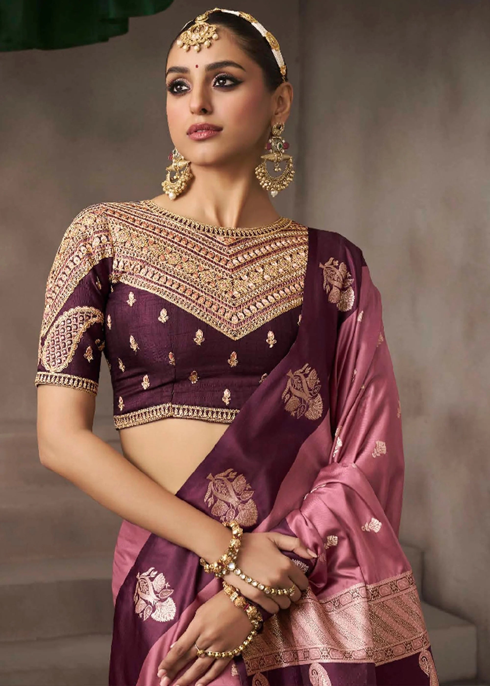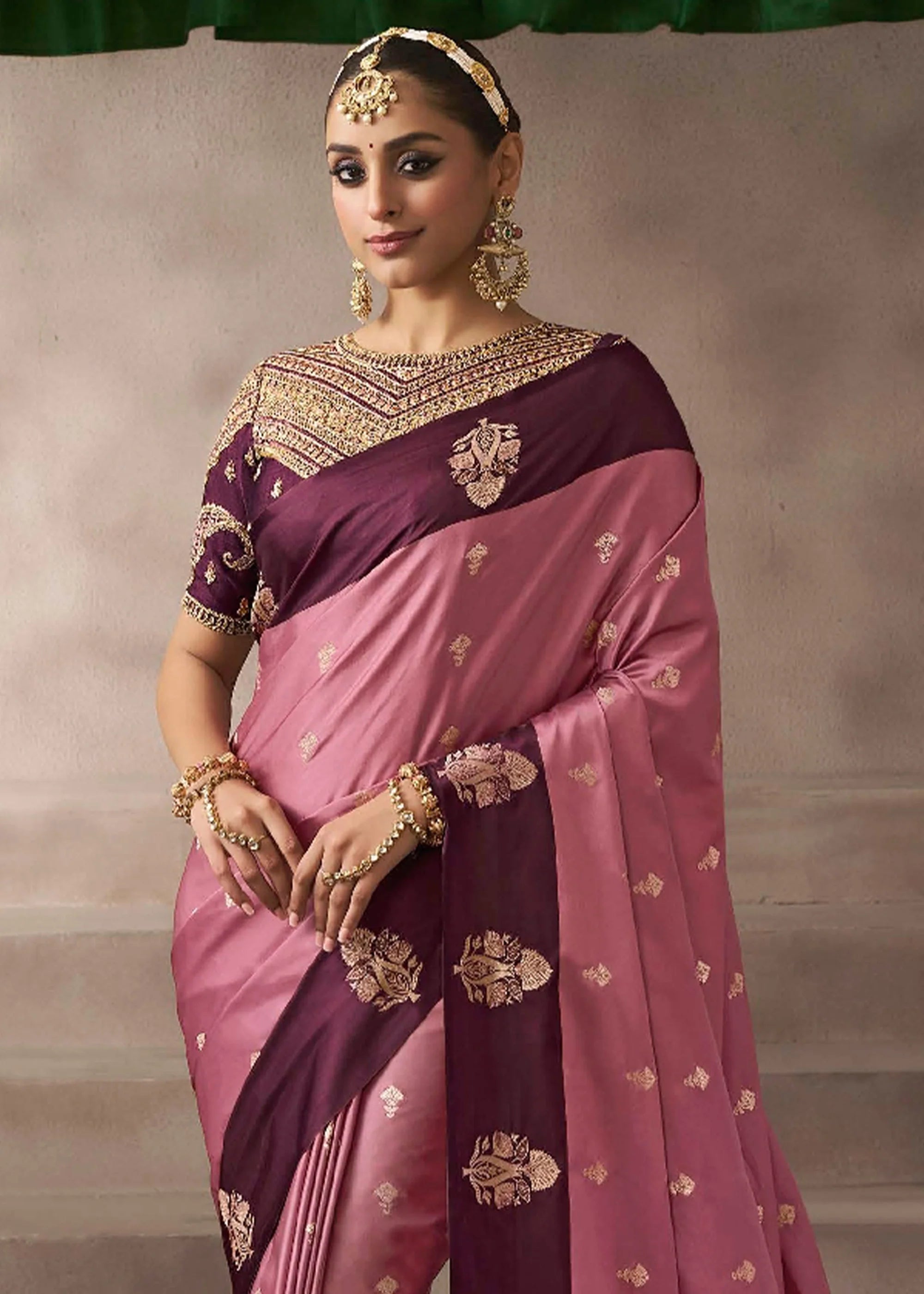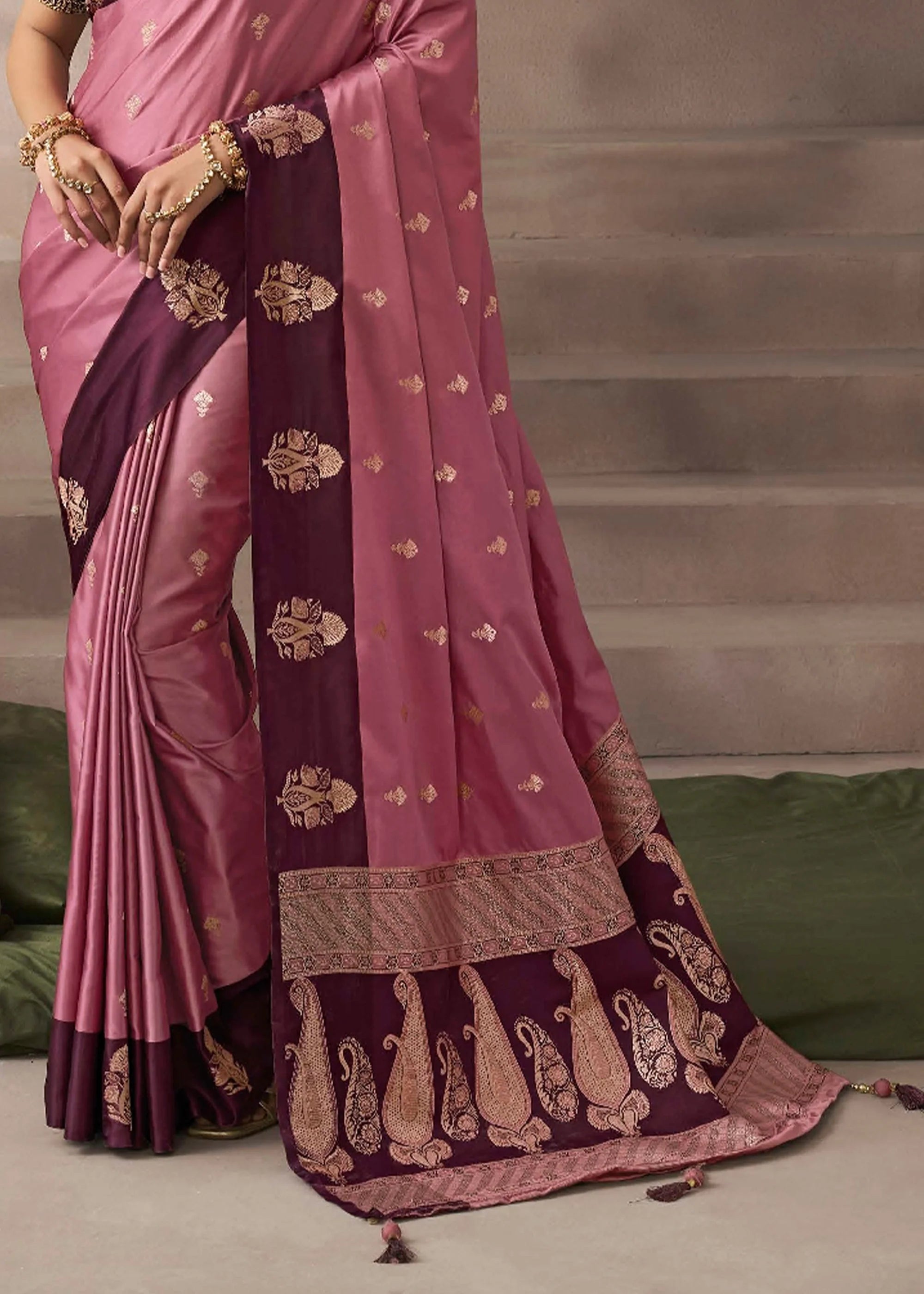 “Exclusive Offer” : Mauve Pink Woven Banarasi Satin Silk Saree