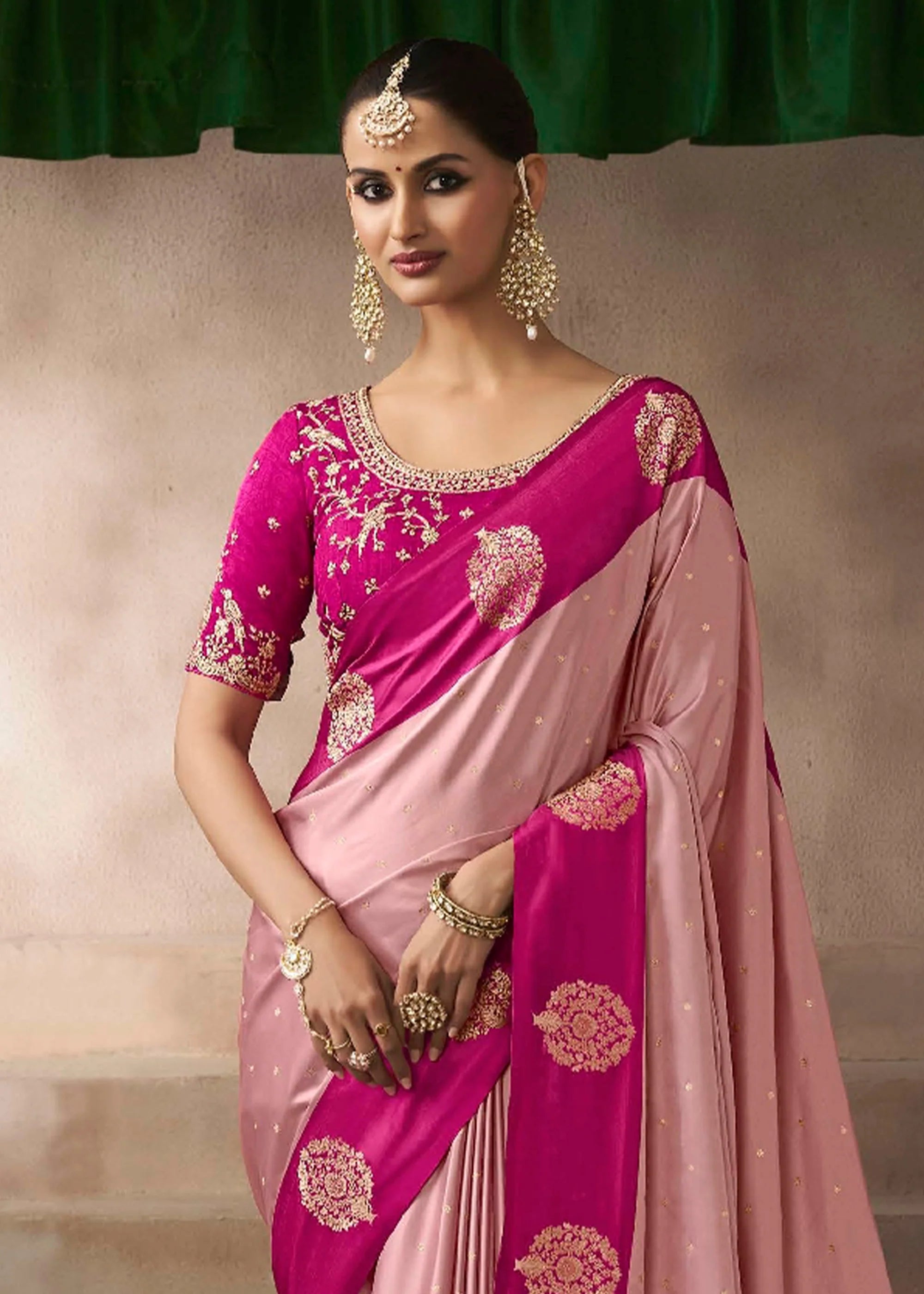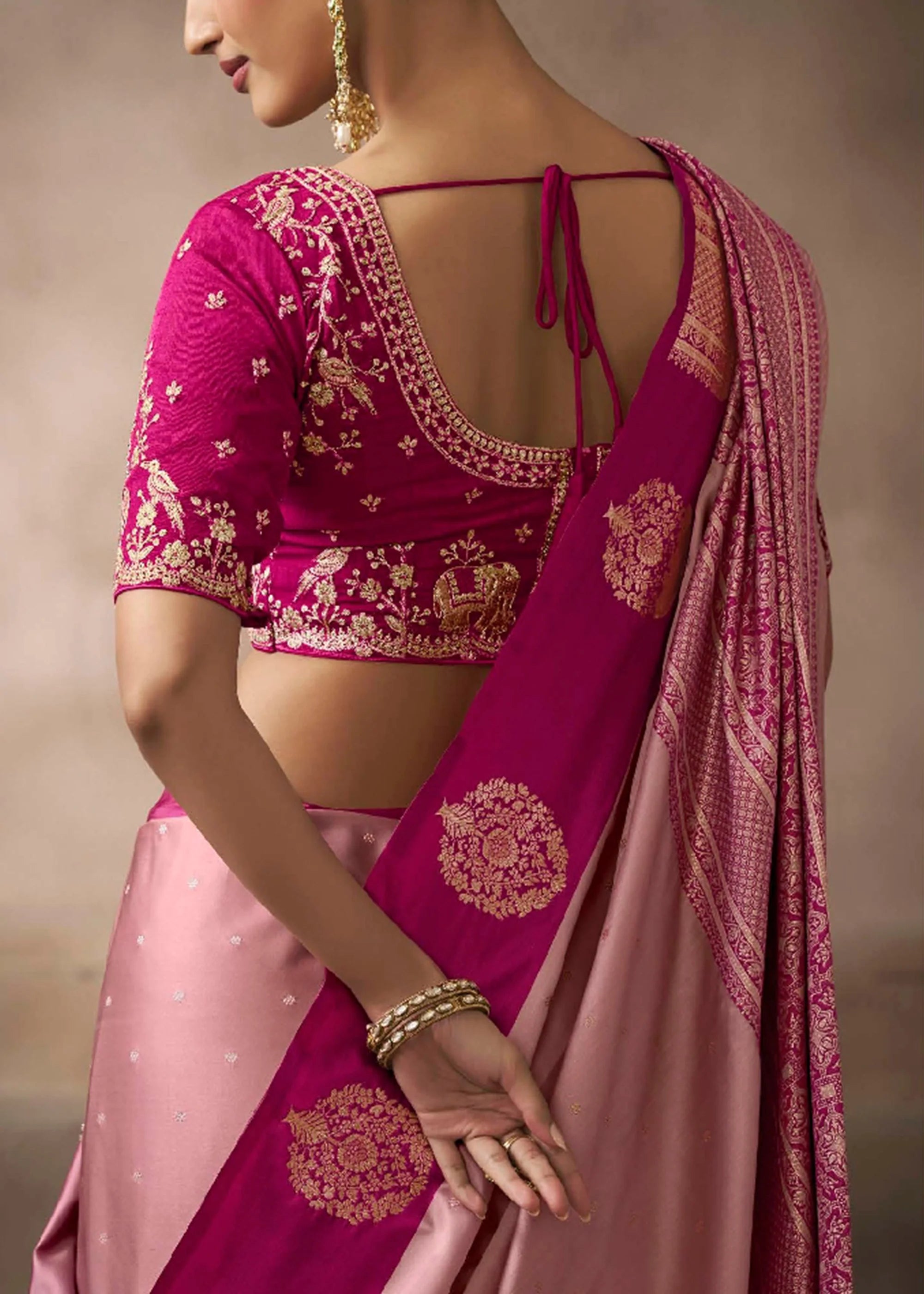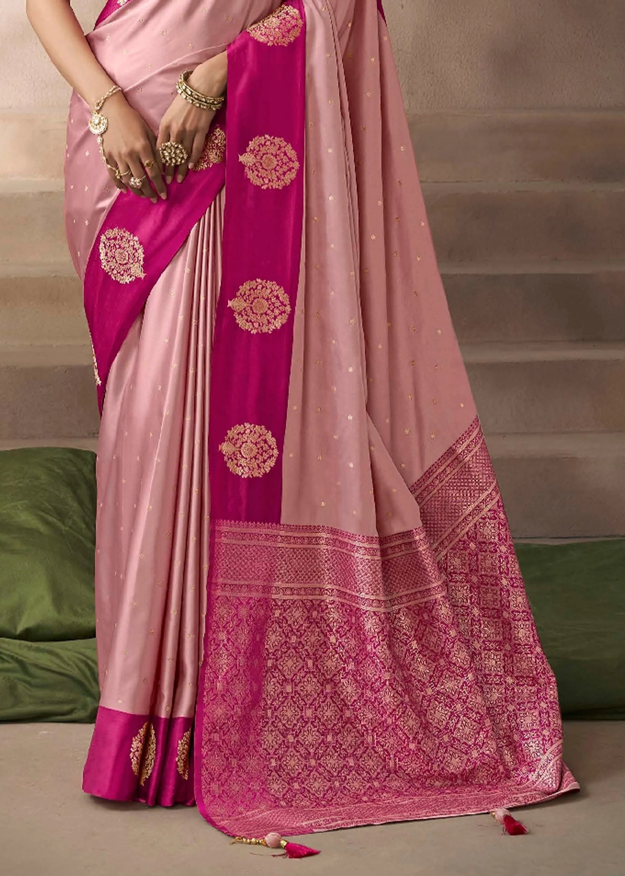 “Exclusive Offer” : Sweet Pink Woven Banarasi Satin Silk Saree