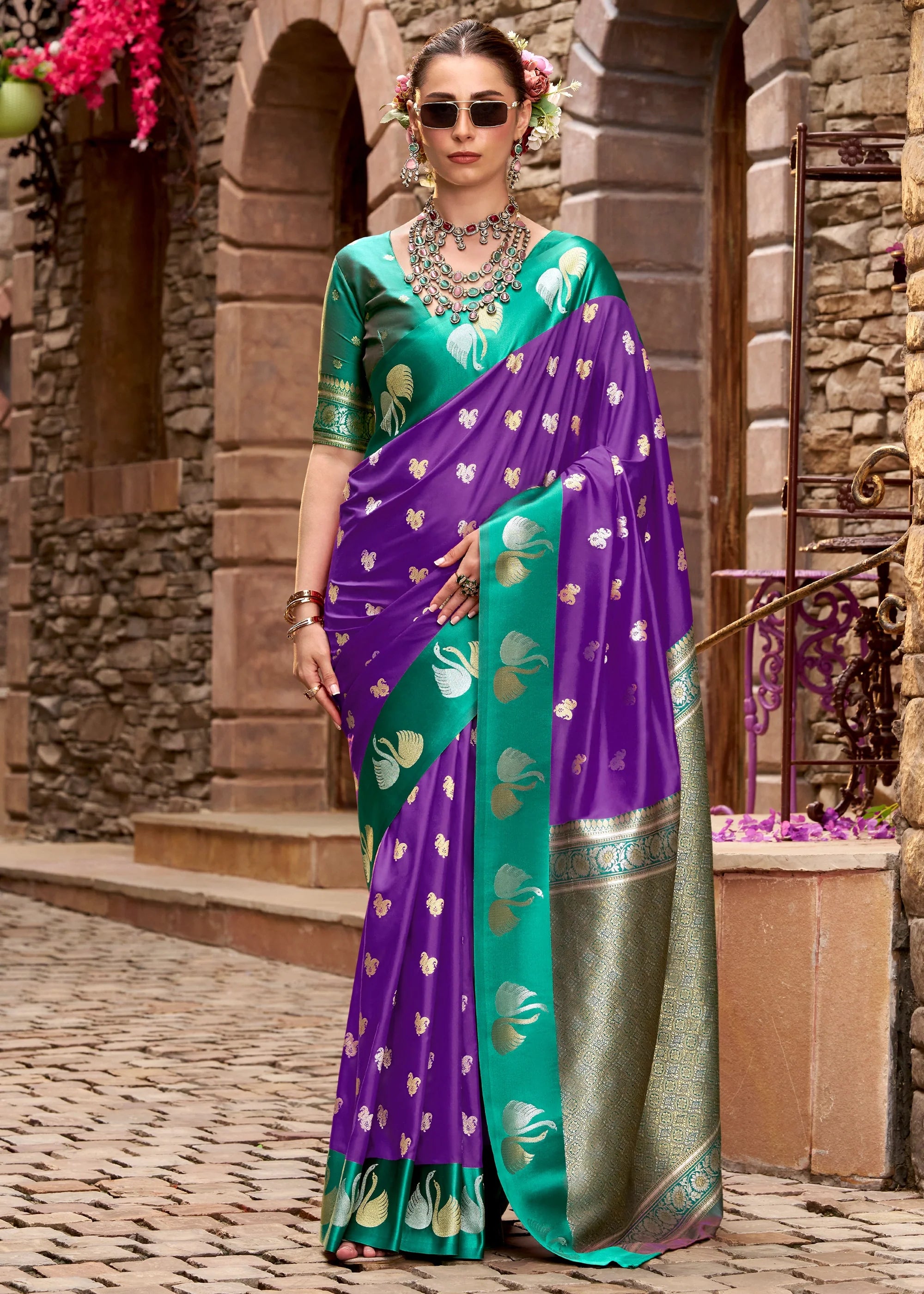 Radiate royal elegance with this luxurious Banarasi Satin Silk Saree, a perfect fusion of heritage and contemporary charm. Crafted from smooth, lustrous satin silk, it features intricate Banarasi zari weaving that reflects the timeless artistry of Varanasi’s master weavers.