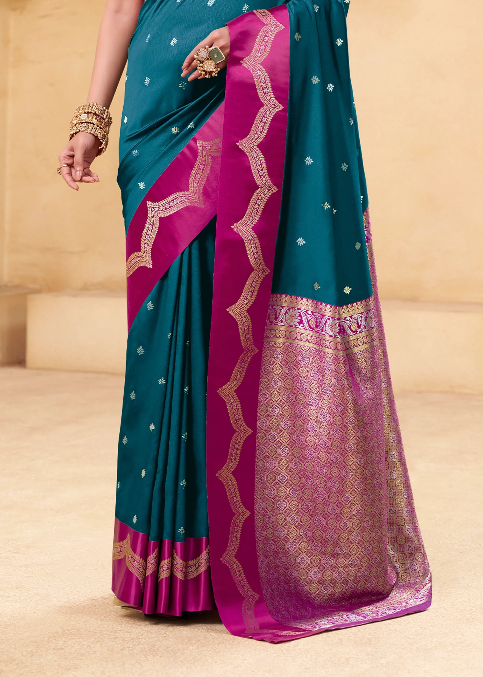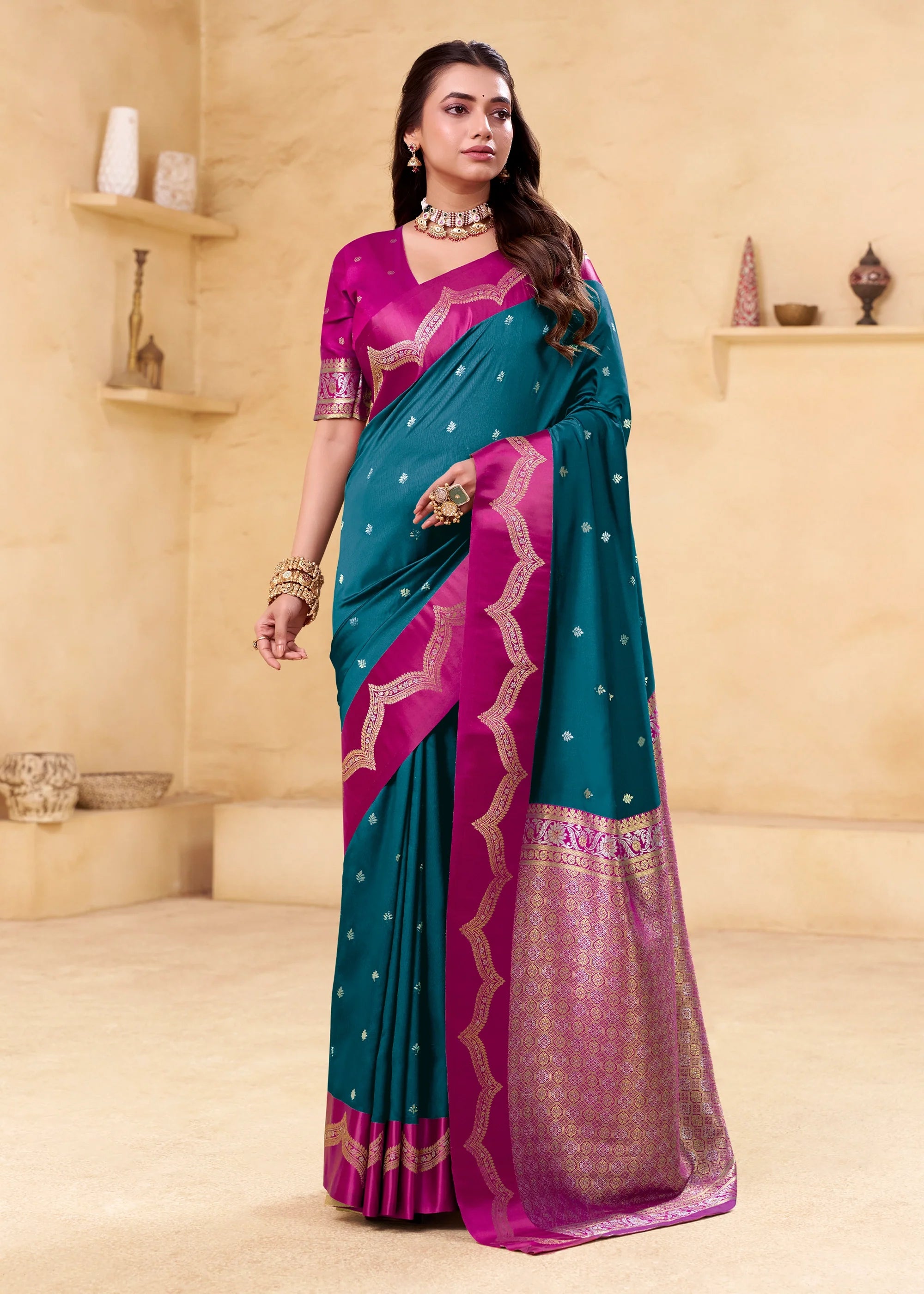 Radiate royal elegance with this luxurious Banarasi Satin Silk Saree, a perfect fusion of heritage and contemporary charm. Crafted from smooth, lustrous satin silk, it features intricate Banarasi zari weaving that reflects the timeless artistry of Varanasi’s master weavers.