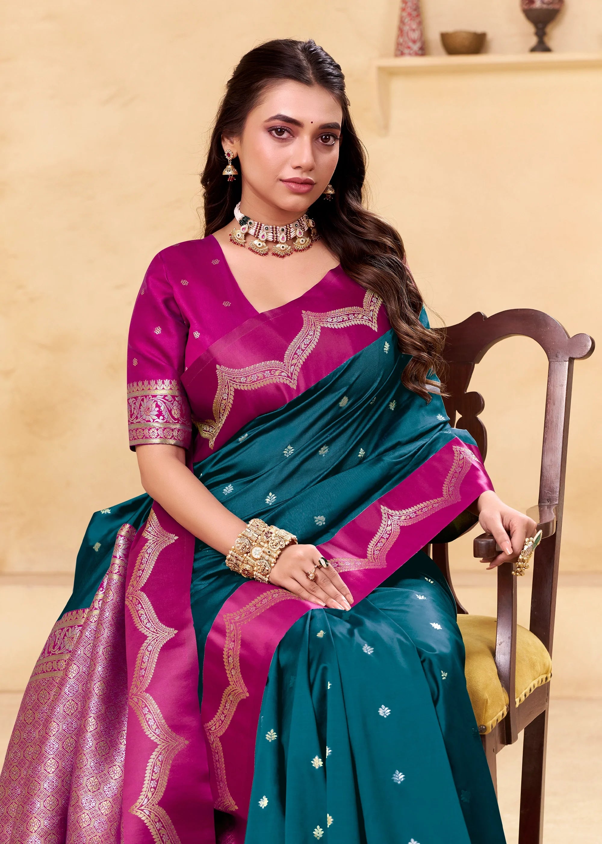 Radiate royal elegance with this luxurious Banarasi Satin Silk Saree, a perfect fusion of heritage and contemporary charm. Crafted from smooth,...