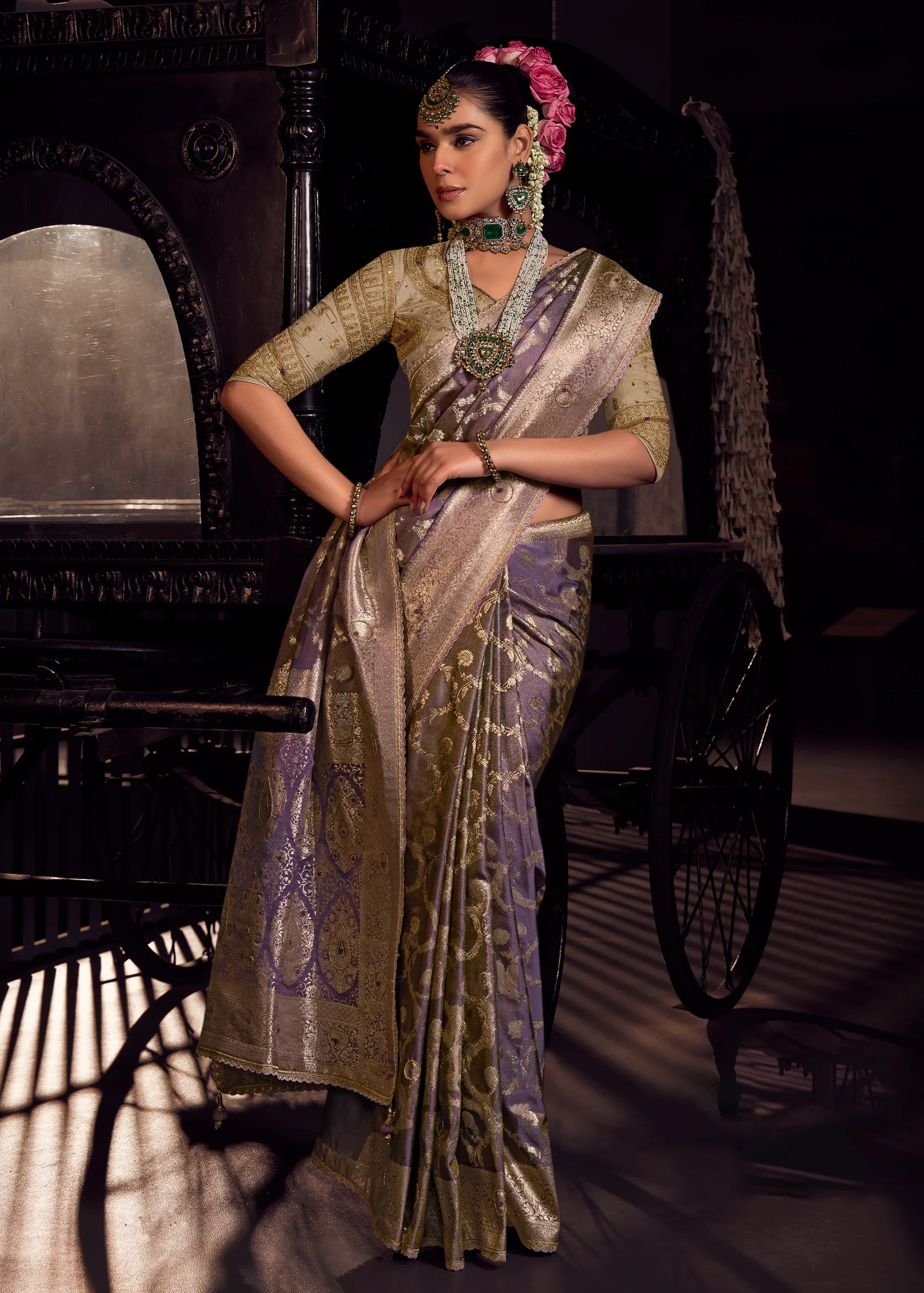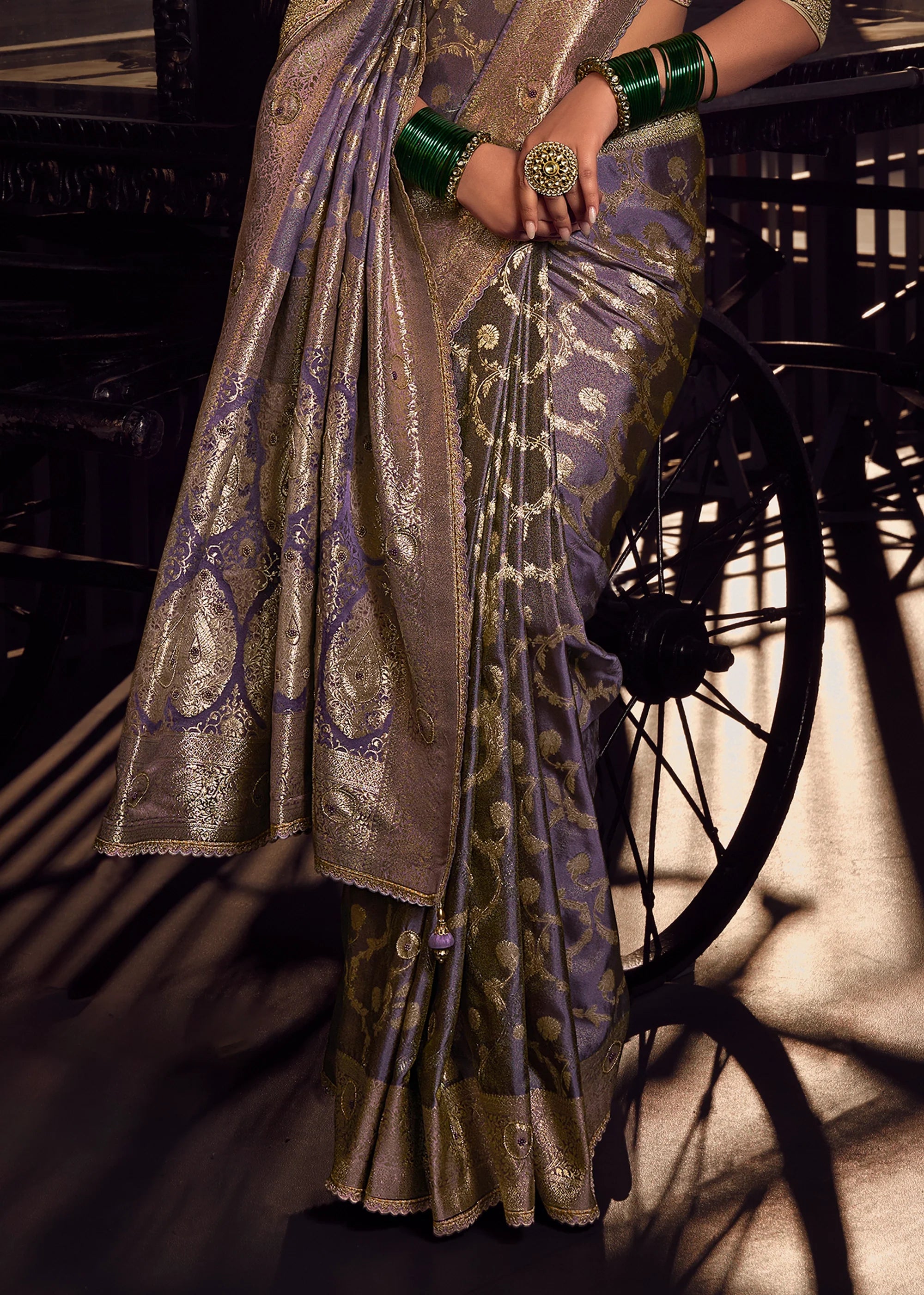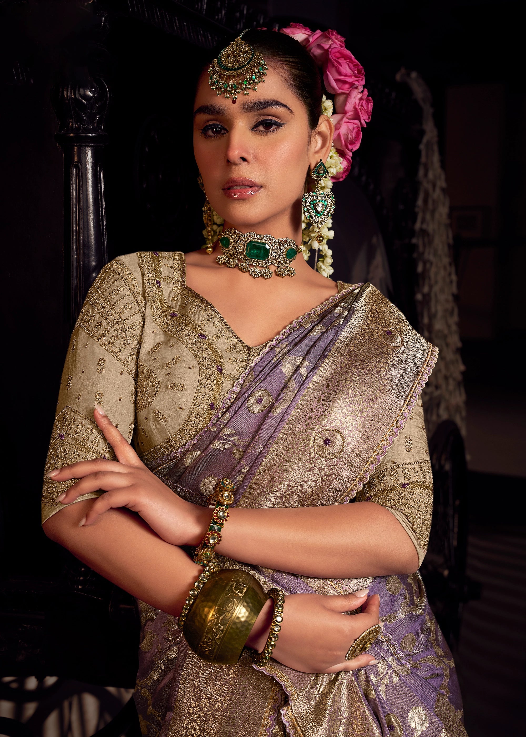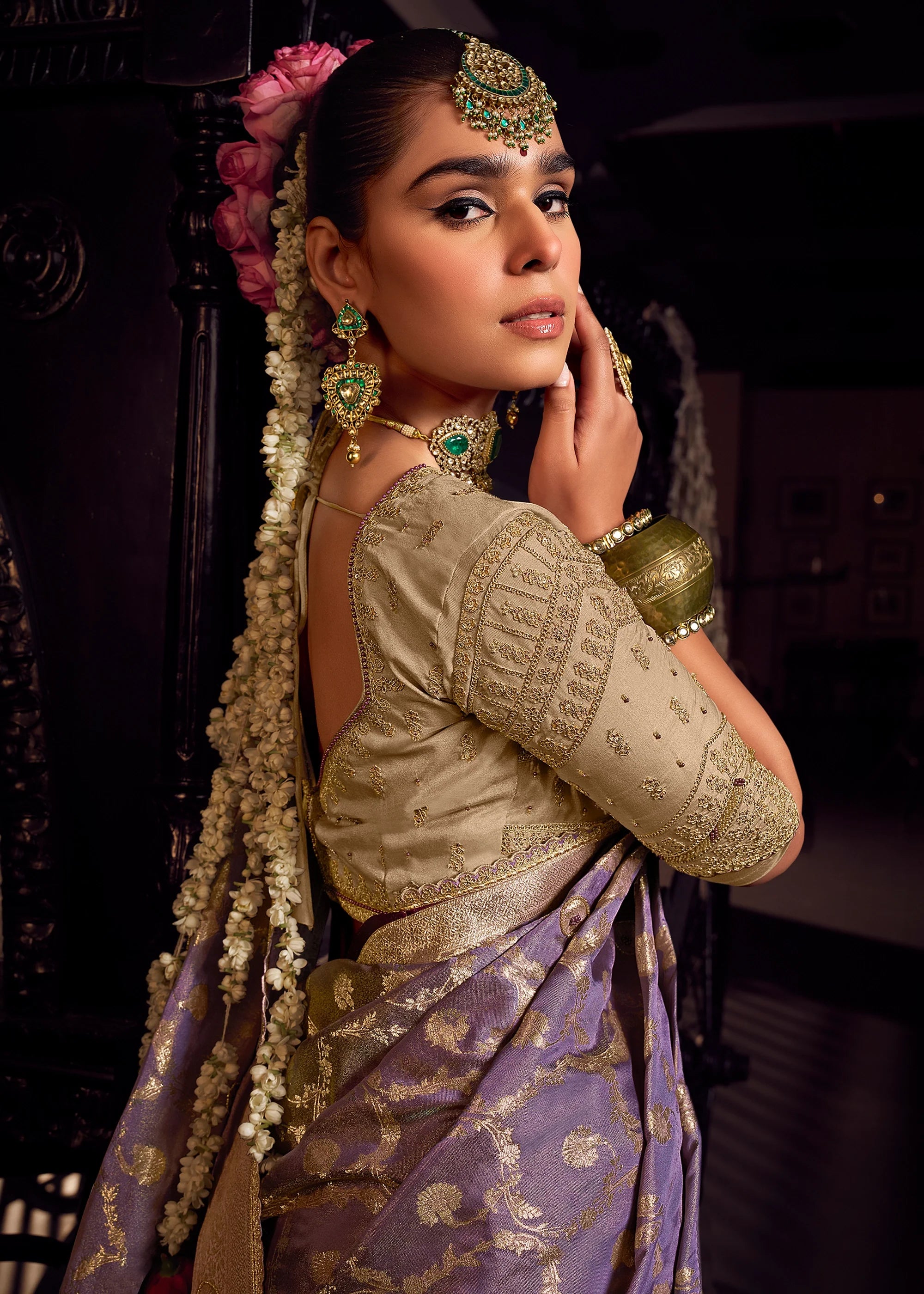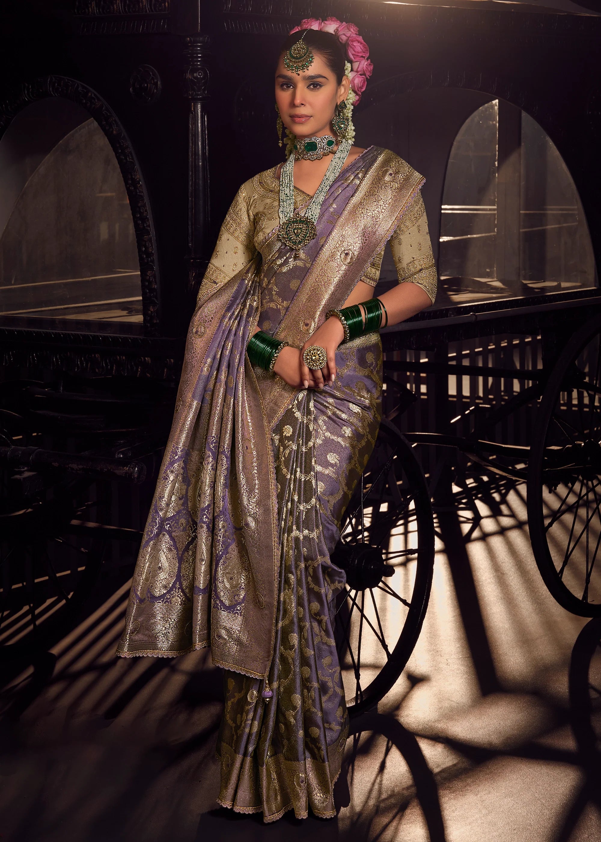 “Exclusive Offer” : Aster Purple Woven Banarasi Satin Silk Saree