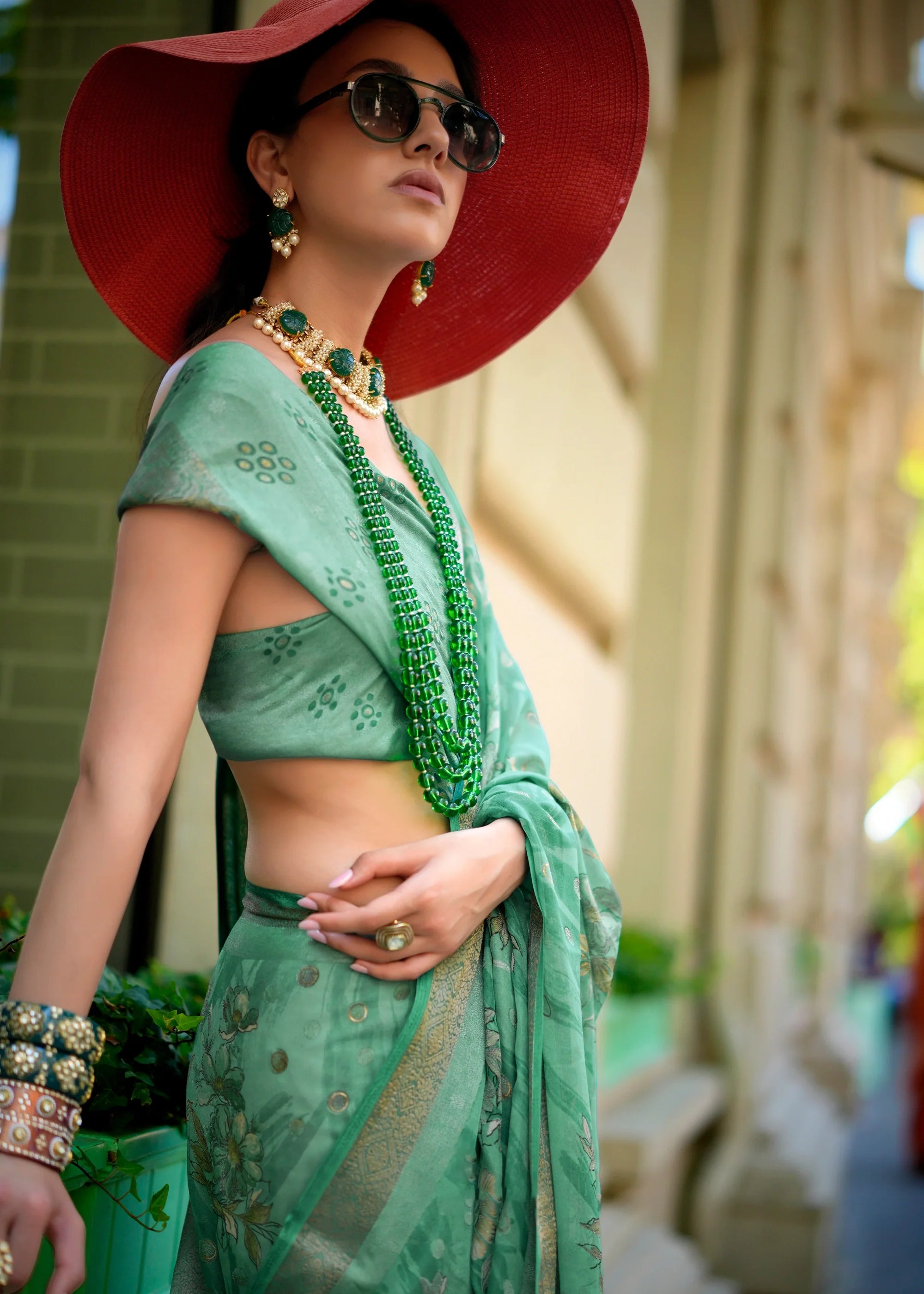 A Georgette Silk Saree is a stunning and elegant garment that exudes a sense of sophistication and refinement. Adorn yourself with the beauty of nature in this stunning floral printed saree. The intricate floral patterns create a beautiful, eye-catching design that is sure to turn heads.