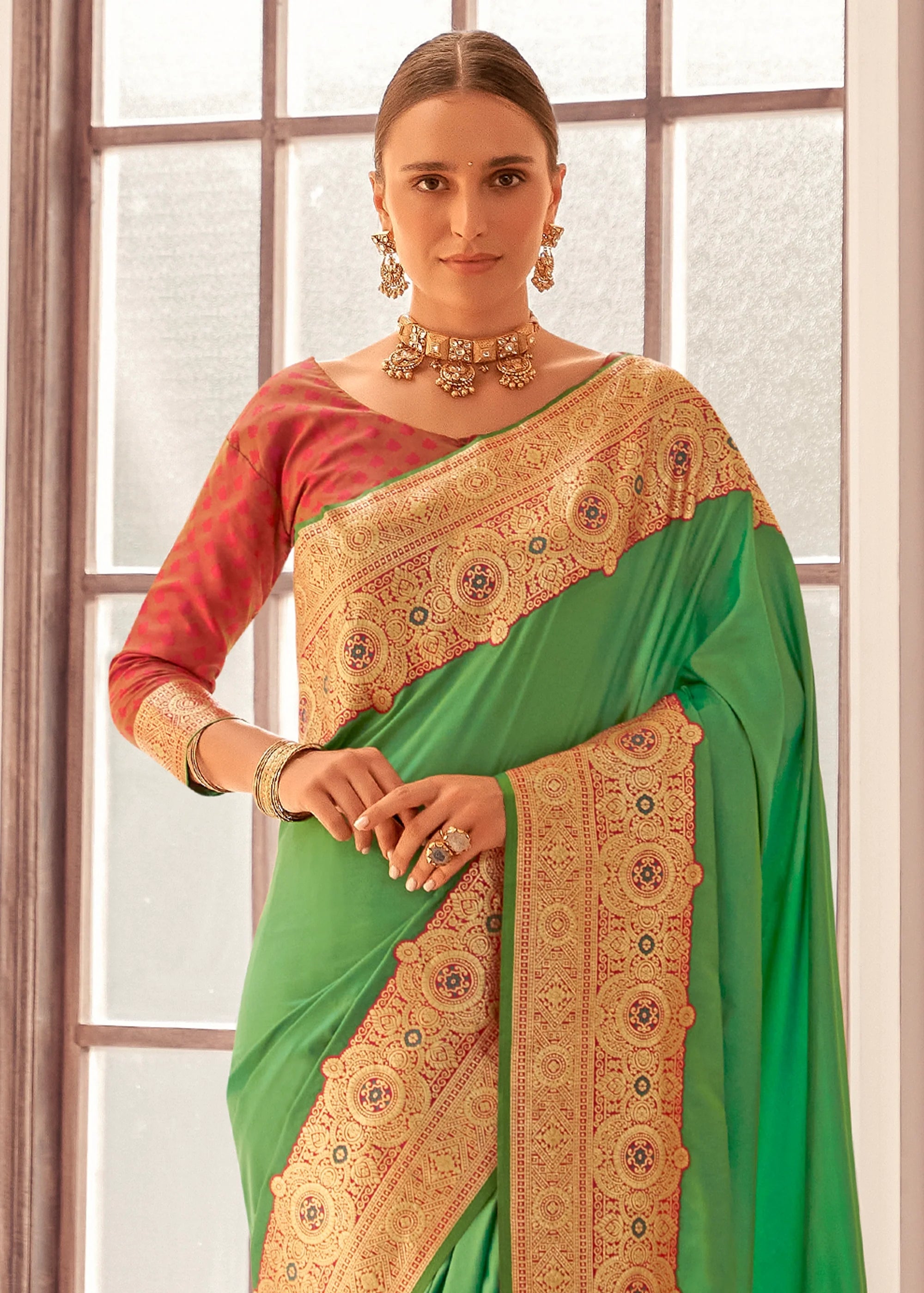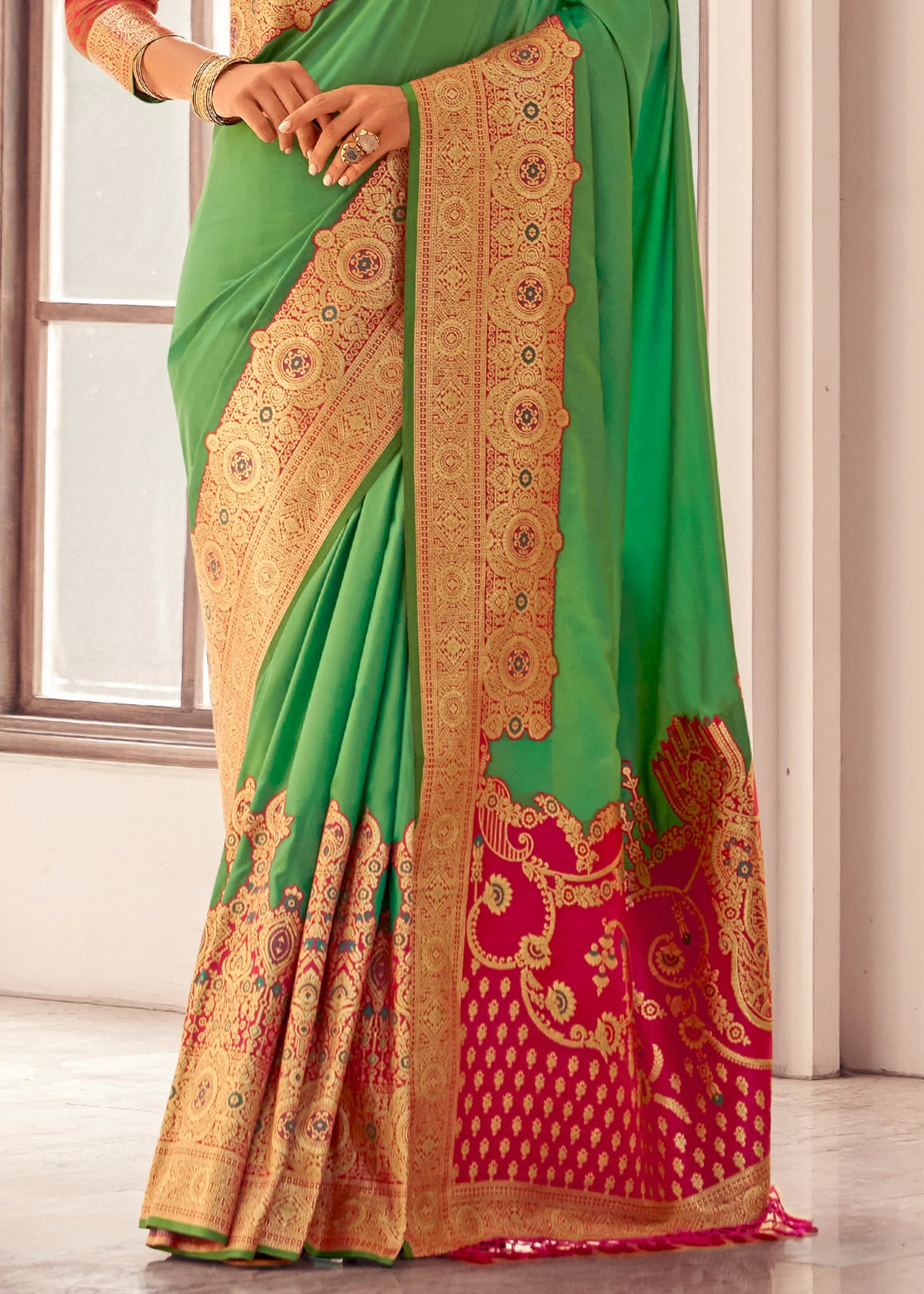 Vibrant Green Woven Banarasi Silk Saree