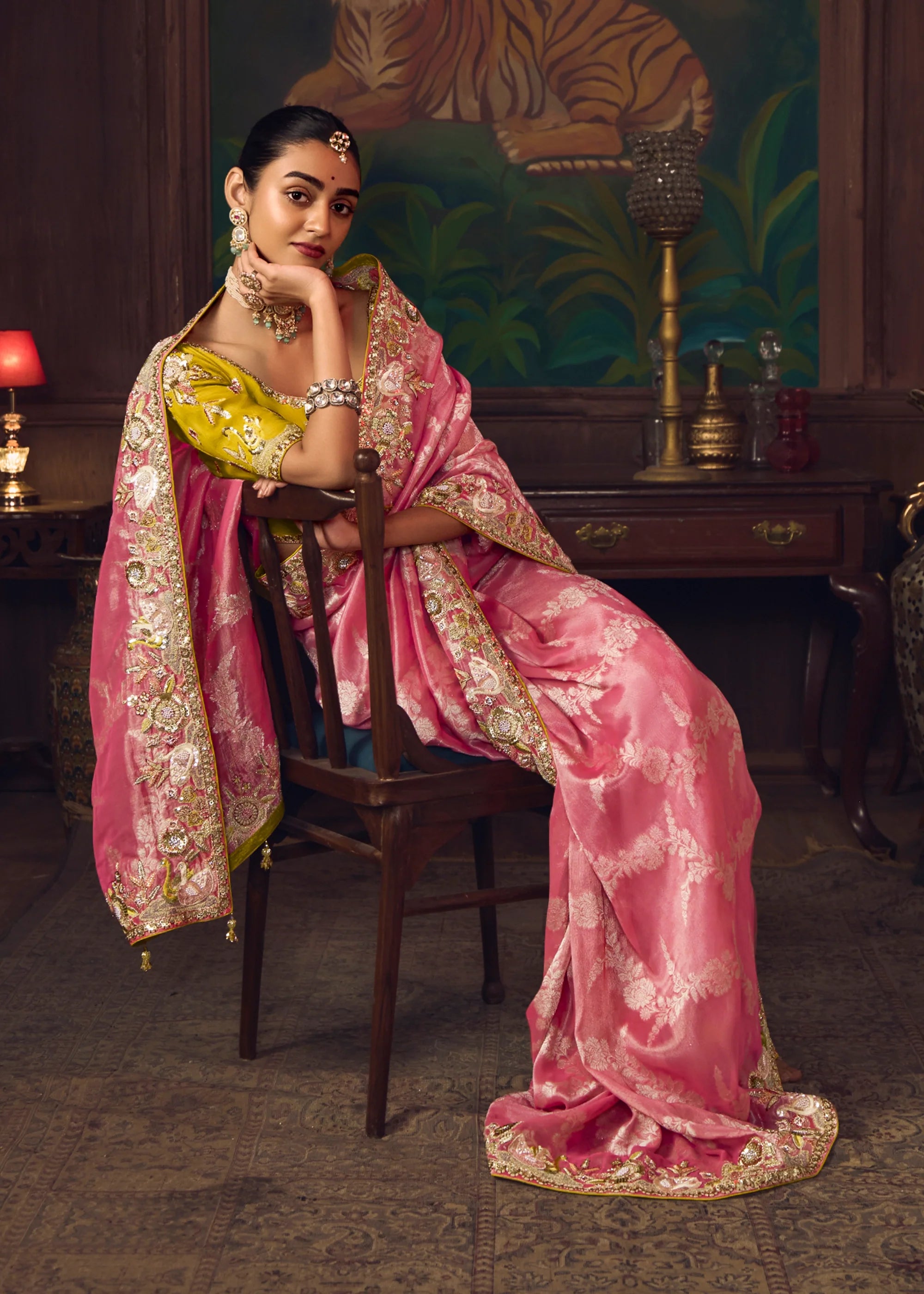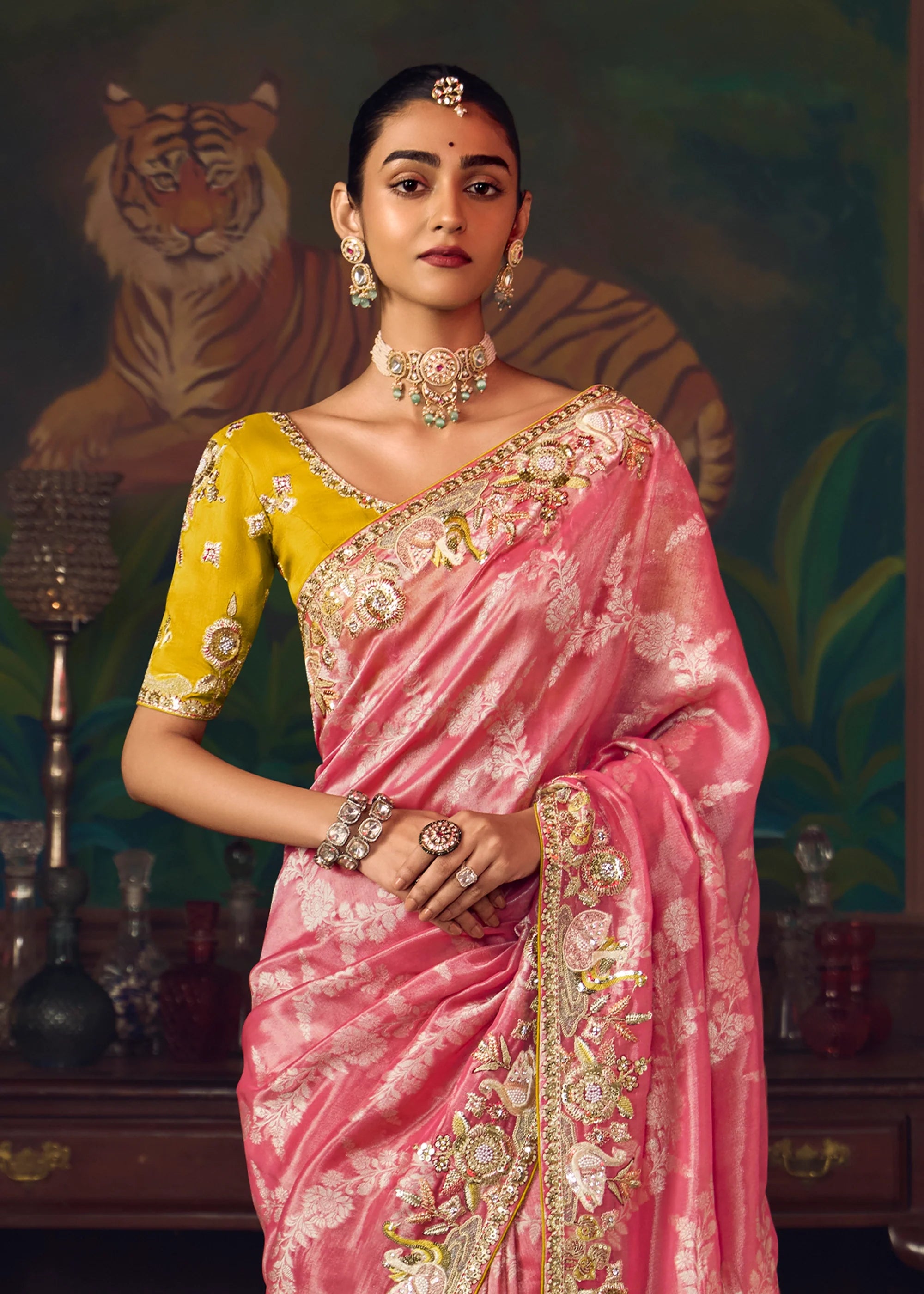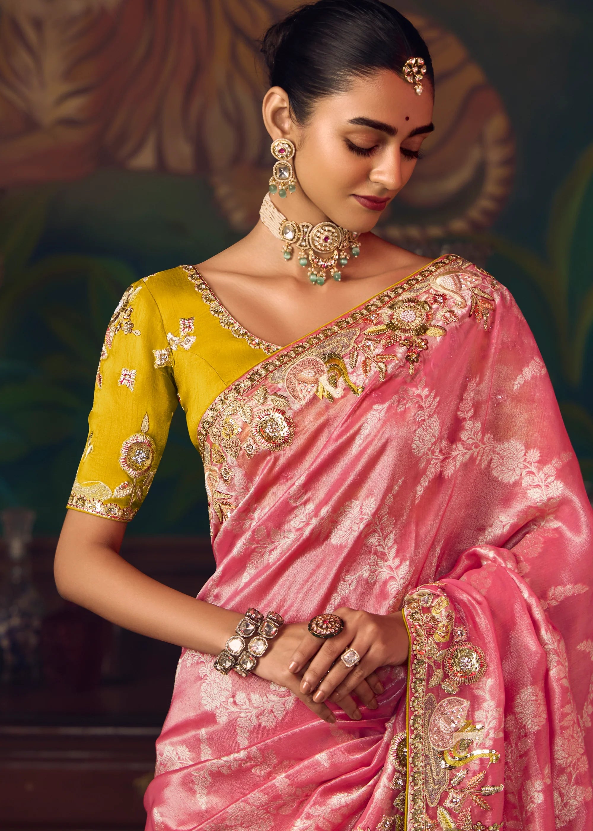 Blossom Pink Woven Embroidered Saree