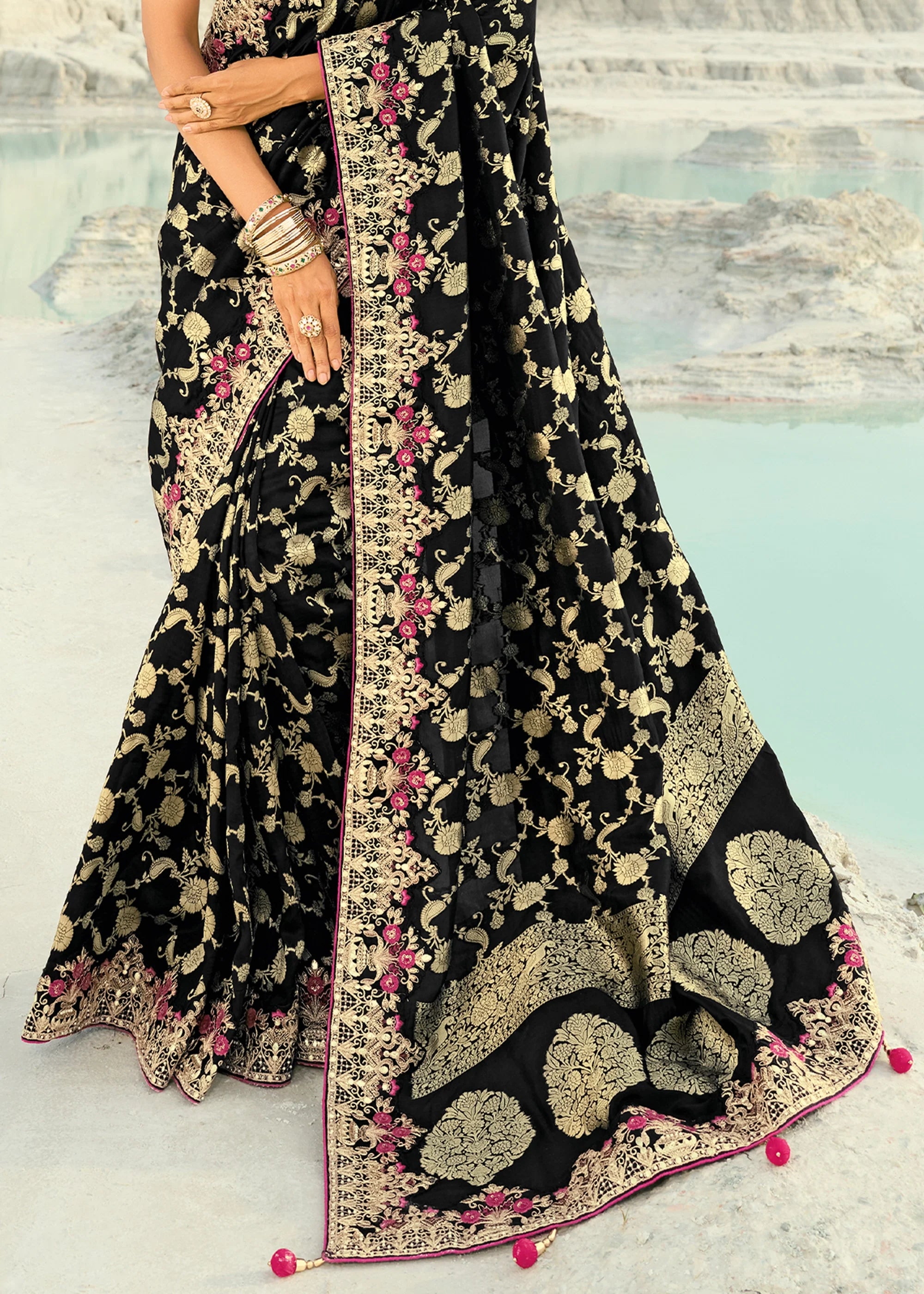 Black Woven Banarasi Embroidered Soft SIlk Saree