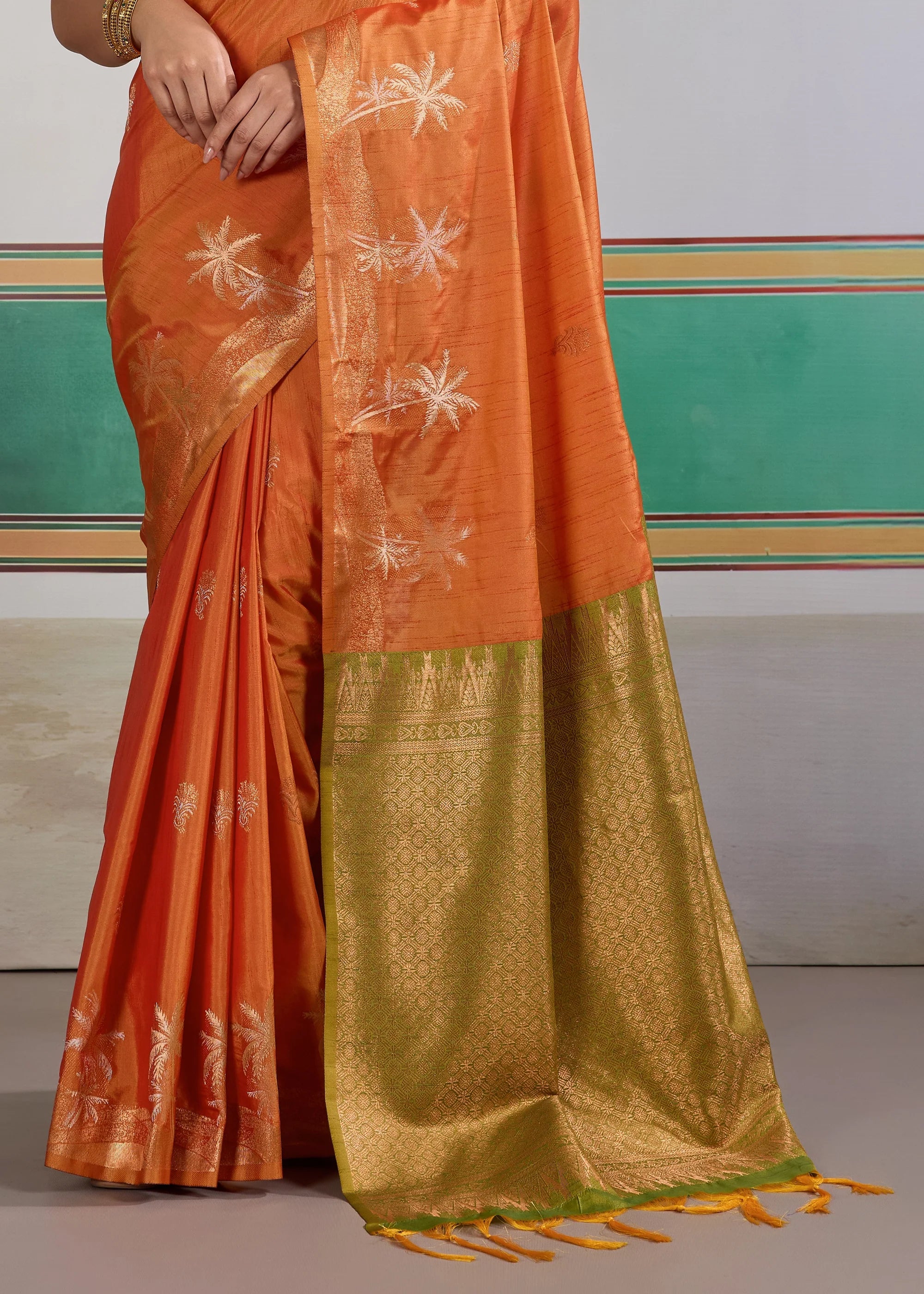 Bright Orange Woven Tussar Silk Saree