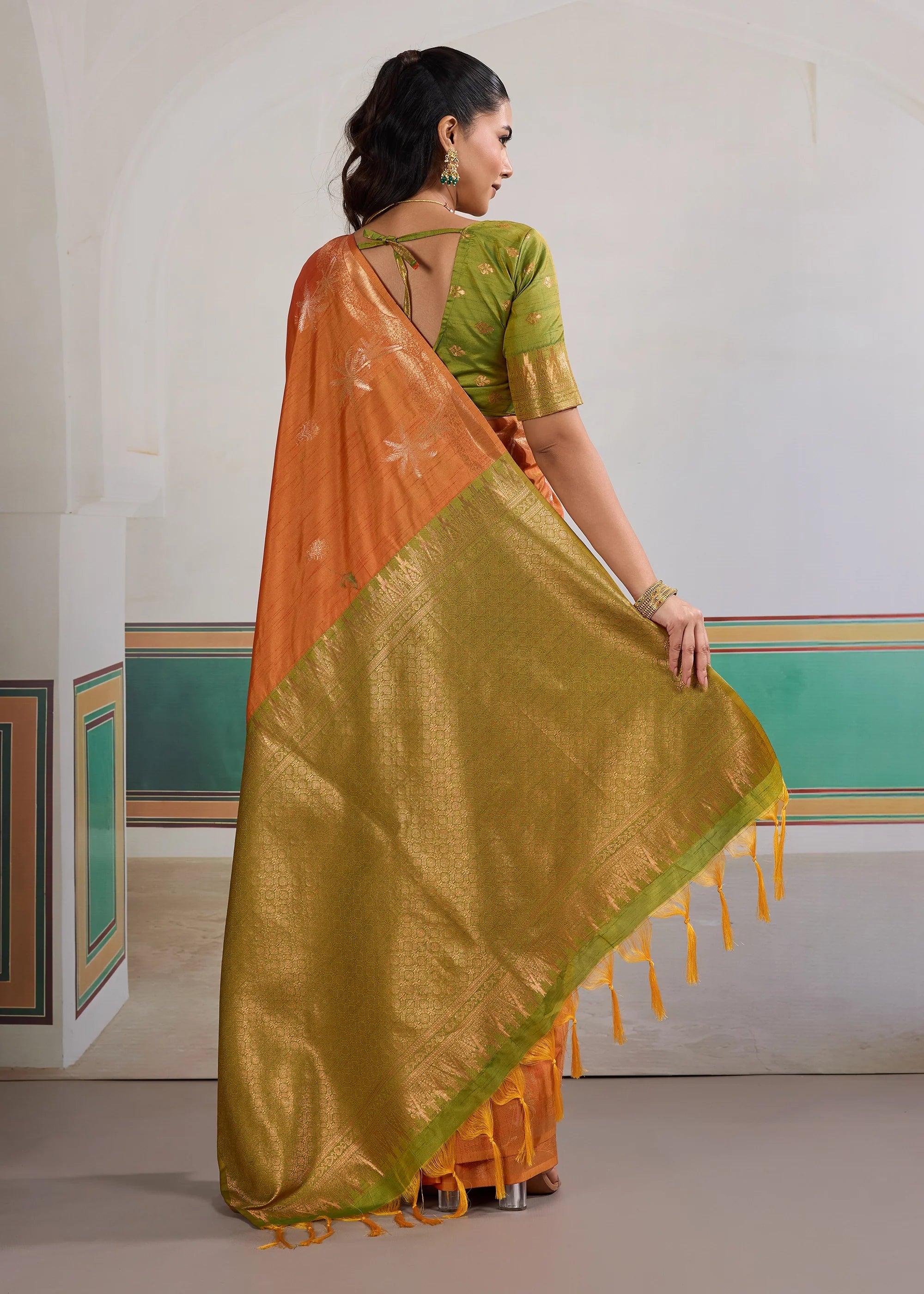 Folding: Change the folds of your saree periodically to prevent creases from becoming permanent.
