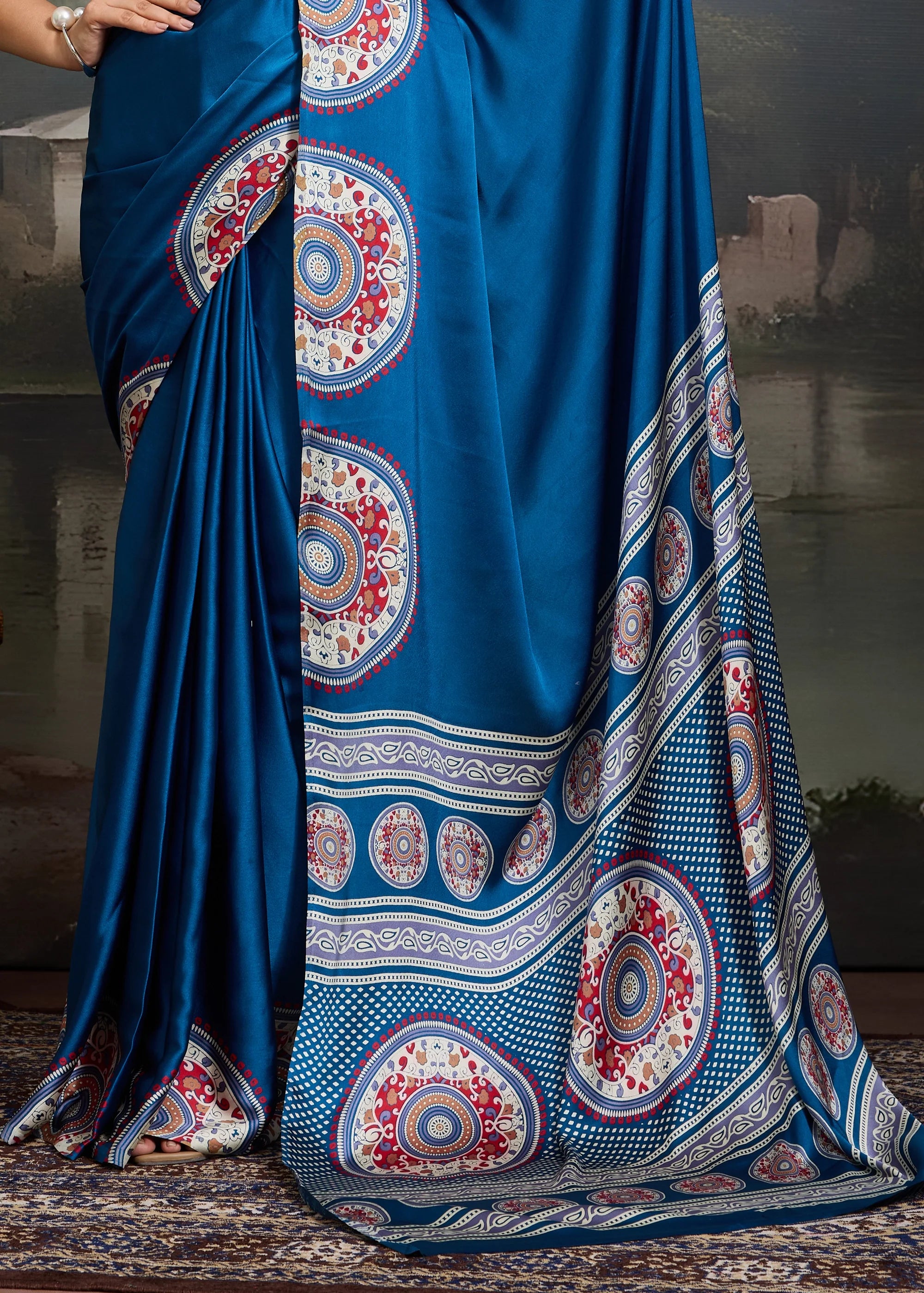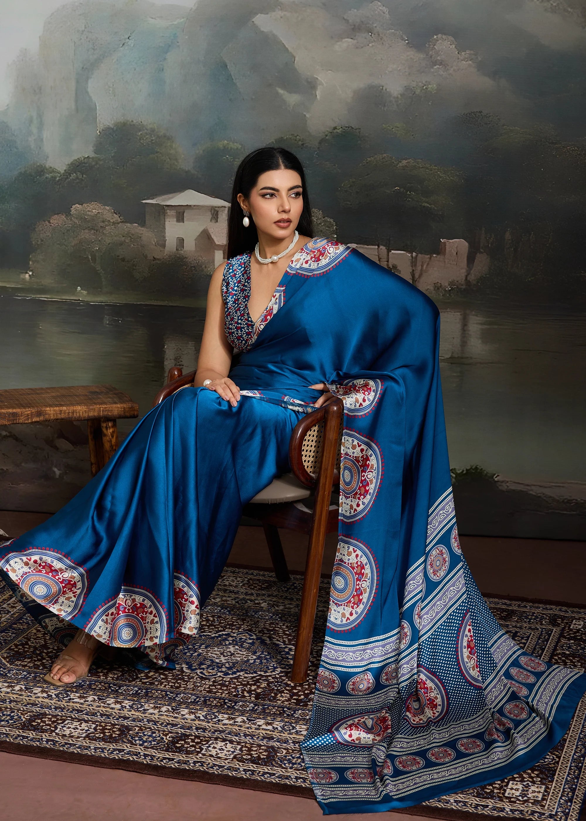 Drape yourself in the luxurious embrace of our Digital Printed Satin Silk Saree, a harmonious blend of traditional artistry and contemporary design. Crafted from the finest satin silk, this saree offers an unparalleled soft touch and a beautiful, flowing drape that accentuates every silhouette.