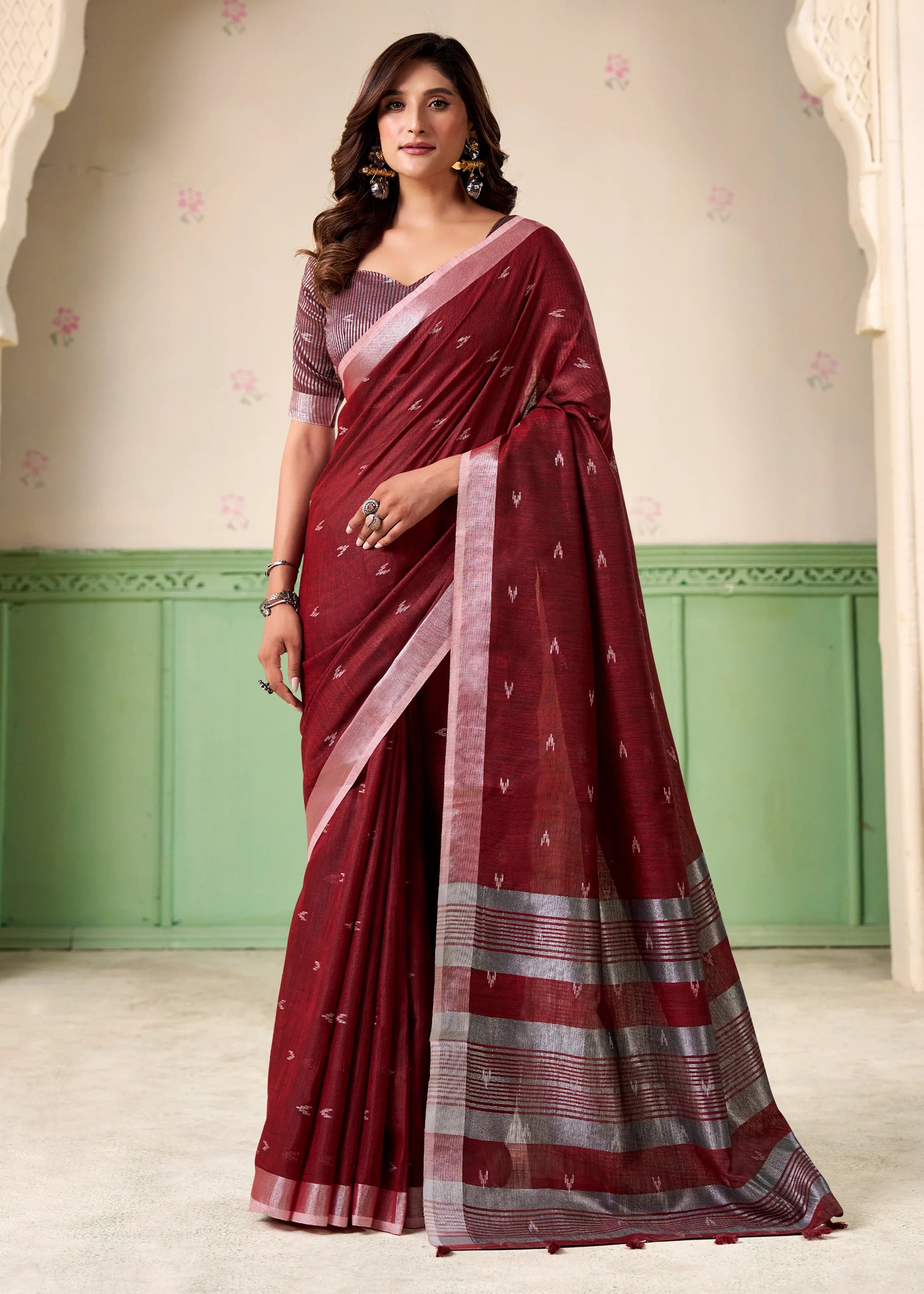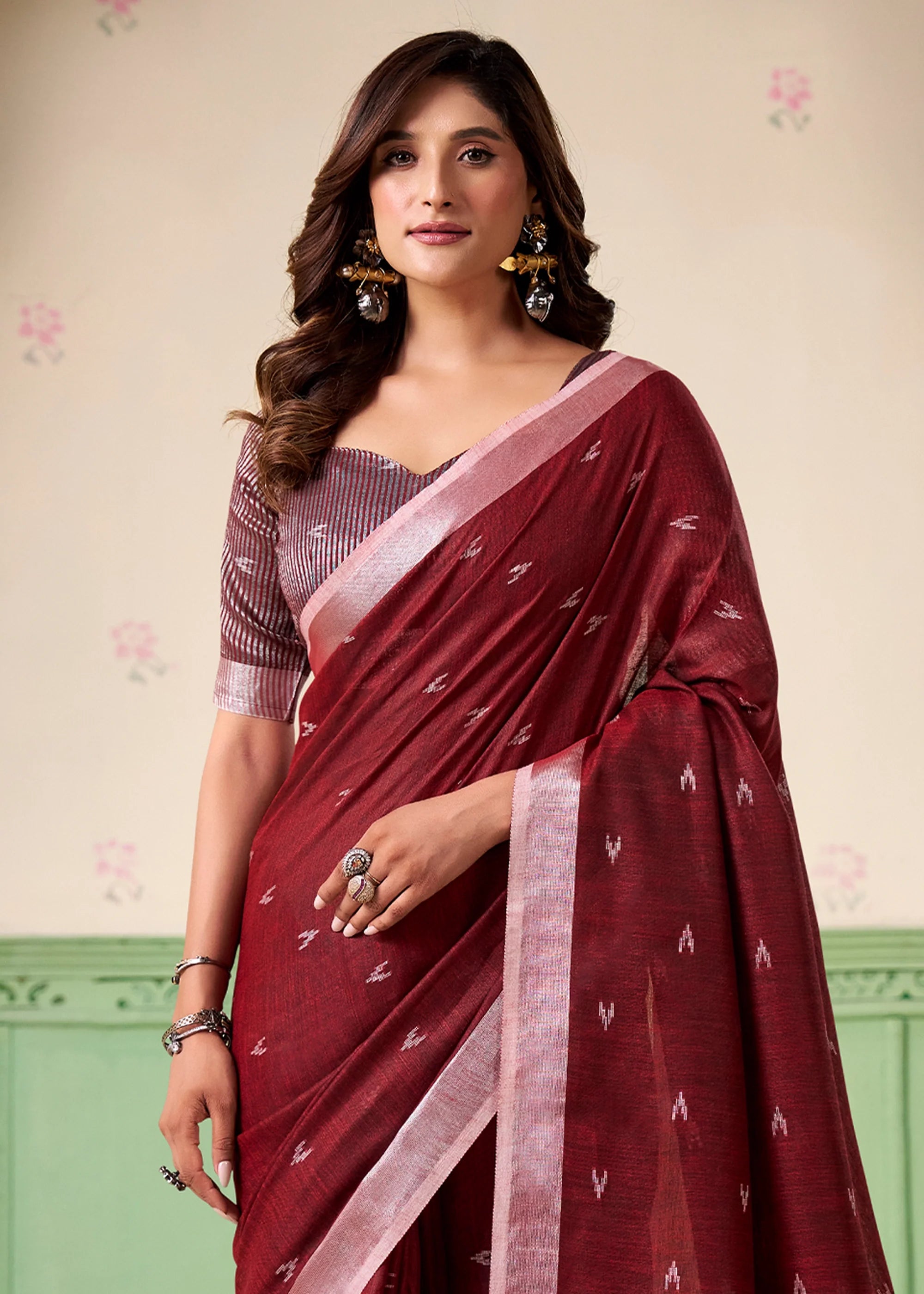 Elevate your ethnic wardrobe with this exquisite Linen Silk Saree, known for its lightweight feel, soft texture, and luxurious shimmer. Crafted...
