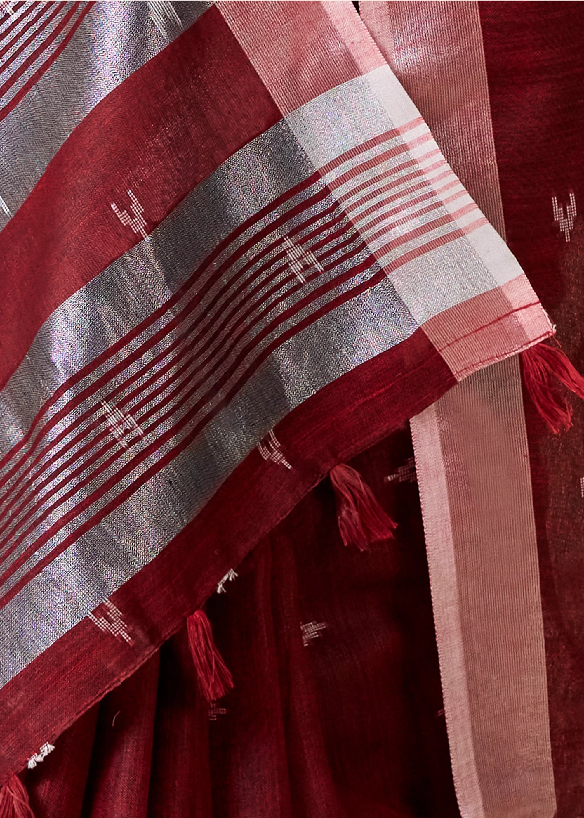 Elevate your ethnic wardrobe with this exquisite Linen Silk Saree, known for its lightweight feel, soft texture, and luxurious shimmer. Crafted by blending fine linen with cotton , the saree offers a beautiful balance of structure and fluidity, giving it a graceful, airy drape.