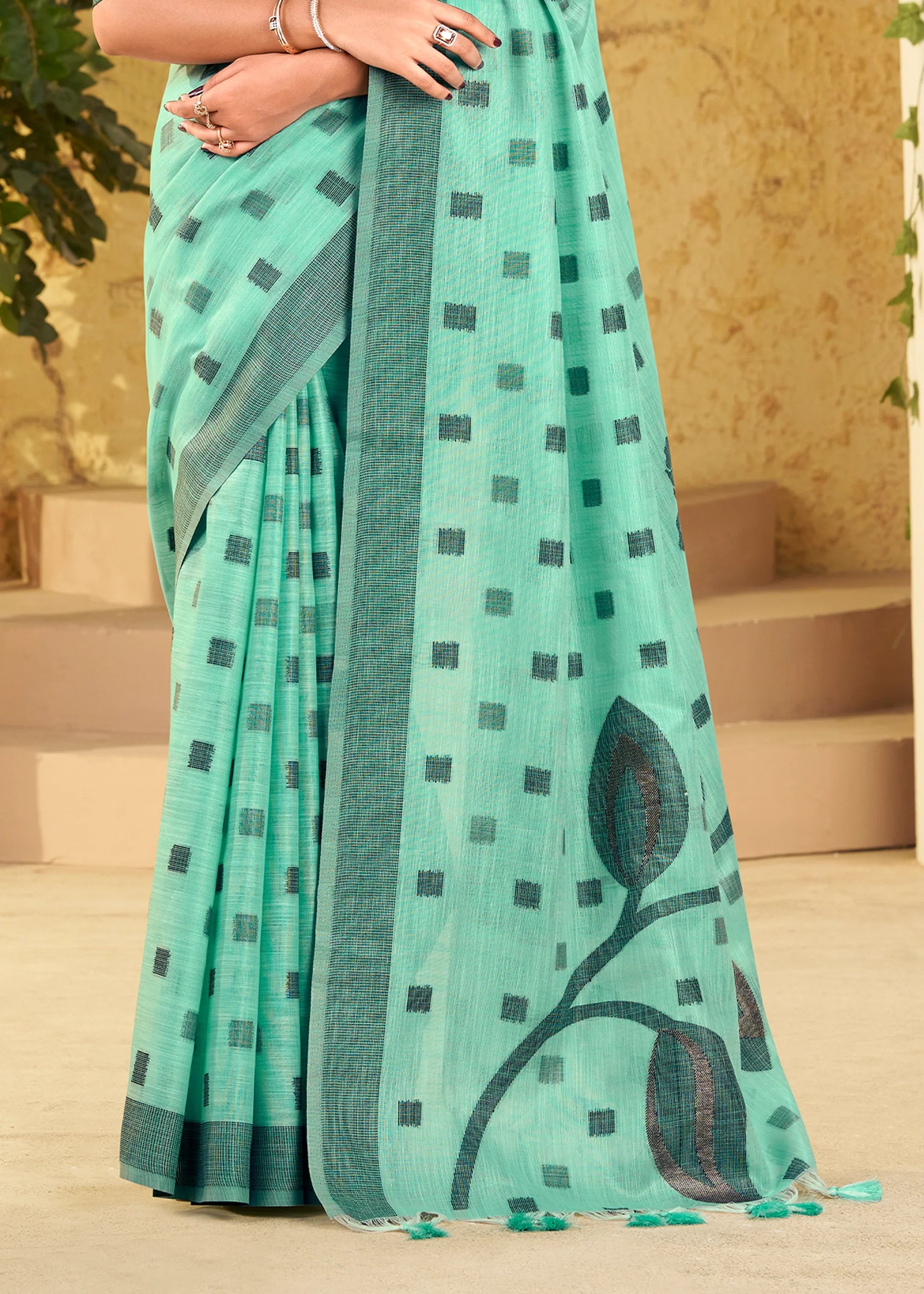 Fair Green Woven Linen Silk Saree