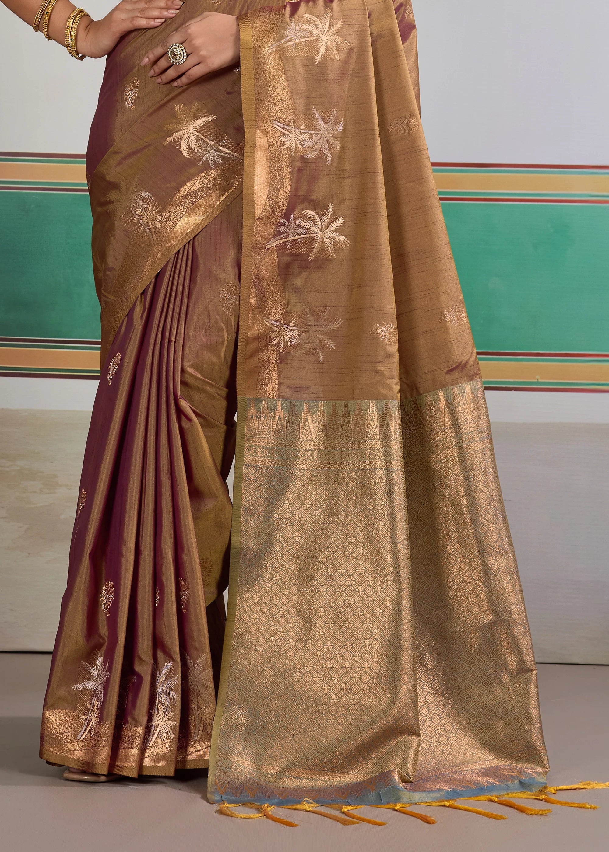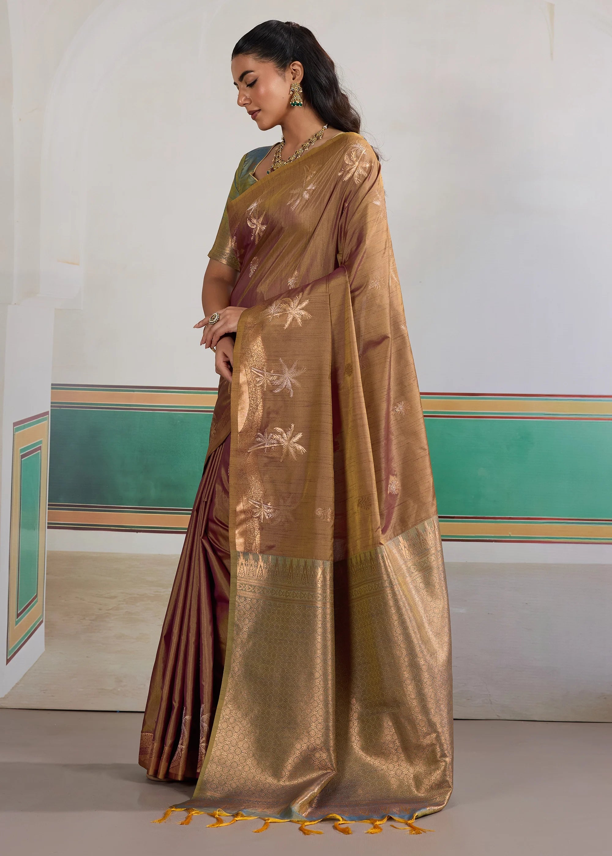 Discover the understated luxury of tradition with this exquisite Tussar Silk Saree, celebrated for its natural texture and rich golden sheen. Woven from pure tussar silk threads, this saree embodies earthy elegance and timeless craftsmanship.