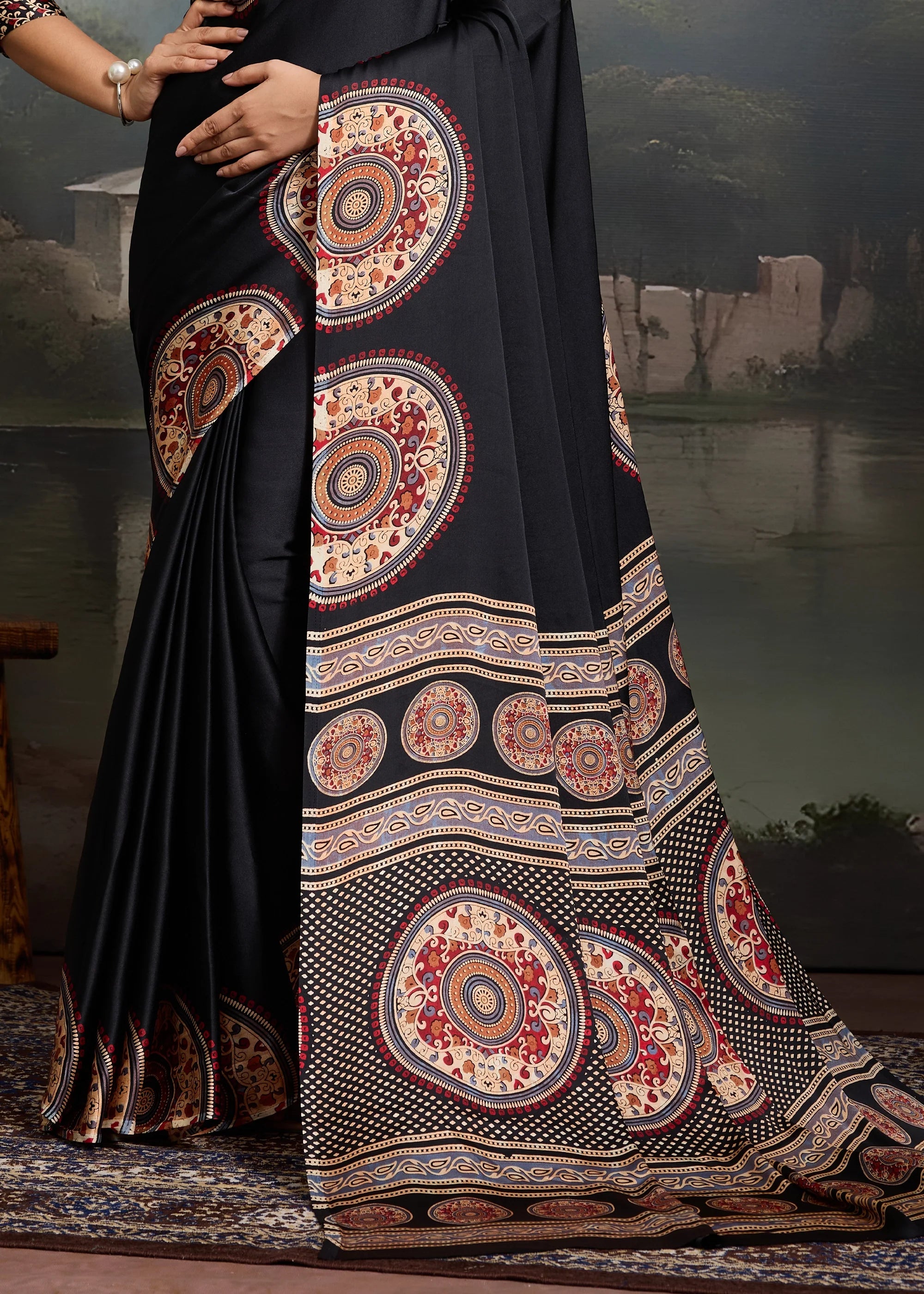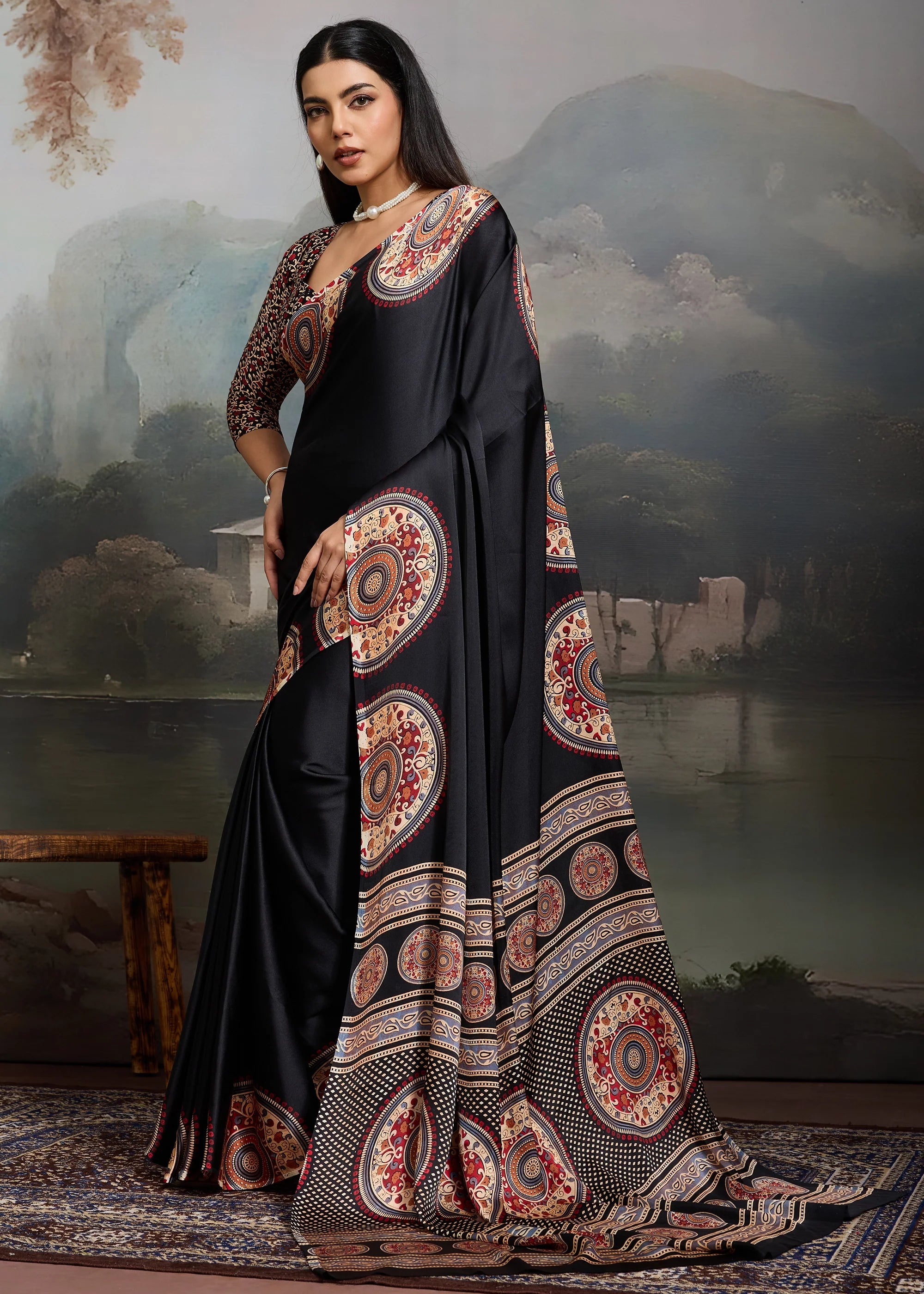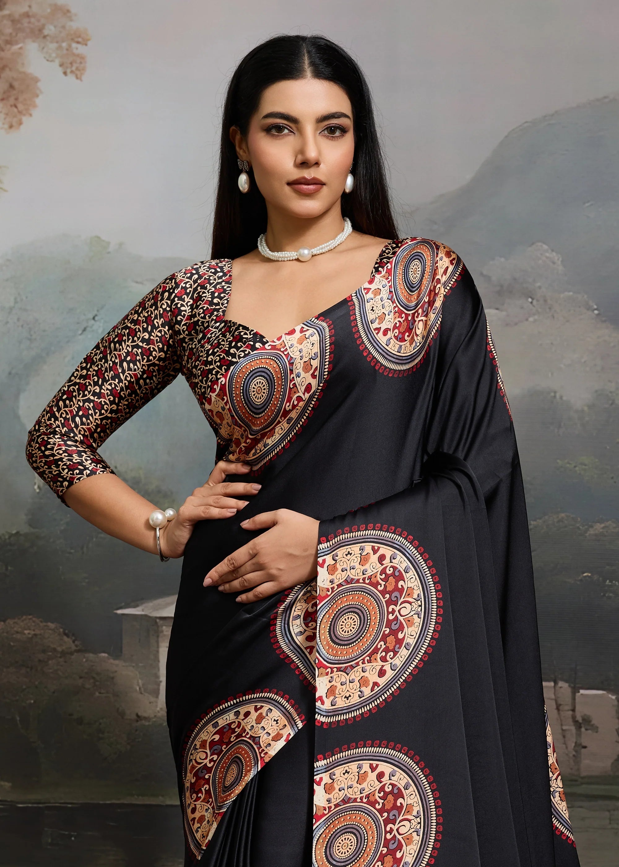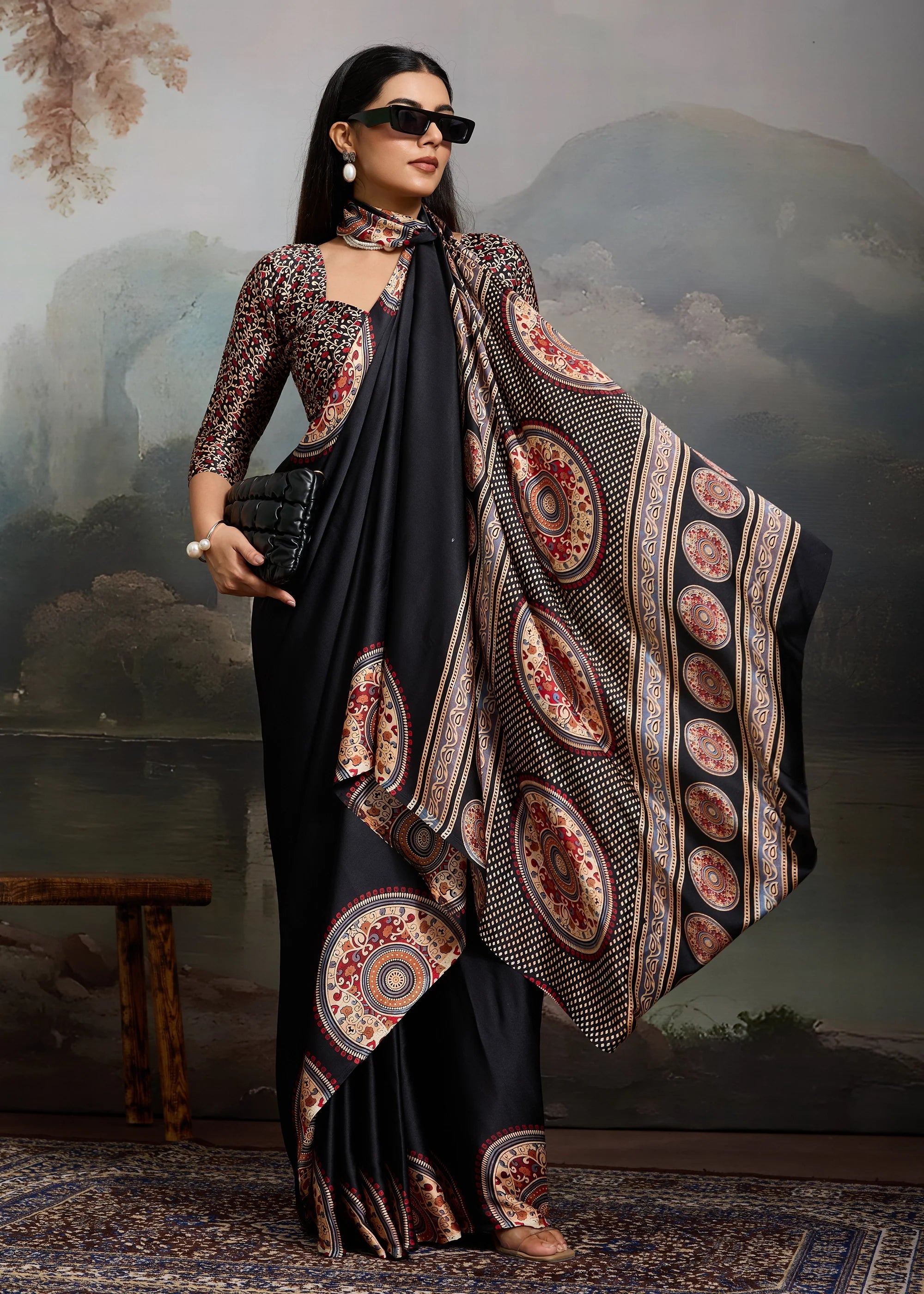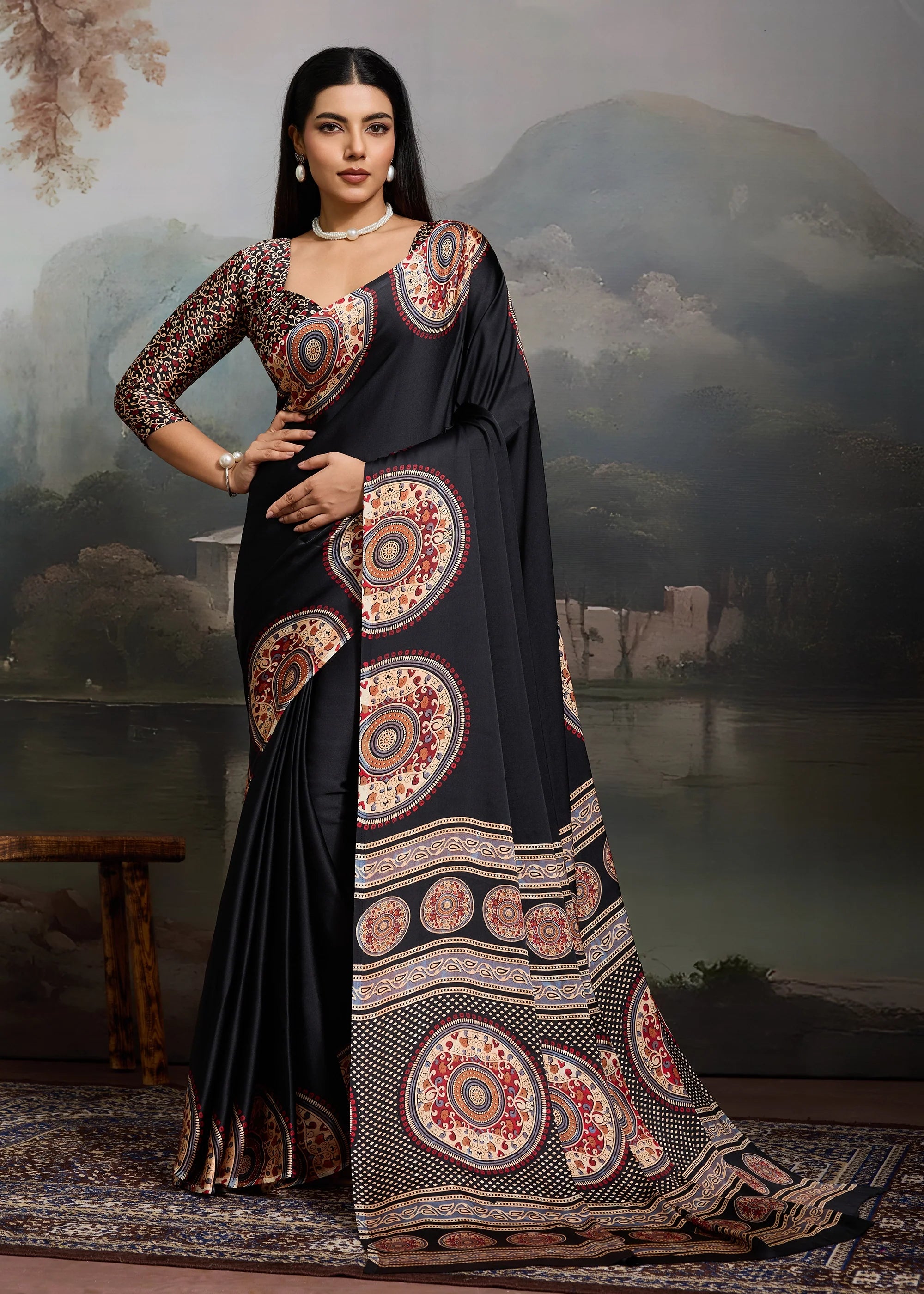 Drape yourself in the luxurious embrace of our Digital Printed Satin Silk Saree, a harmonious blend of traditional artistry and contemporary design. Crafted from the finest satin silk, this saree offers an unparalleled soft touch and a beautiful, flowing drape that accentuates every silhouette.