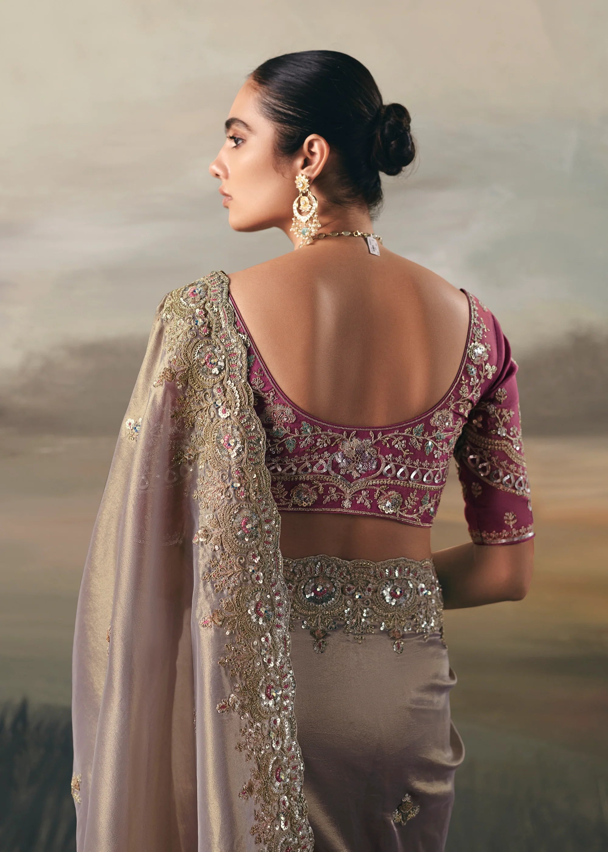 Experience unmatched opulence in this Tissue Zari Saree. Featuring detailed Resham embroidery, floral motifs, and a rich medley of pearls, sequins, Cut-Dana, and hand-finished stonework, it’s a statement of luxury.