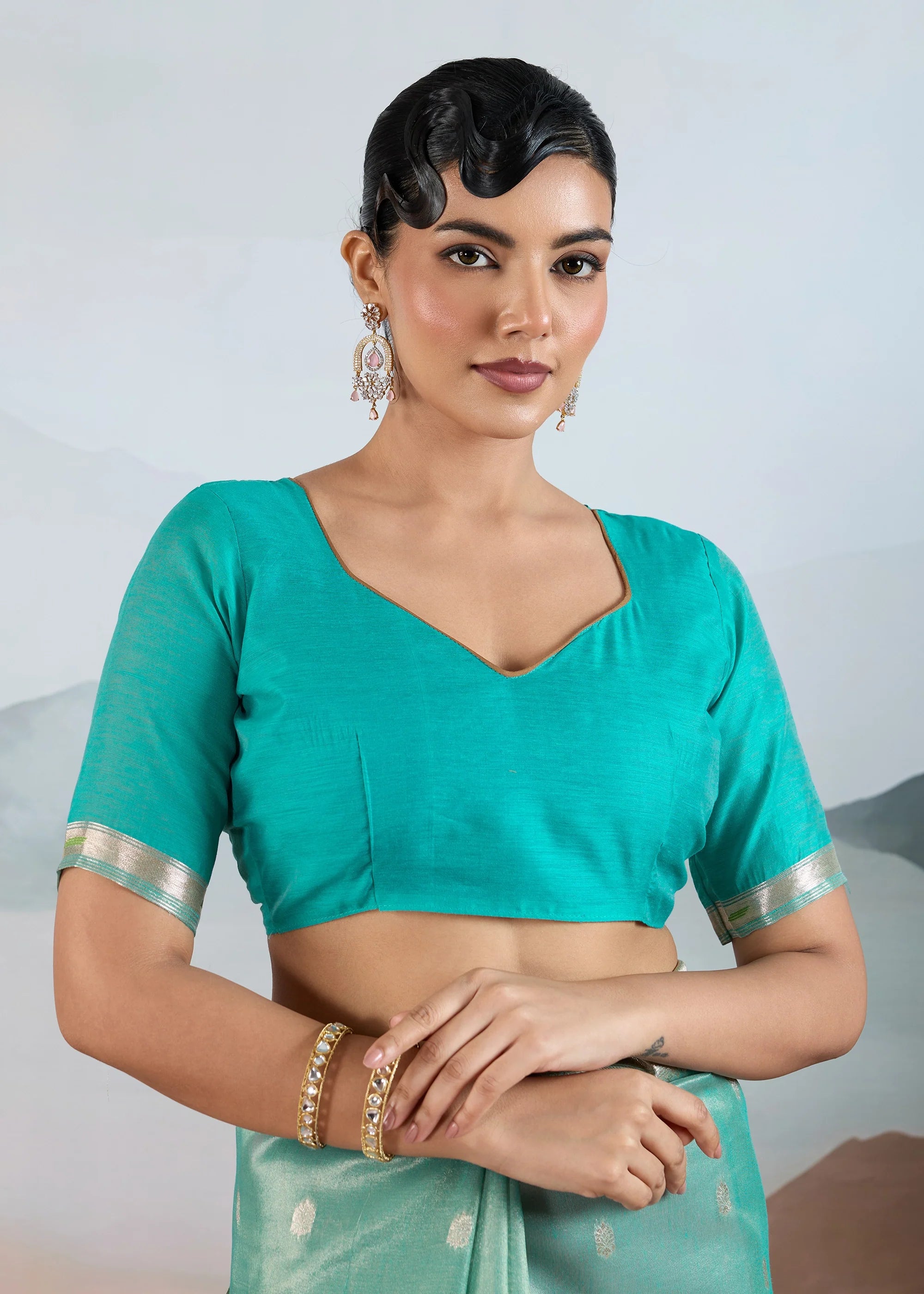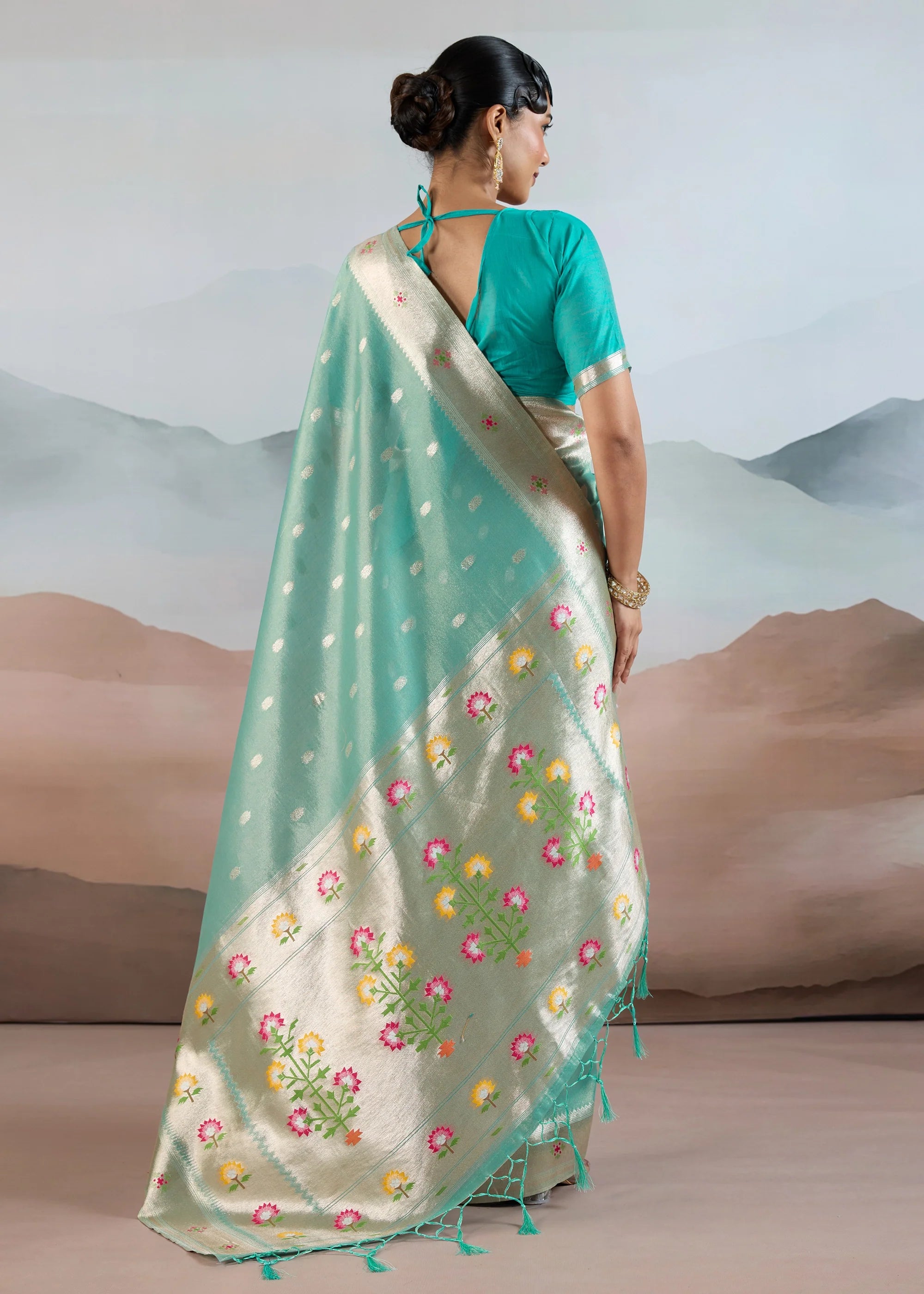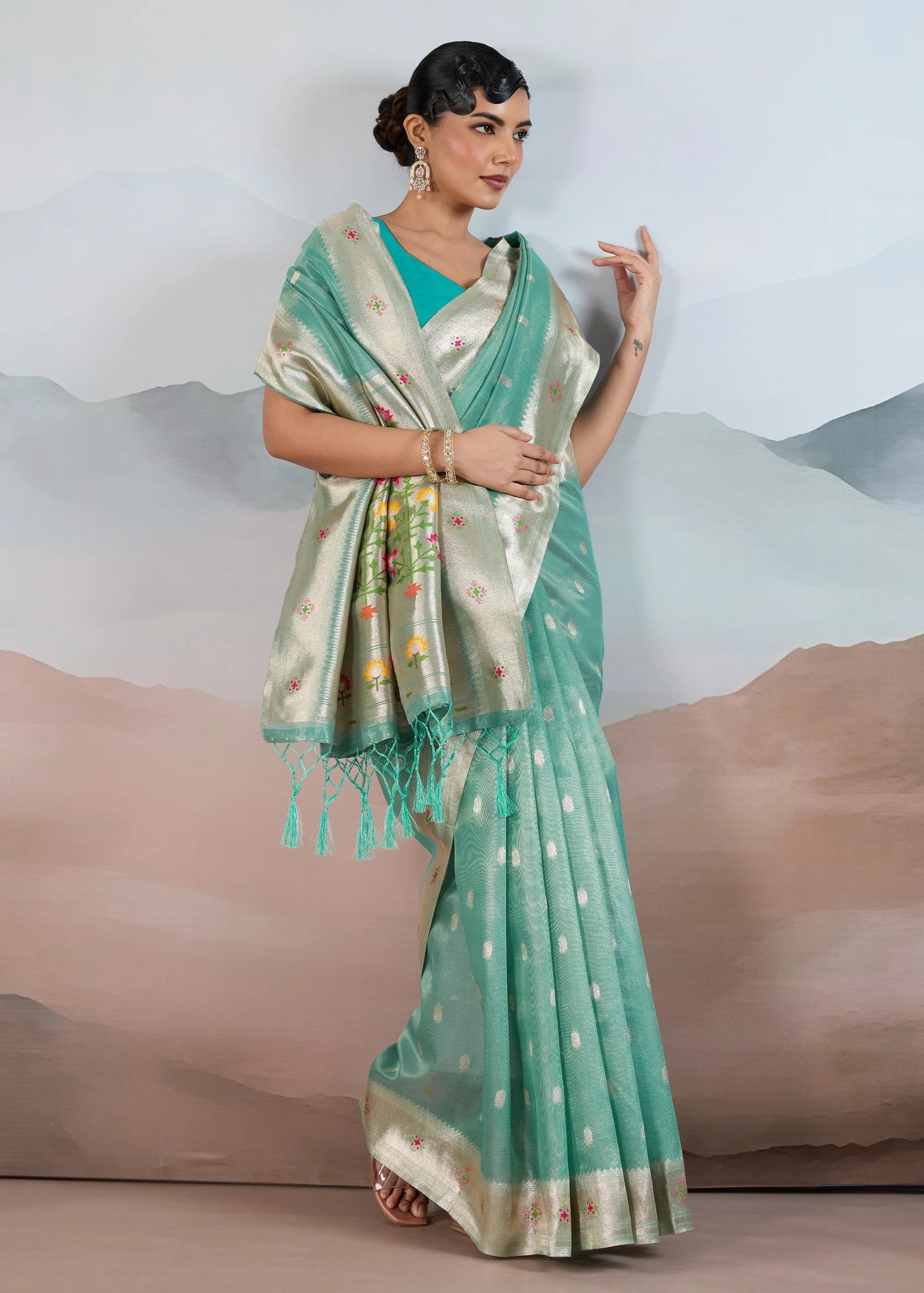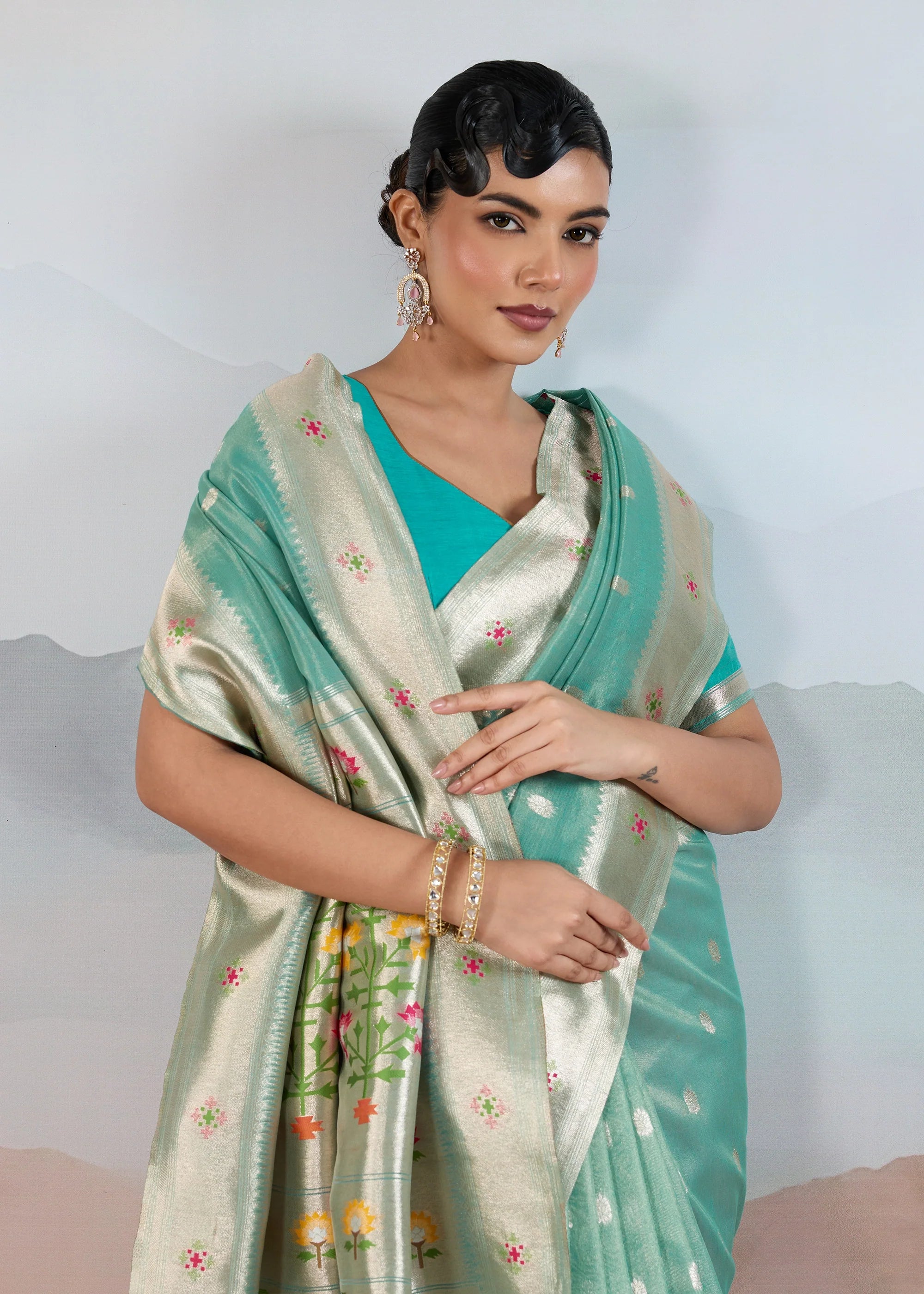 Ocean Green Woven Banarasi Tissue Silk Saree