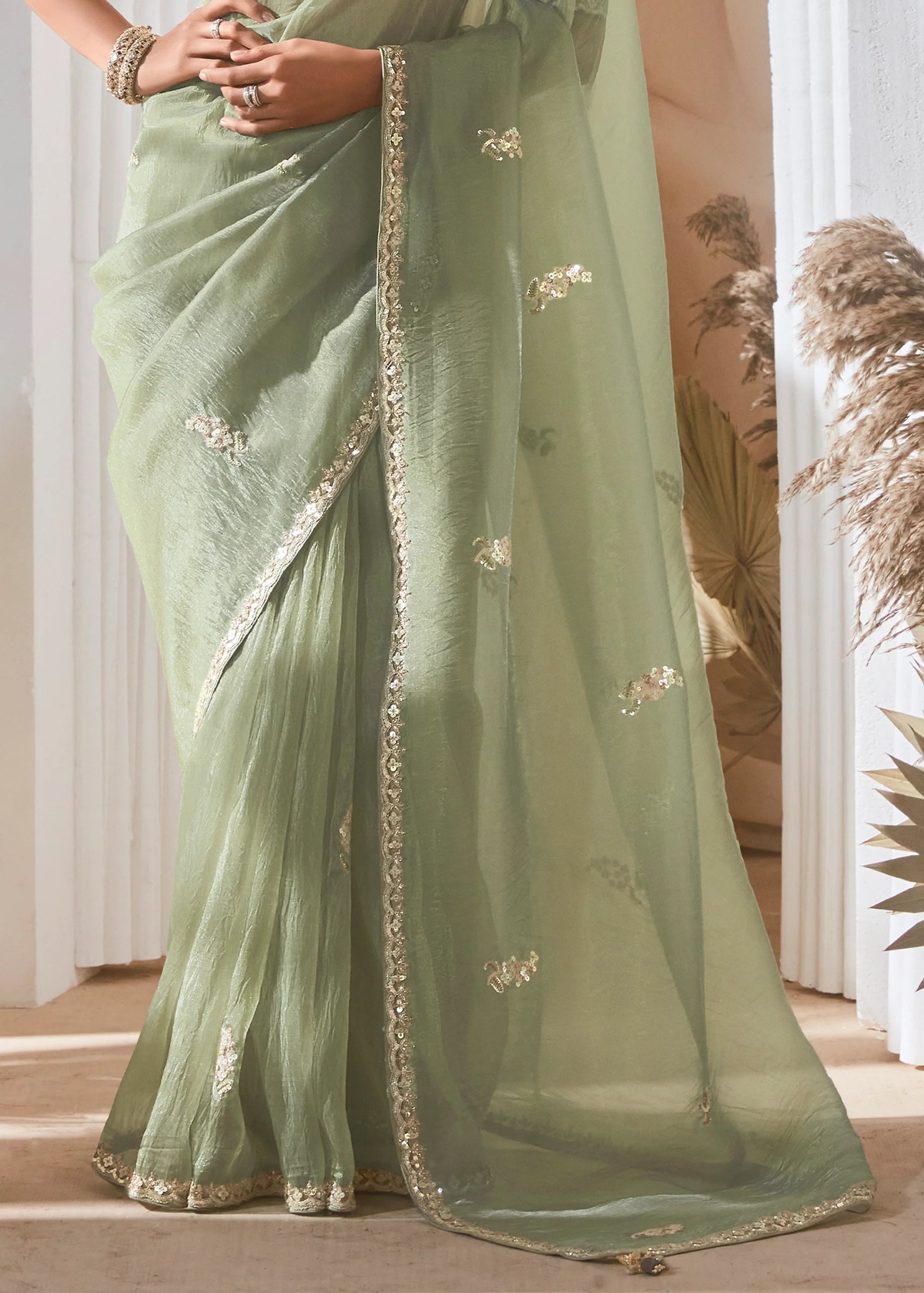 Folding: Change the folds of your saree periodically to prevent creases from becoming permanent.