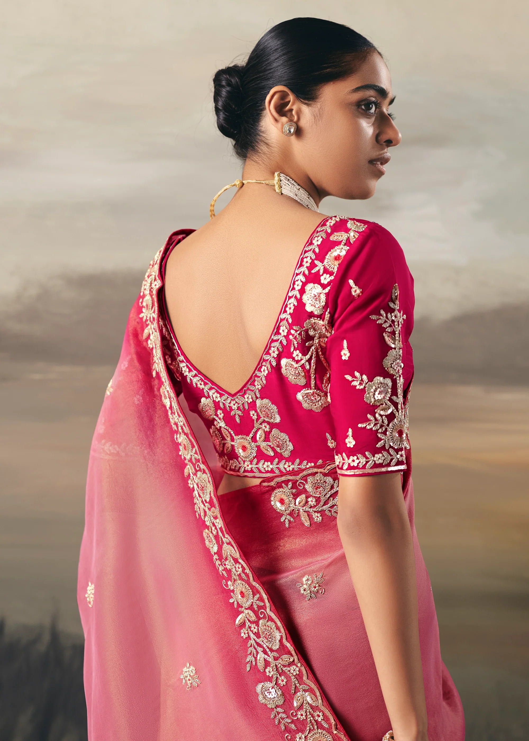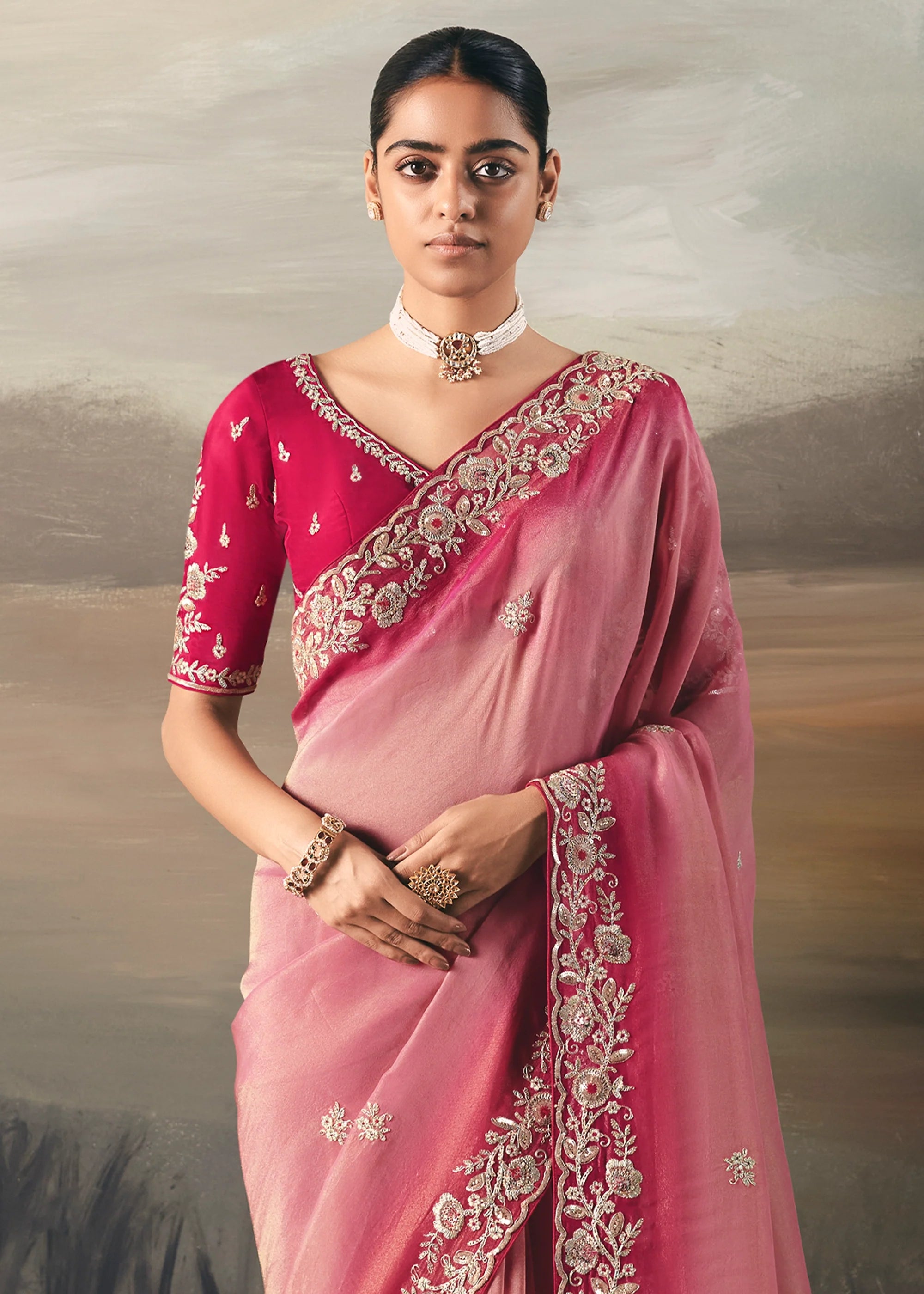 Shades Of Pink Tissue Embroidered Wedding Wear Saree