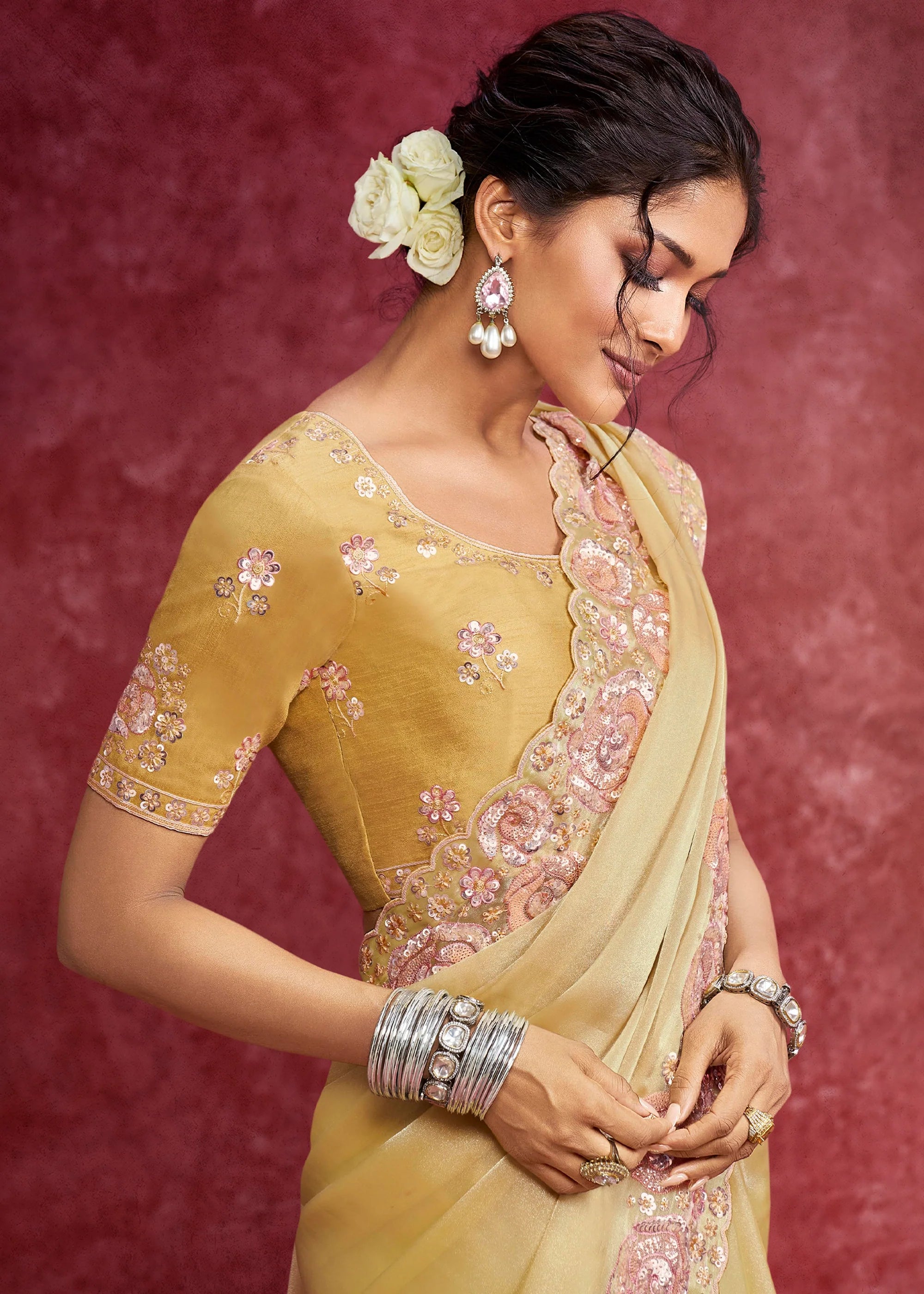 Folding: Change the folds of your saree periodically to prevent creases from becoming permanent.