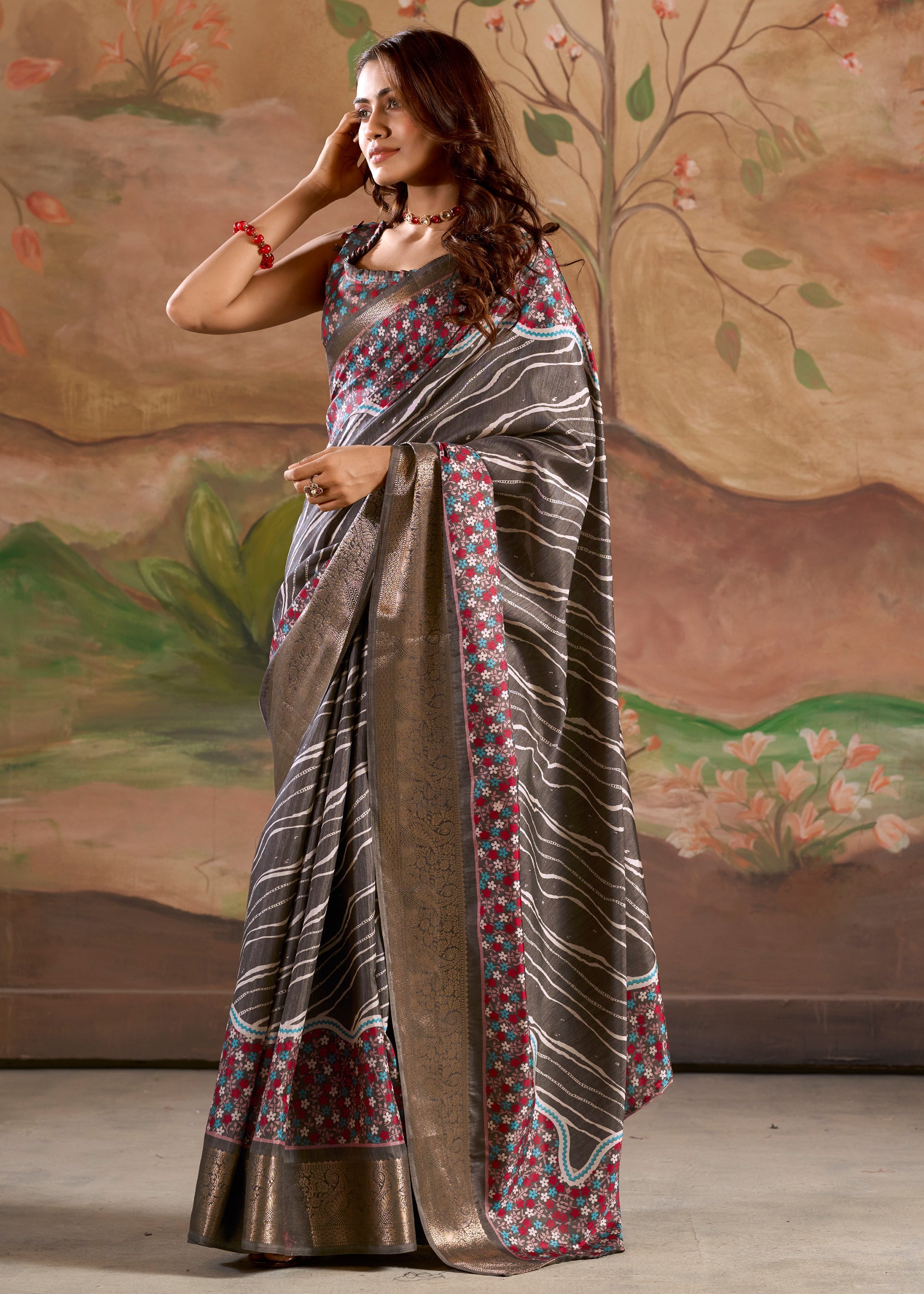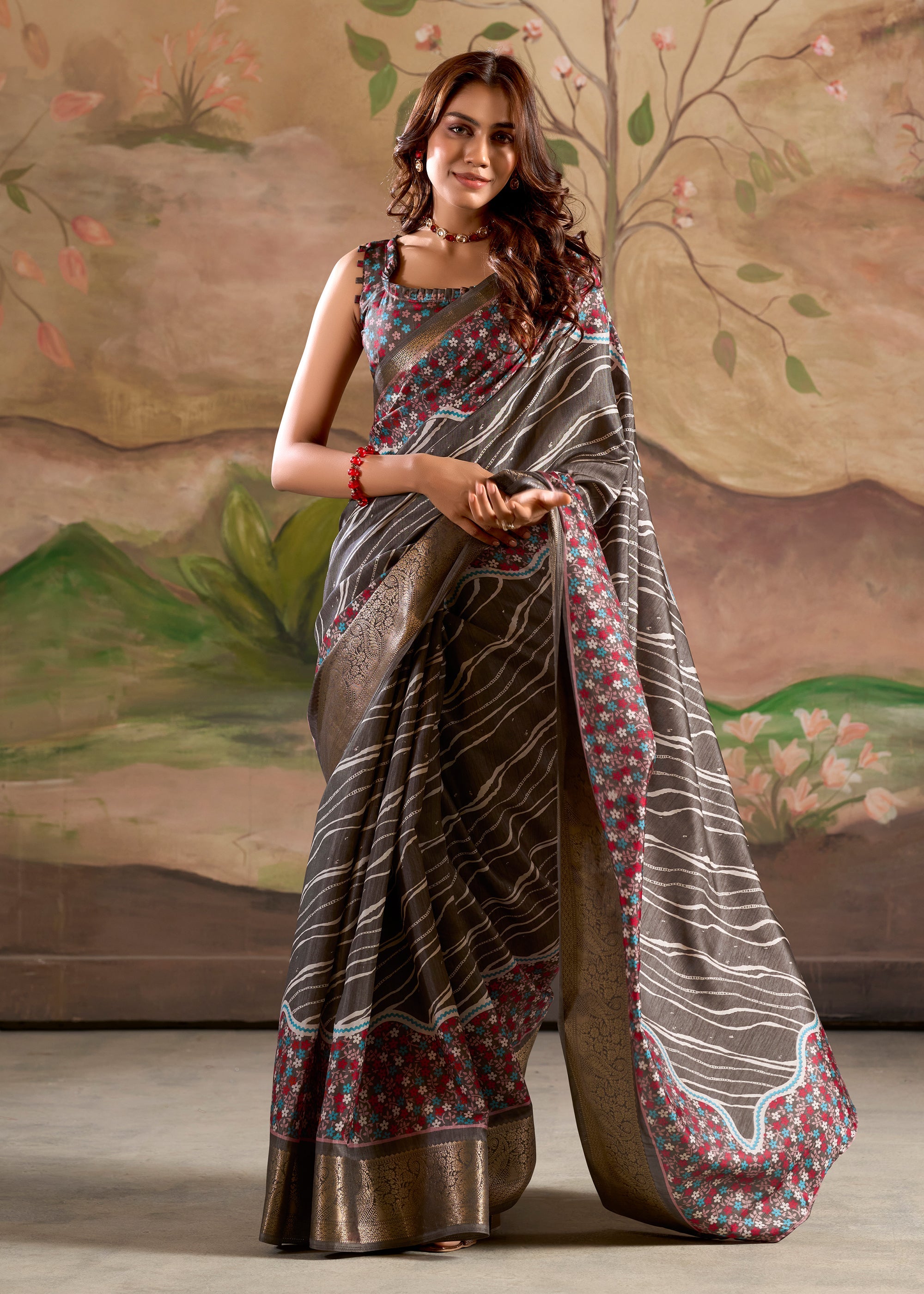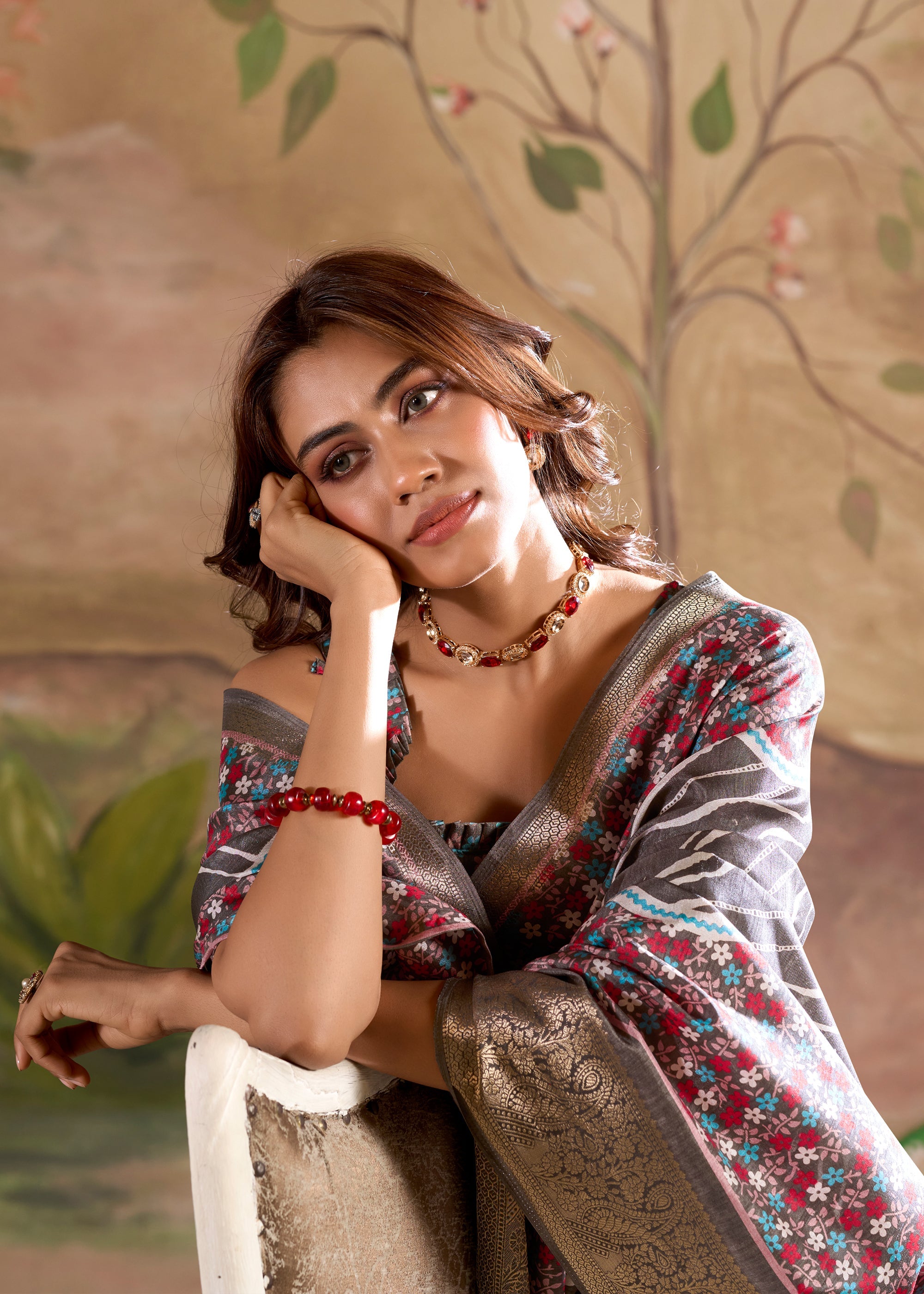 Embrace effortless style with this beautifully printed saree. The eye-catching print adds a touch of contemporary flair to a traditional silhouette. Crafted from soft silk , this saree drapes gracefully and ensures all-day comfort. Perfect forA  casual outings, festive gatherings, everyday wear, this printed saree is a versatile addition to any wardrobe.