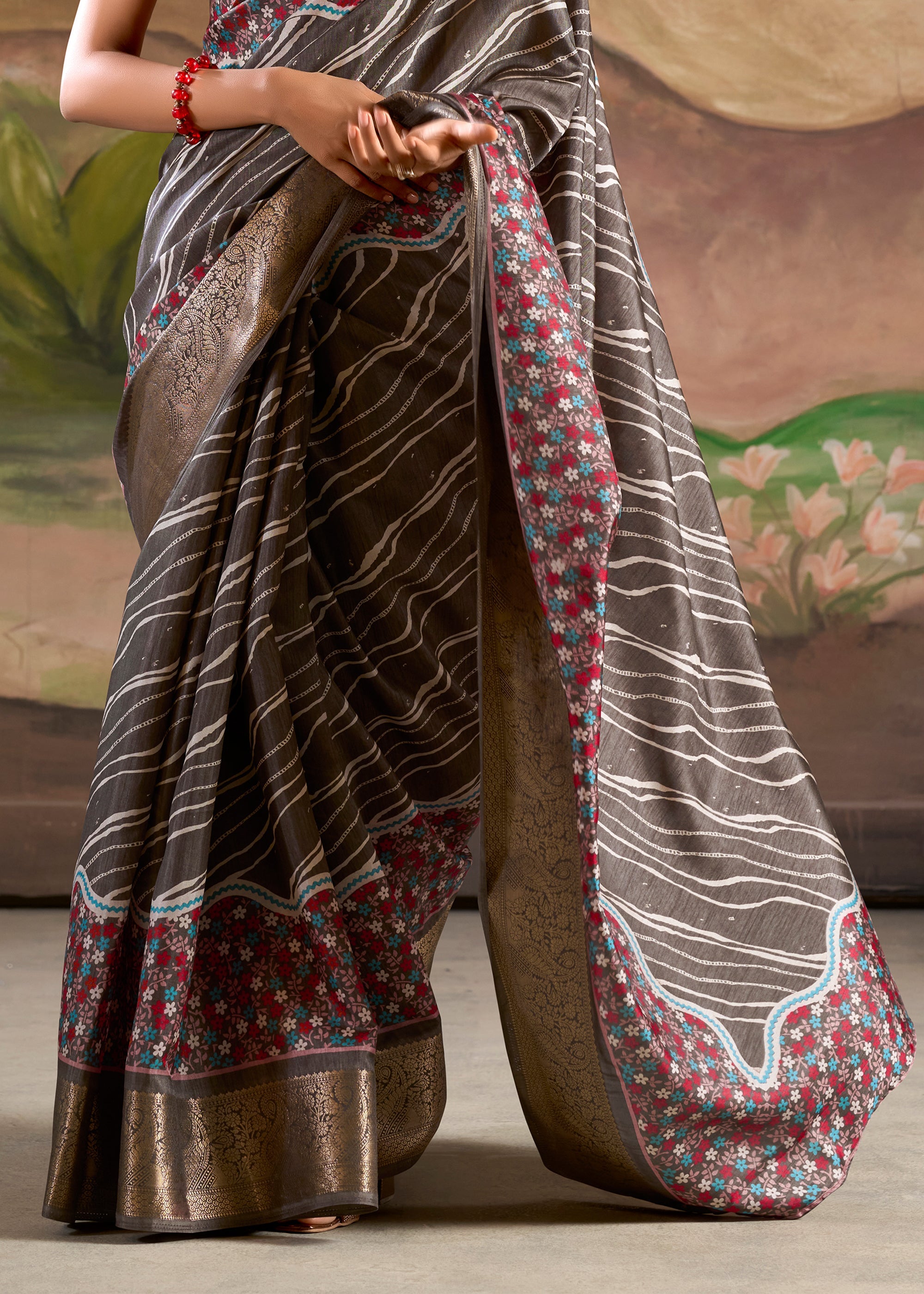 Embrace effortless style with this beautifully printed saree. The eye-catching print adds a touch of contemporary flair to a traditional...