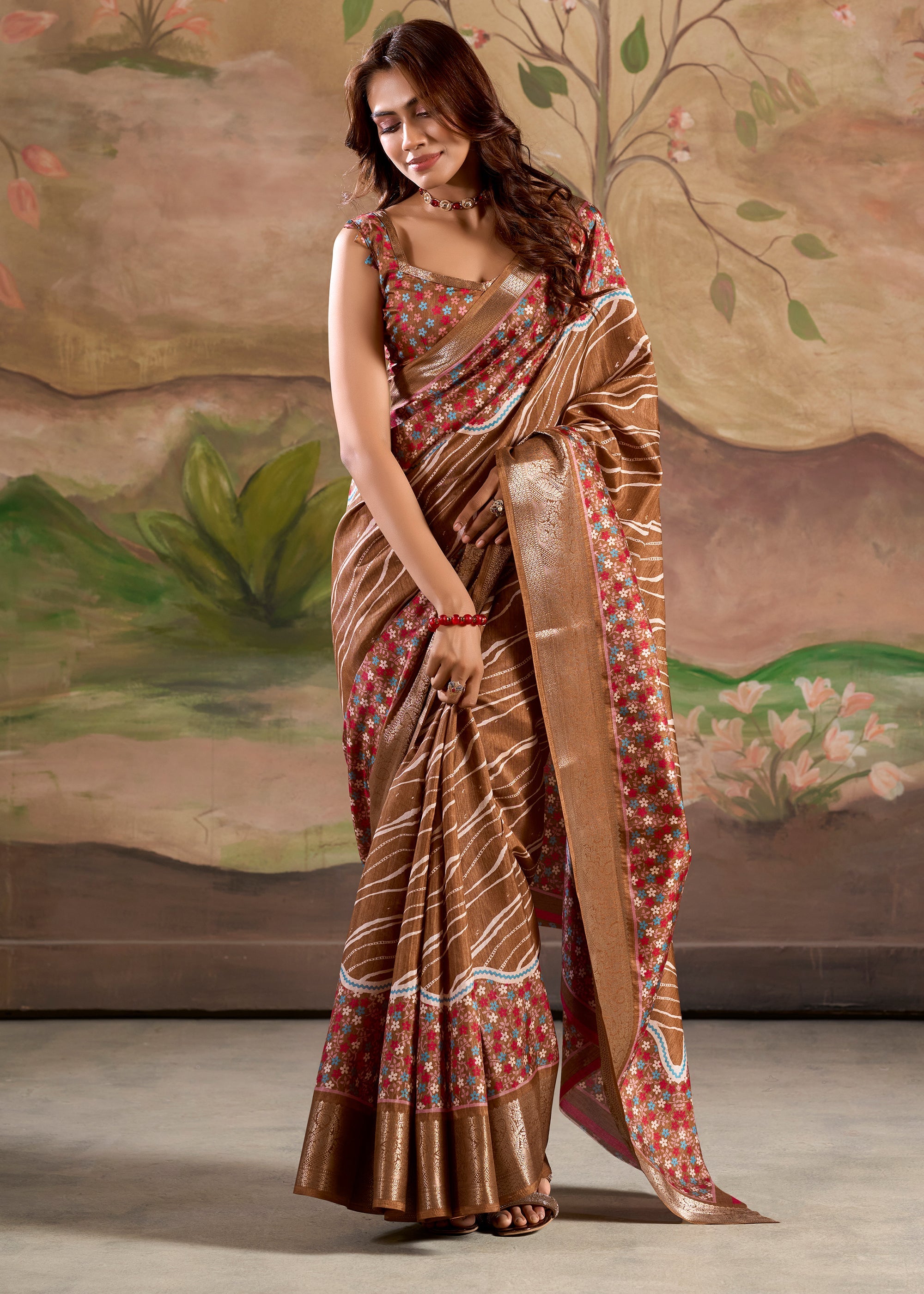 Embrace effortless style with this beautifully printed saree. The eye-catching print adds a touch of contemporary flair to a traditional silhouette. Crafted from soft silk , this saree drapes gracefully and ensures all-day comfort. Perfect forA  casual outings, festive gatherings, everyday wear, this printed saree is a versatile addition to any wardrobe.