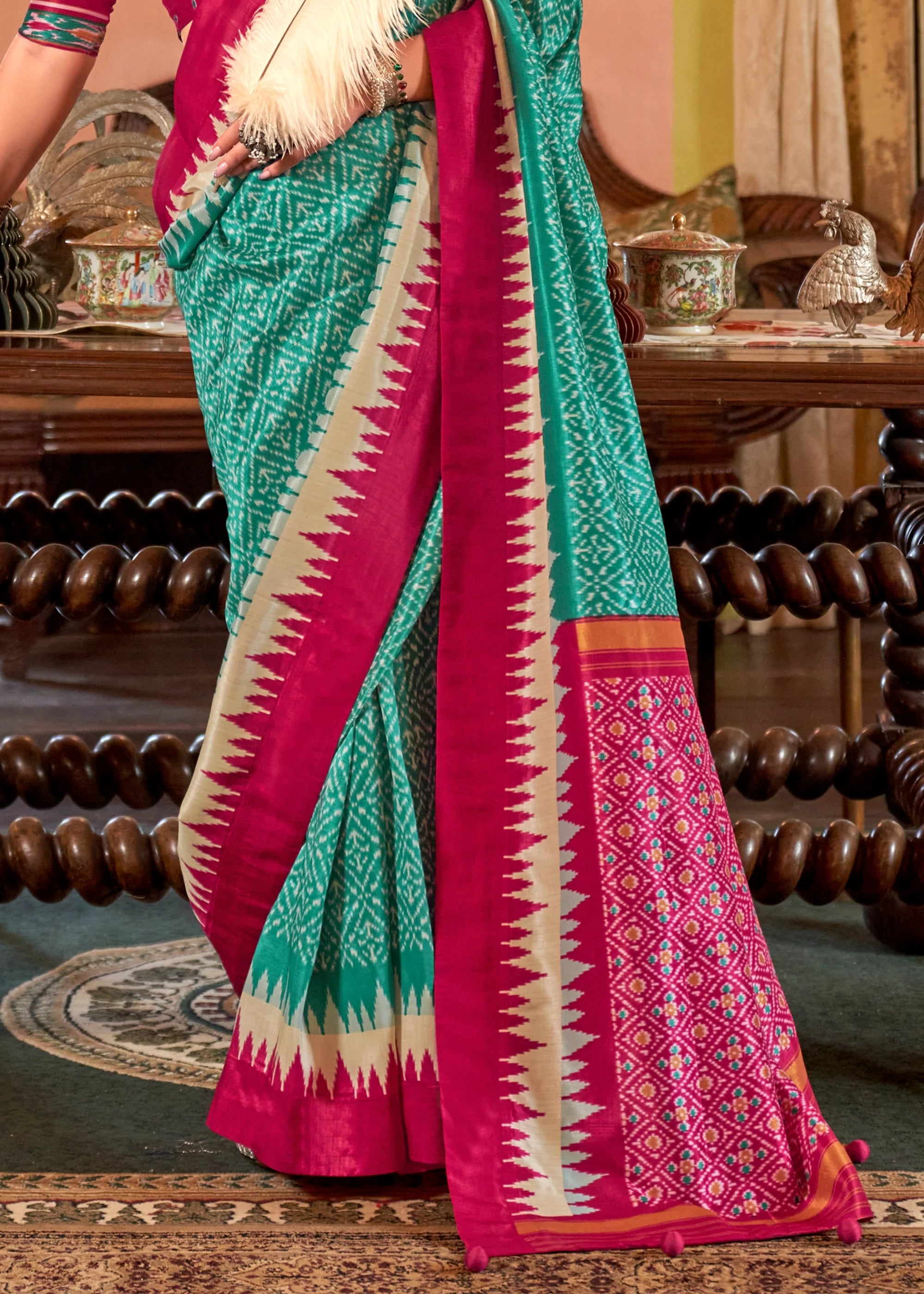 Experience the artistry of Patola in a modern form. This saree beautifully replicates the intricate double ikat weaving technique, resulting in mesmerizing patterns and a luxurious feel. The vibrant colors and elegant drape make it a truly special piece.