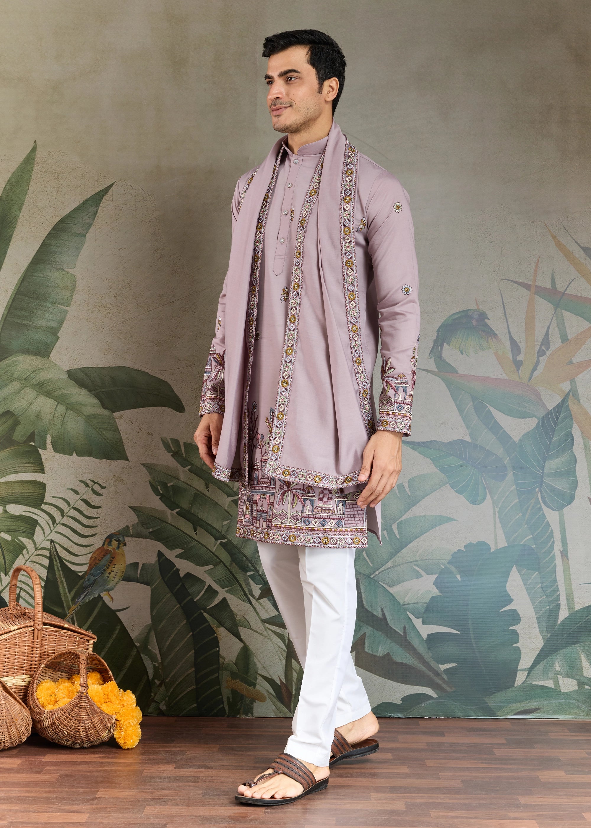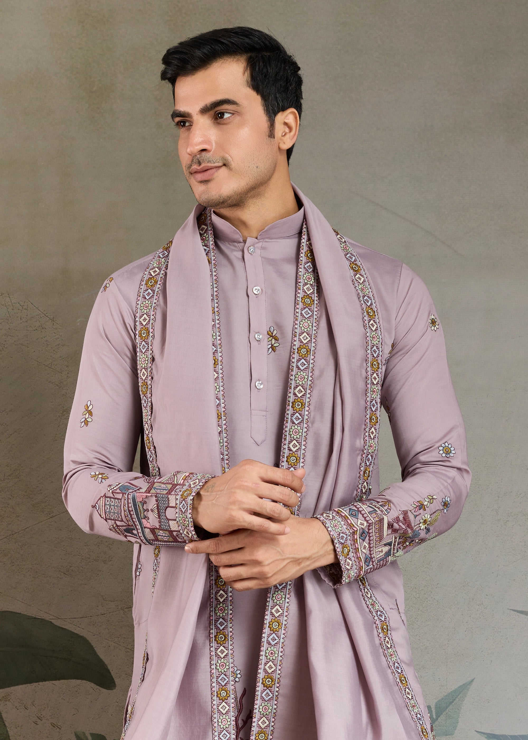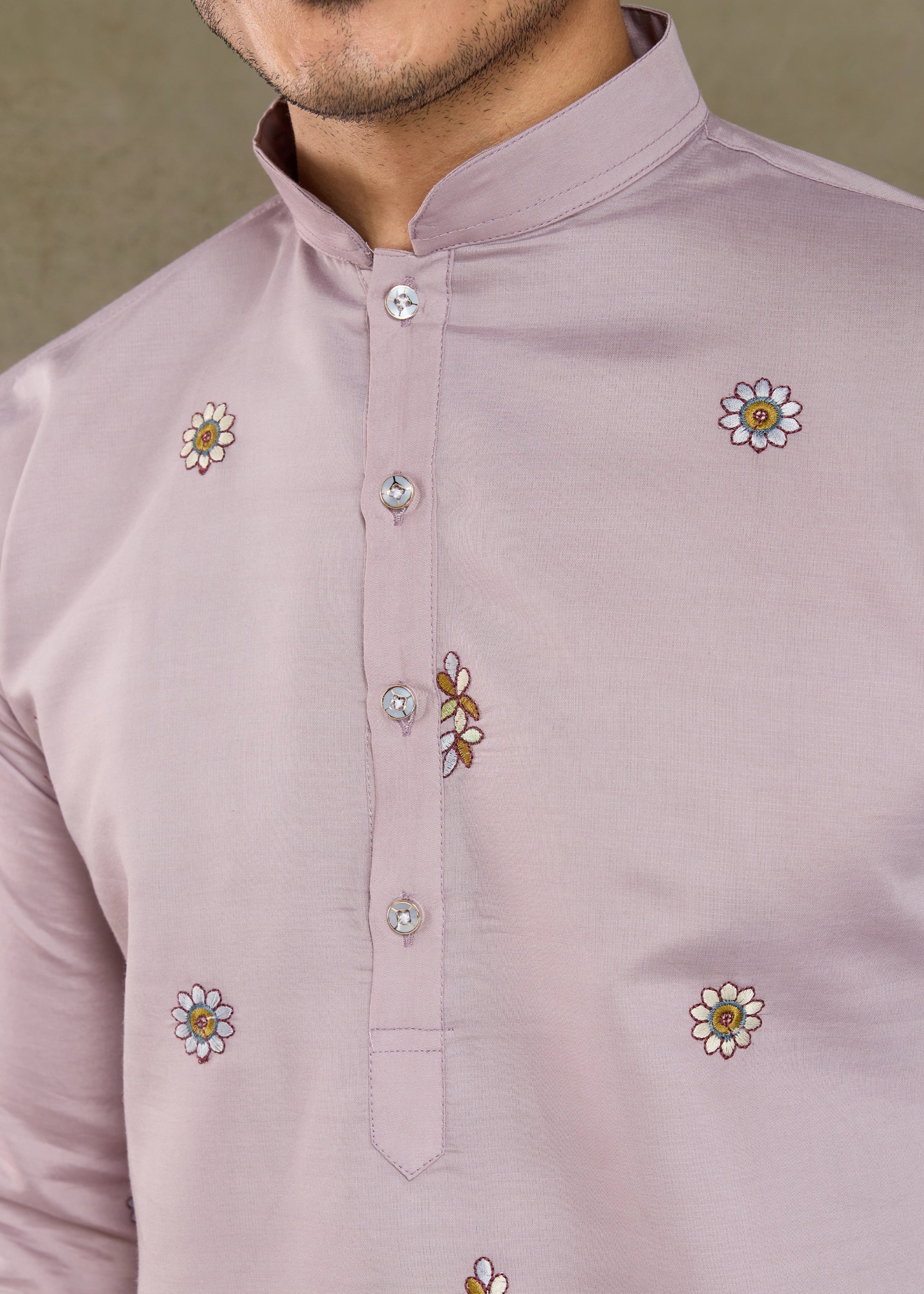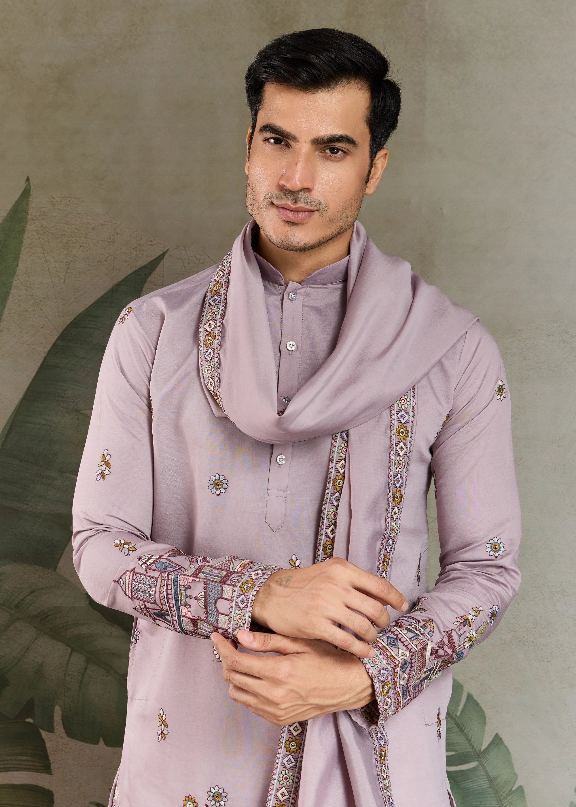 Lilac Purple Sequence Embroidered Cotton Kurta With Dupatta
