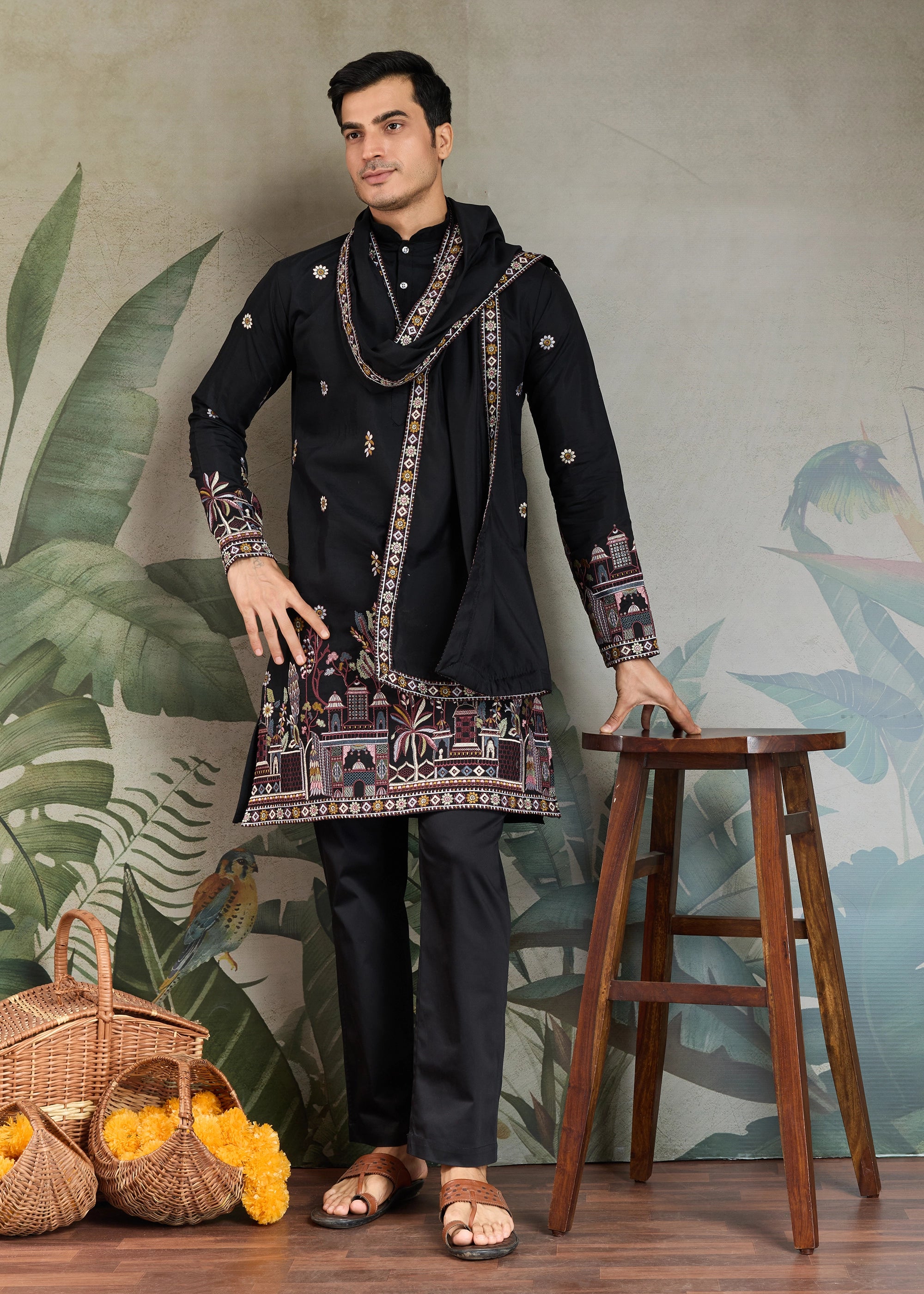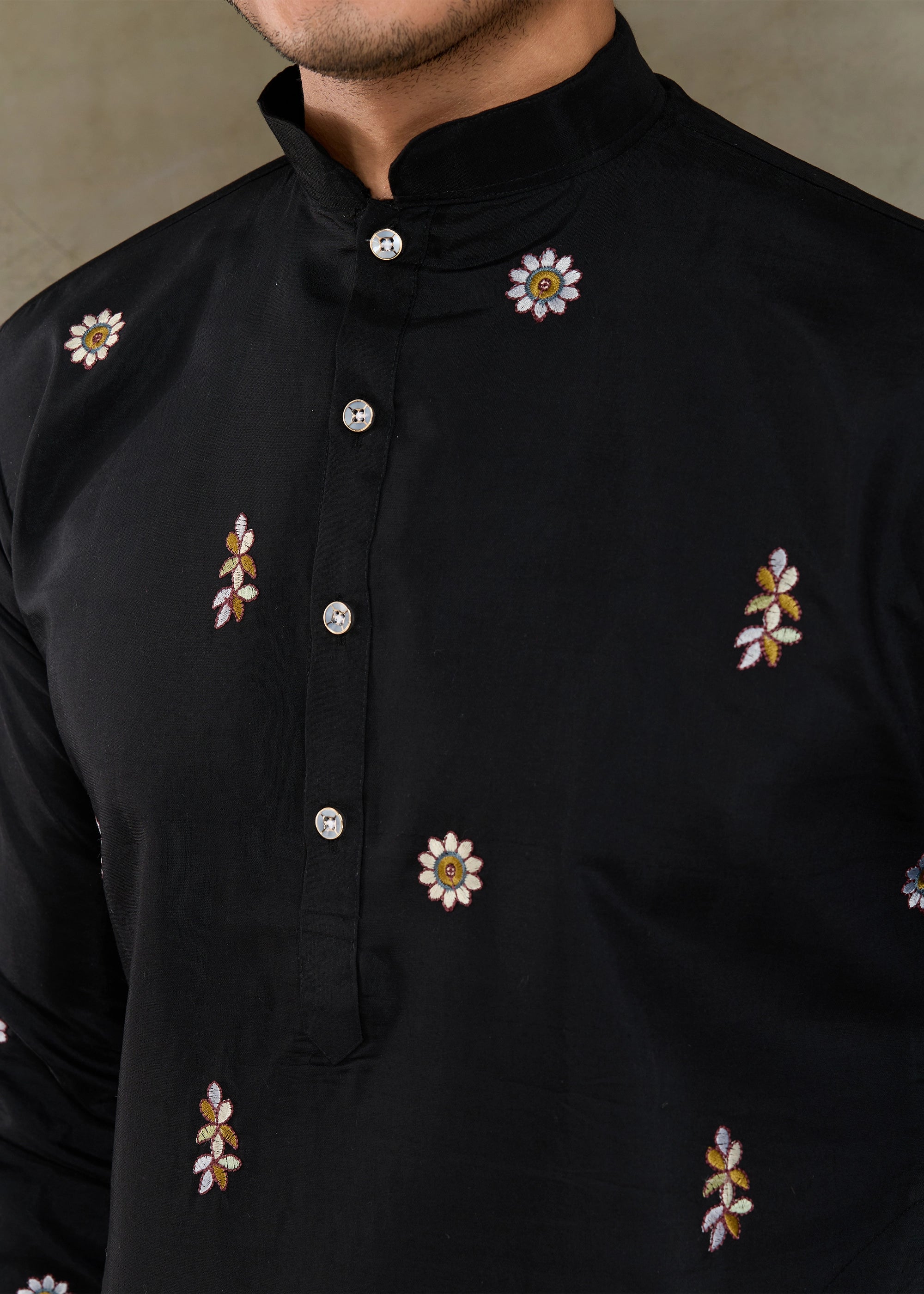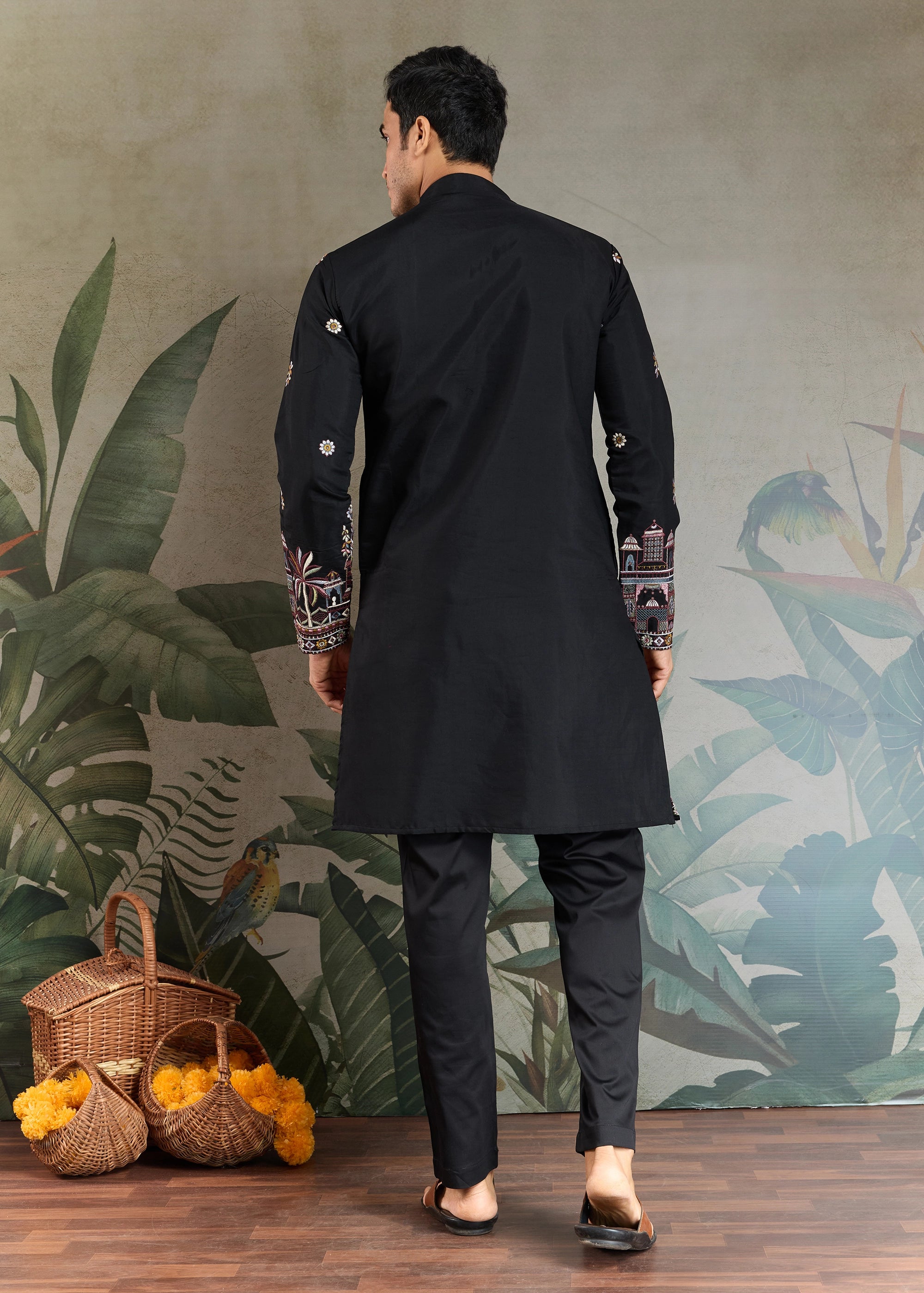 Phantom Black Sequence Embroidered Cotton Kurta With Dupatta