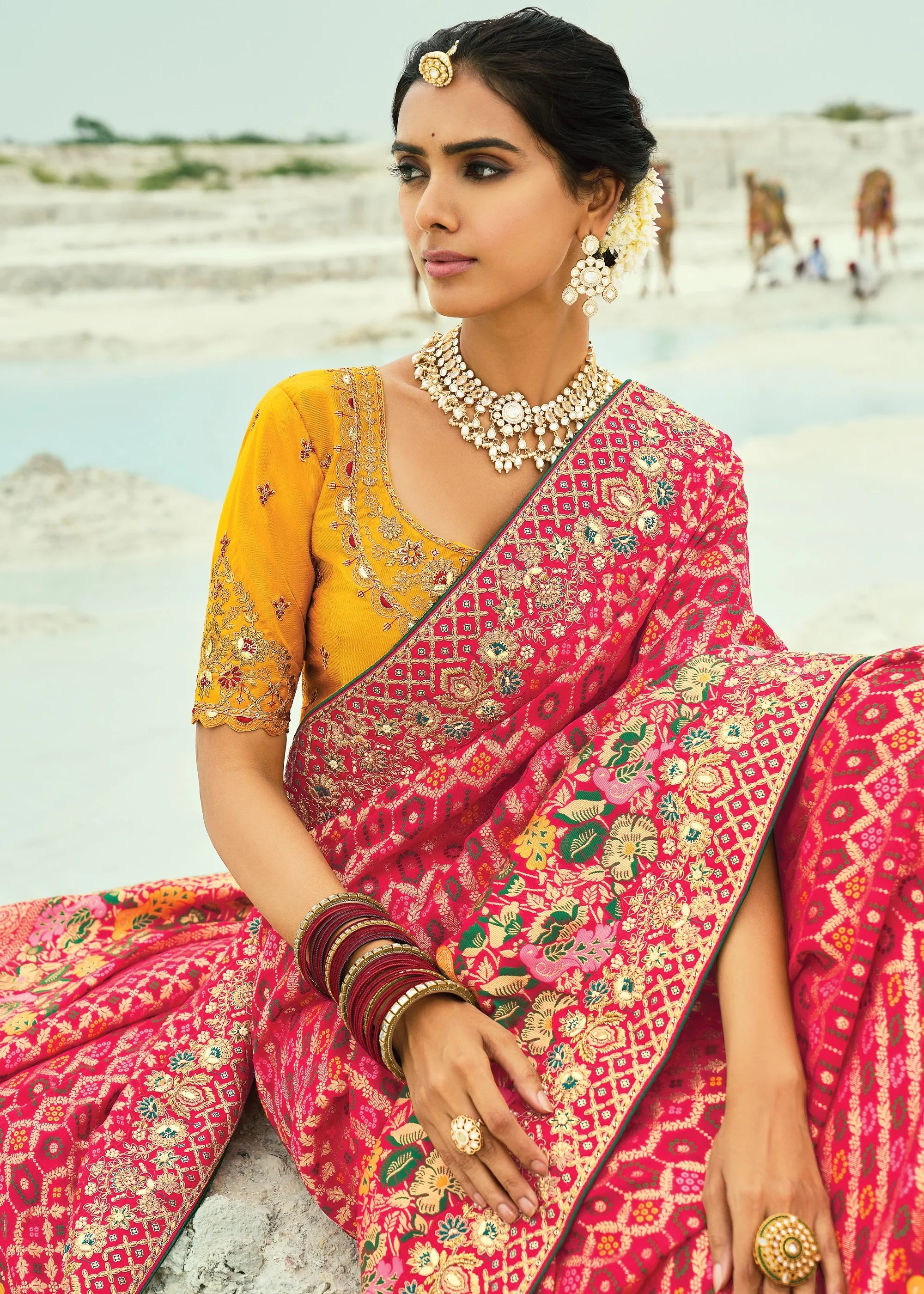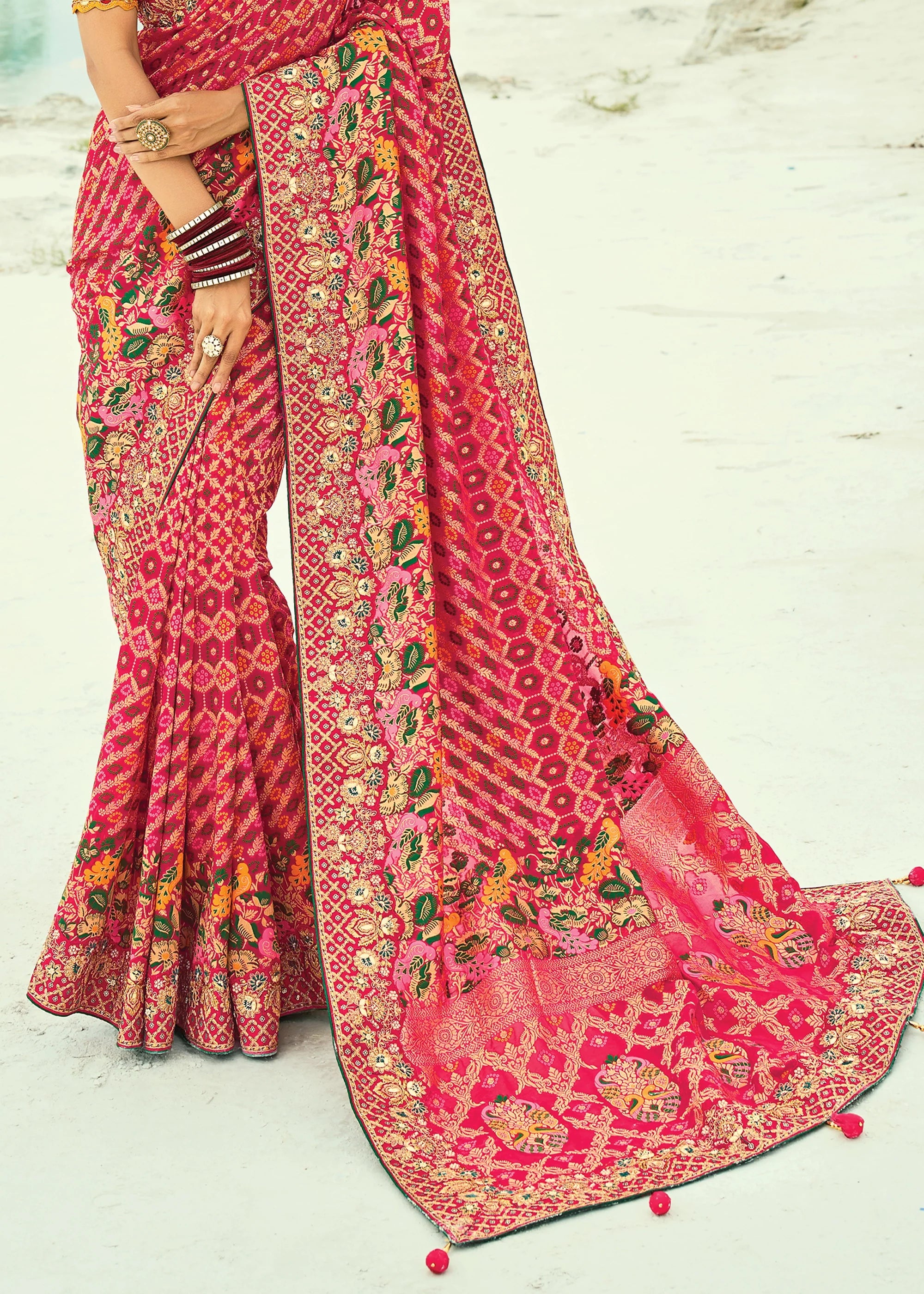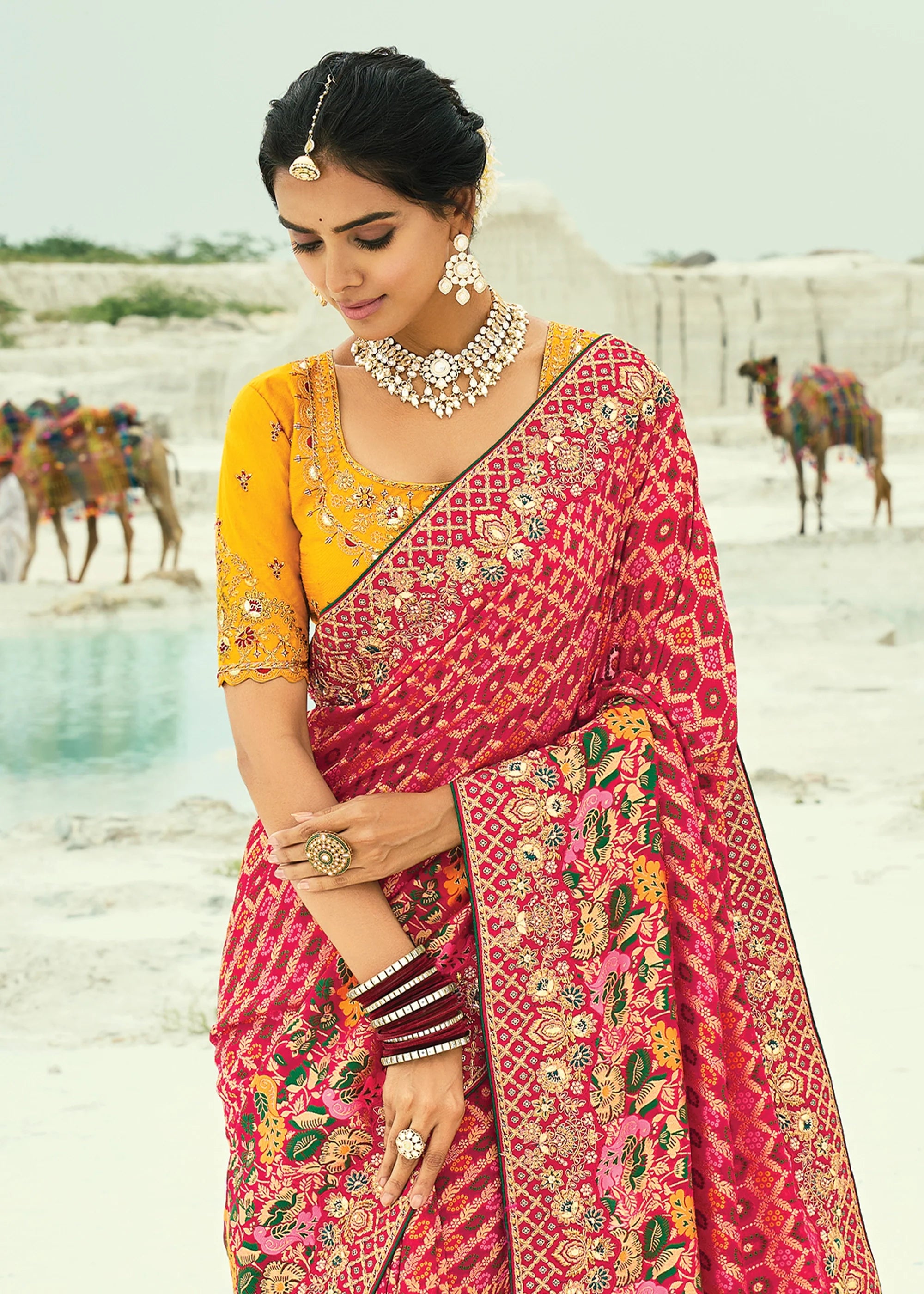 Rani Pink Woven Georgette Bandhej Designer Saree