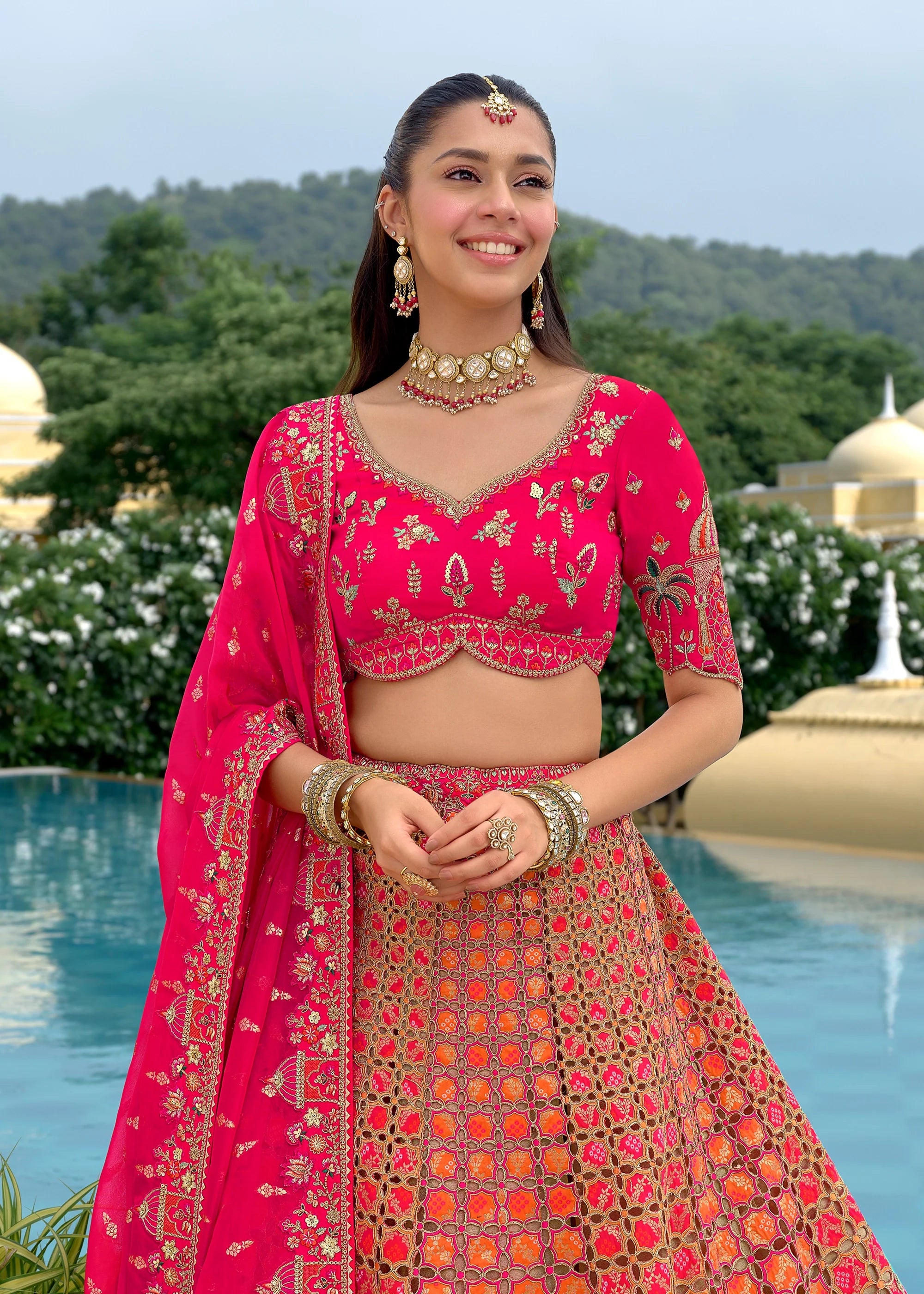 • Lehenga Fabric: Fancy Silk with heavy Designer Work (Cut Work Border, Stone, Sequence, Mirror, and Embroidery).