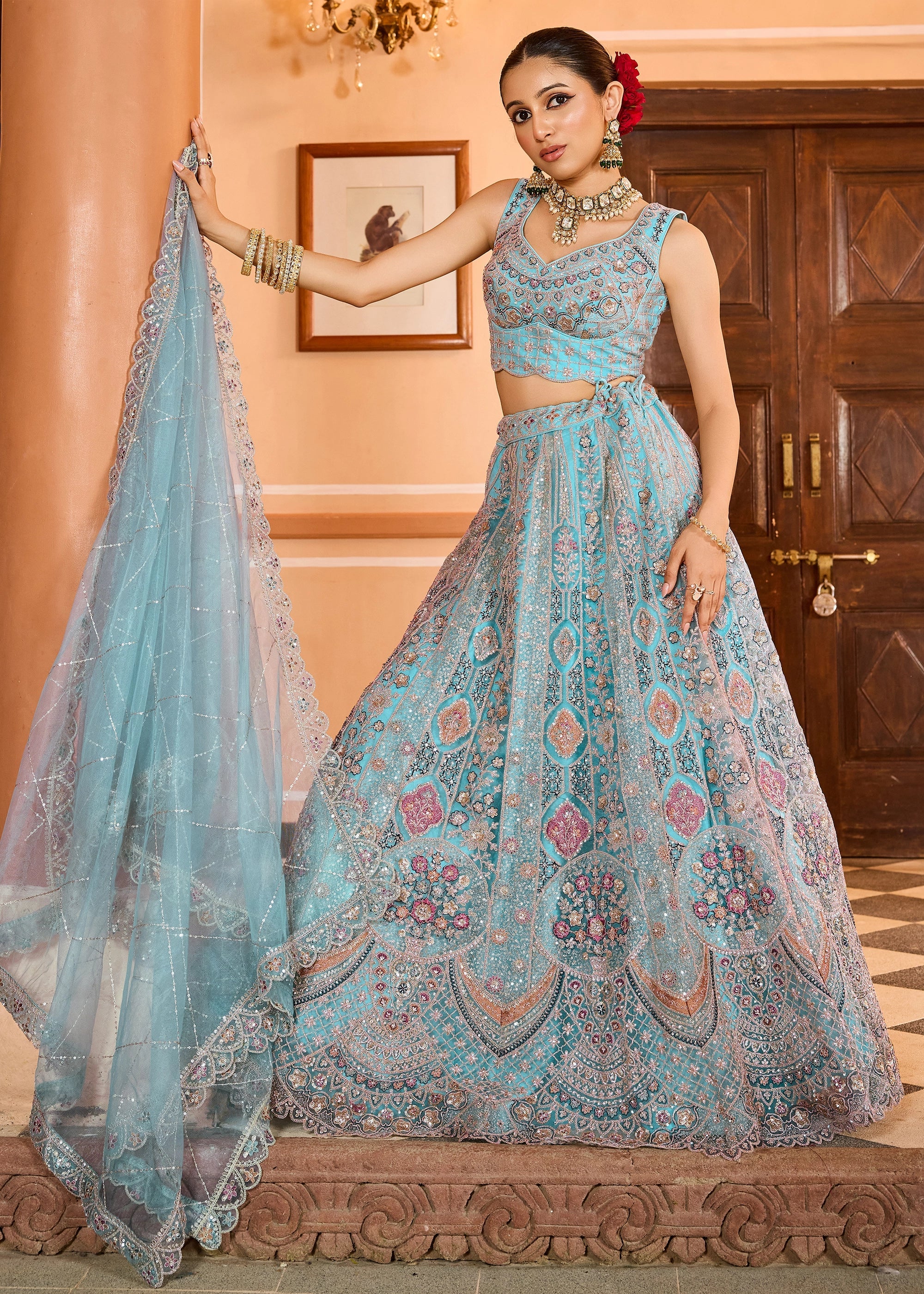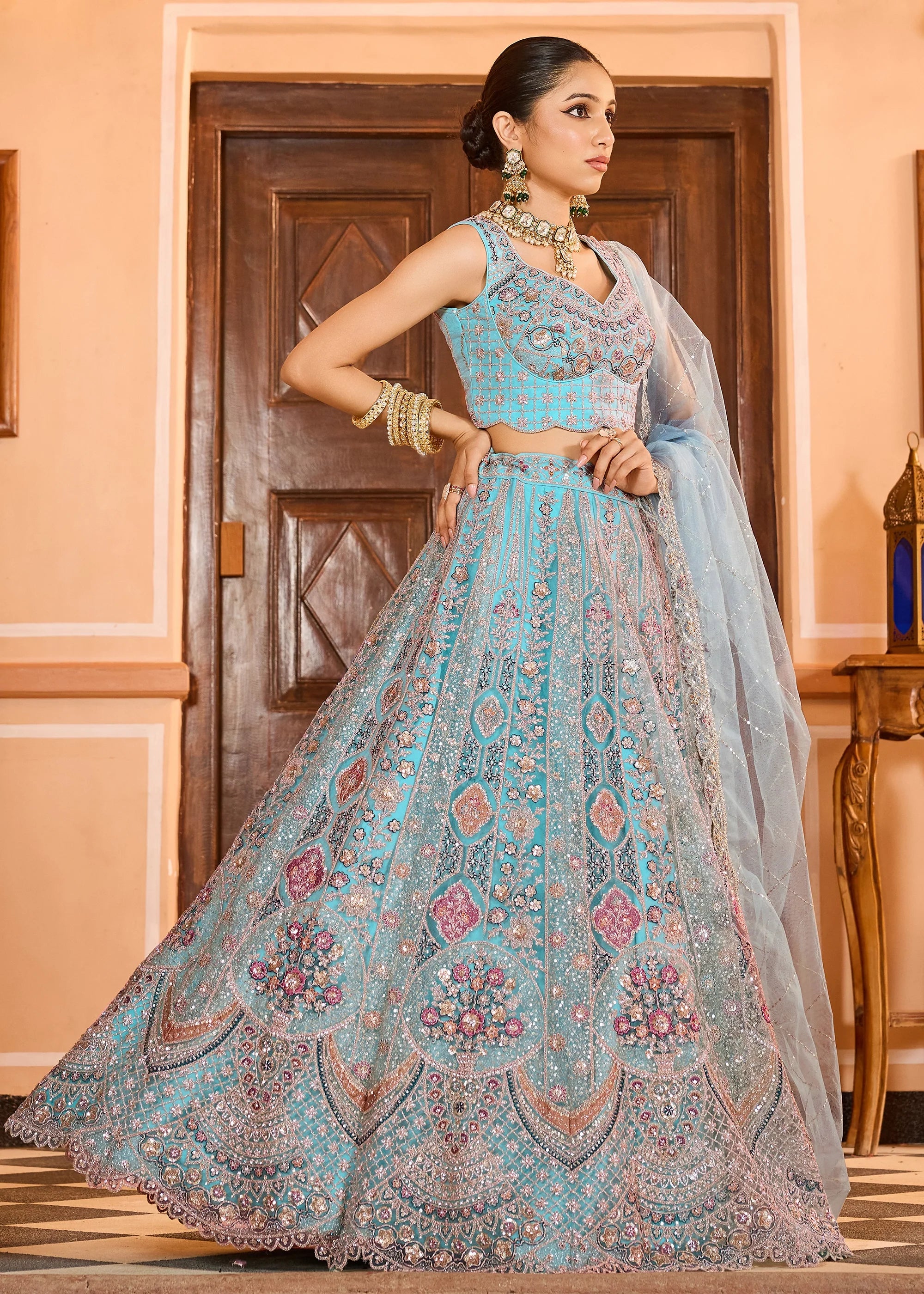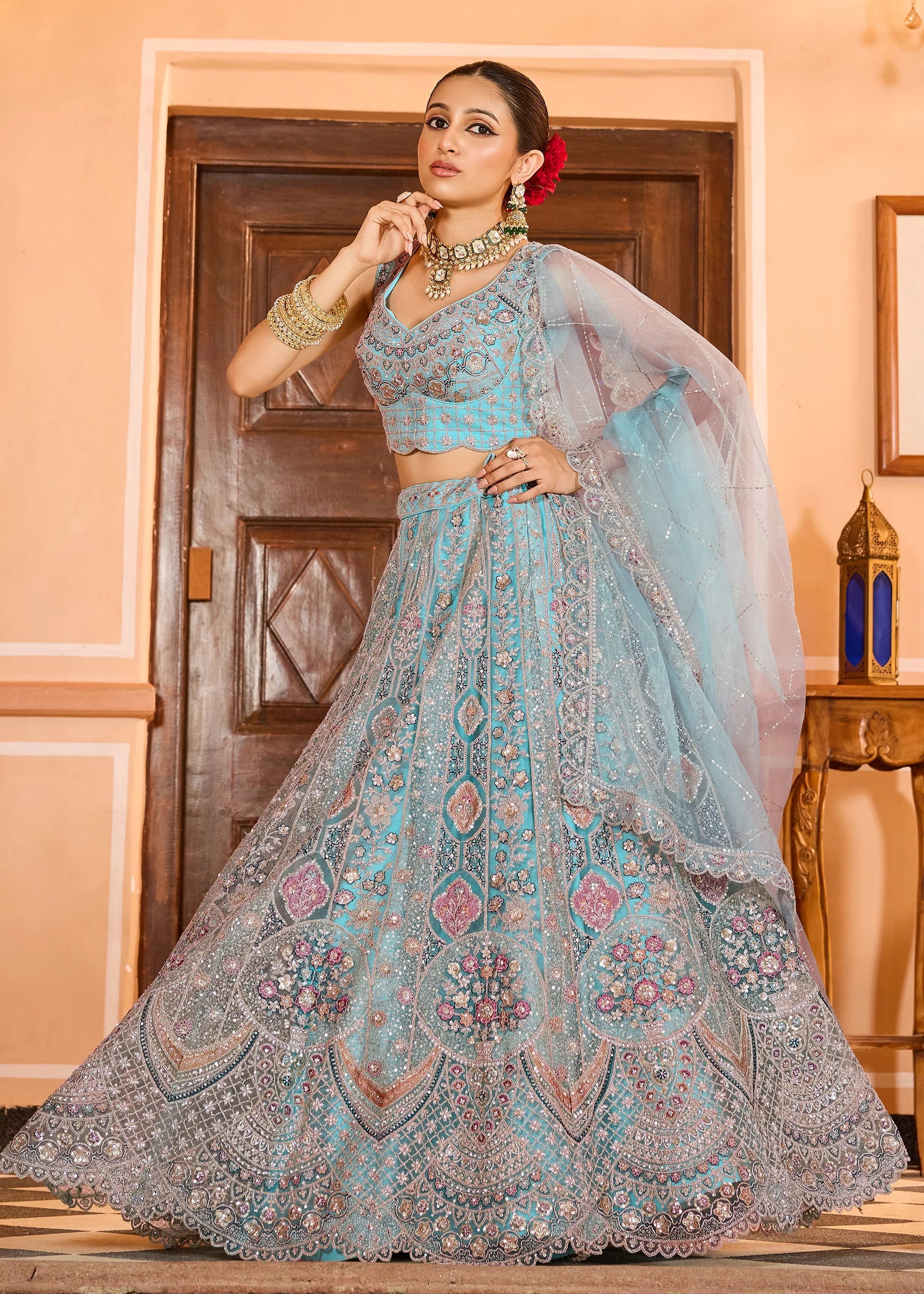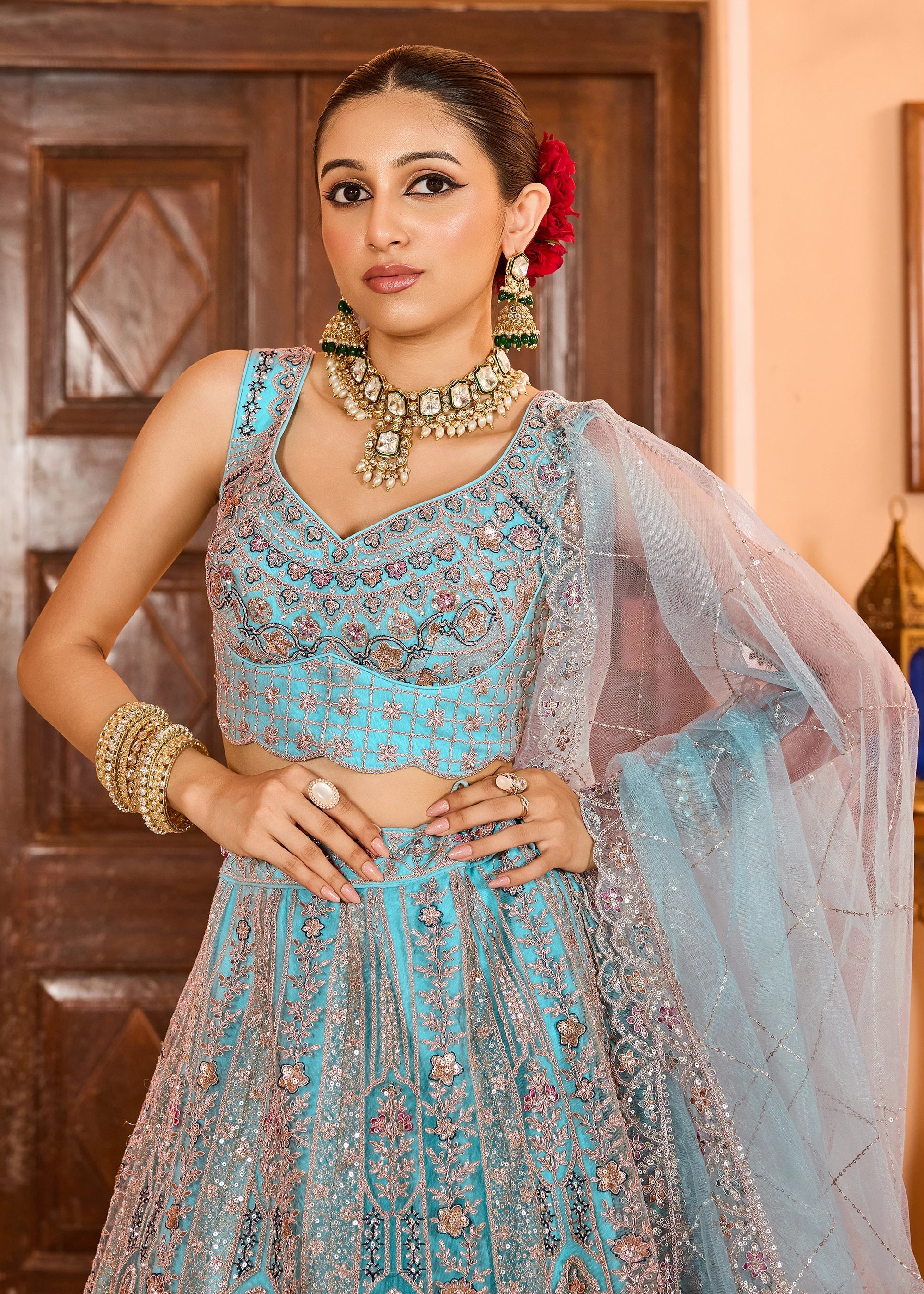 this exquisitely embroidered lehenga captures timeless elegance and traditional charm, perfect for any grand celebration. Lehenga Details : Fabric: Net Lehenga...