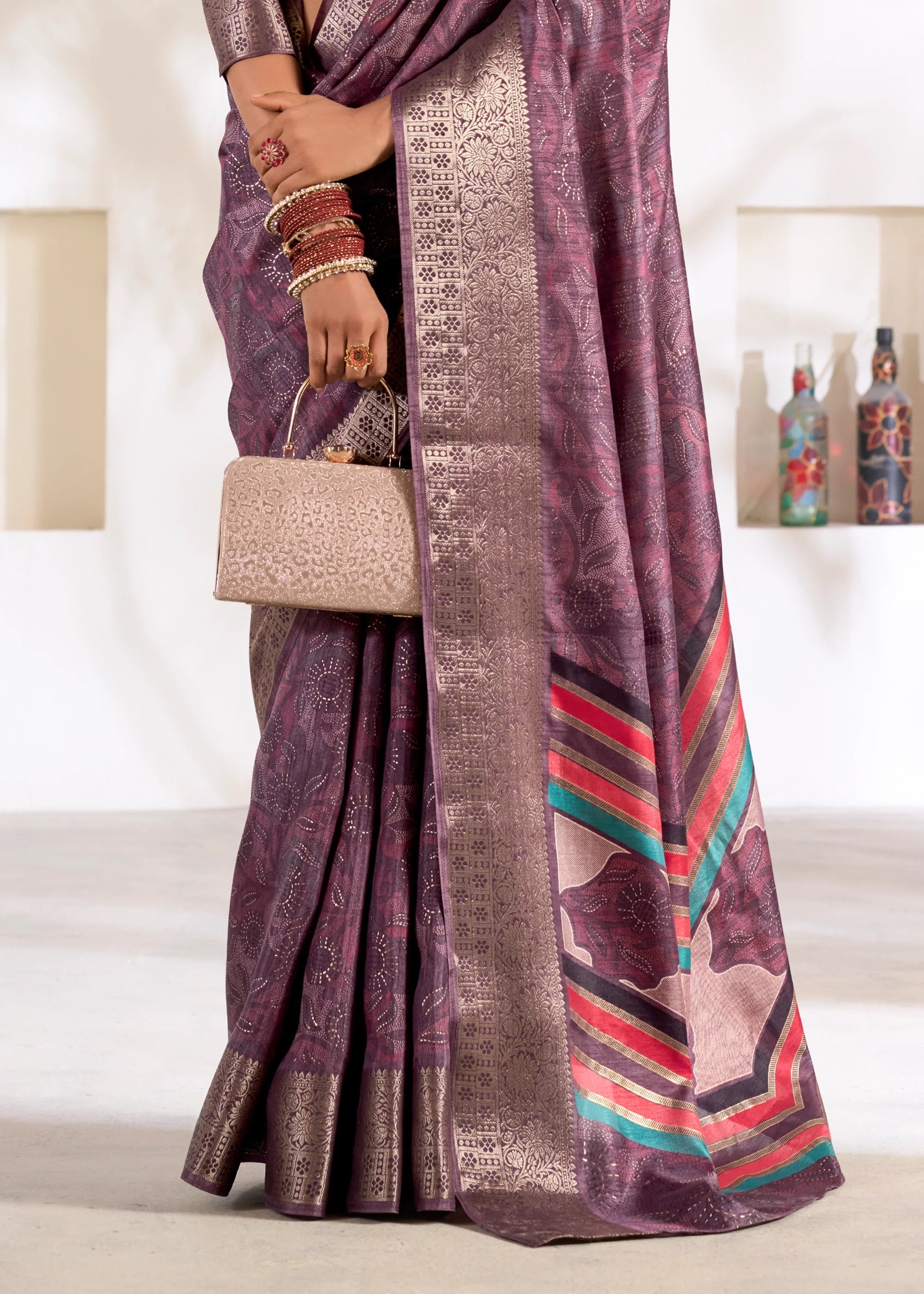 Mauve Purple Banarasi Printed Soft Silk Saree