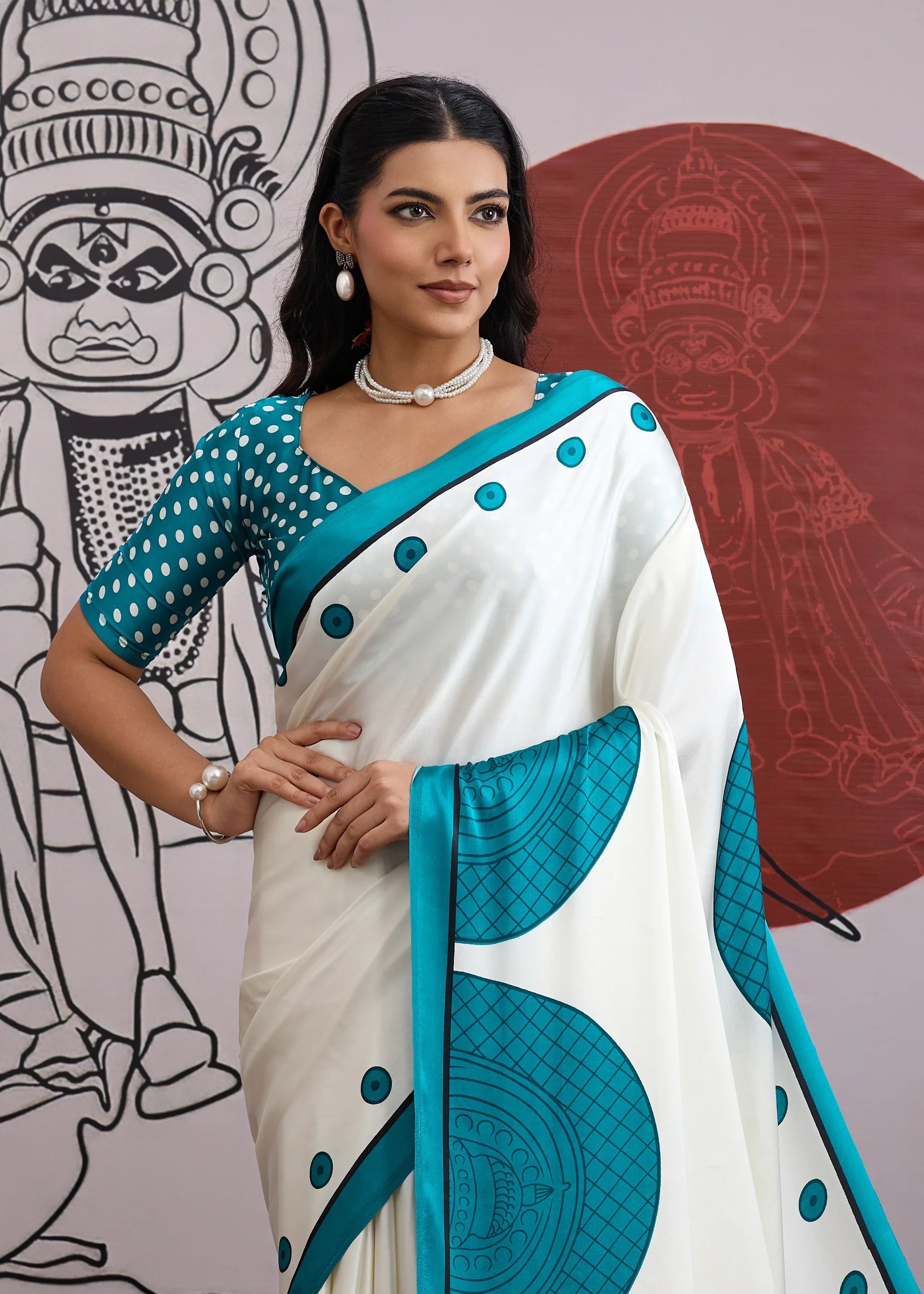Drape yourself in the luxurious embrace of our Digital Printed Satin Silk Saree, a harmonious blend of traditional artistry and contemporary design. Crafted from the finest satin silk, this saree offers an unparalleled soft touch and a beautiful, flowing drape that accentuates every silhouette.