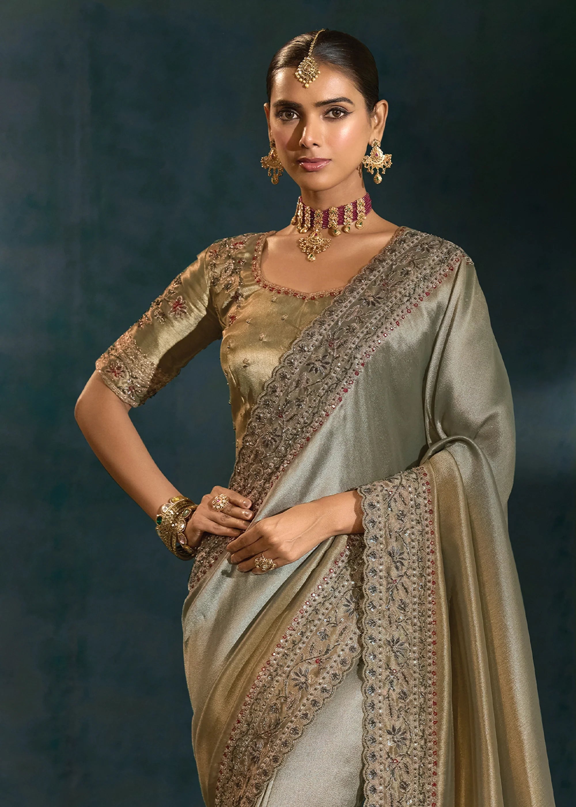 An embroidered designer silk saree is a perfect blend of luxury, artistry, and timeless elegance. Crafted from premium silk fabric, this saree is adorned with intricate embroidery that highlights fine craftsmanship and attention to detail.